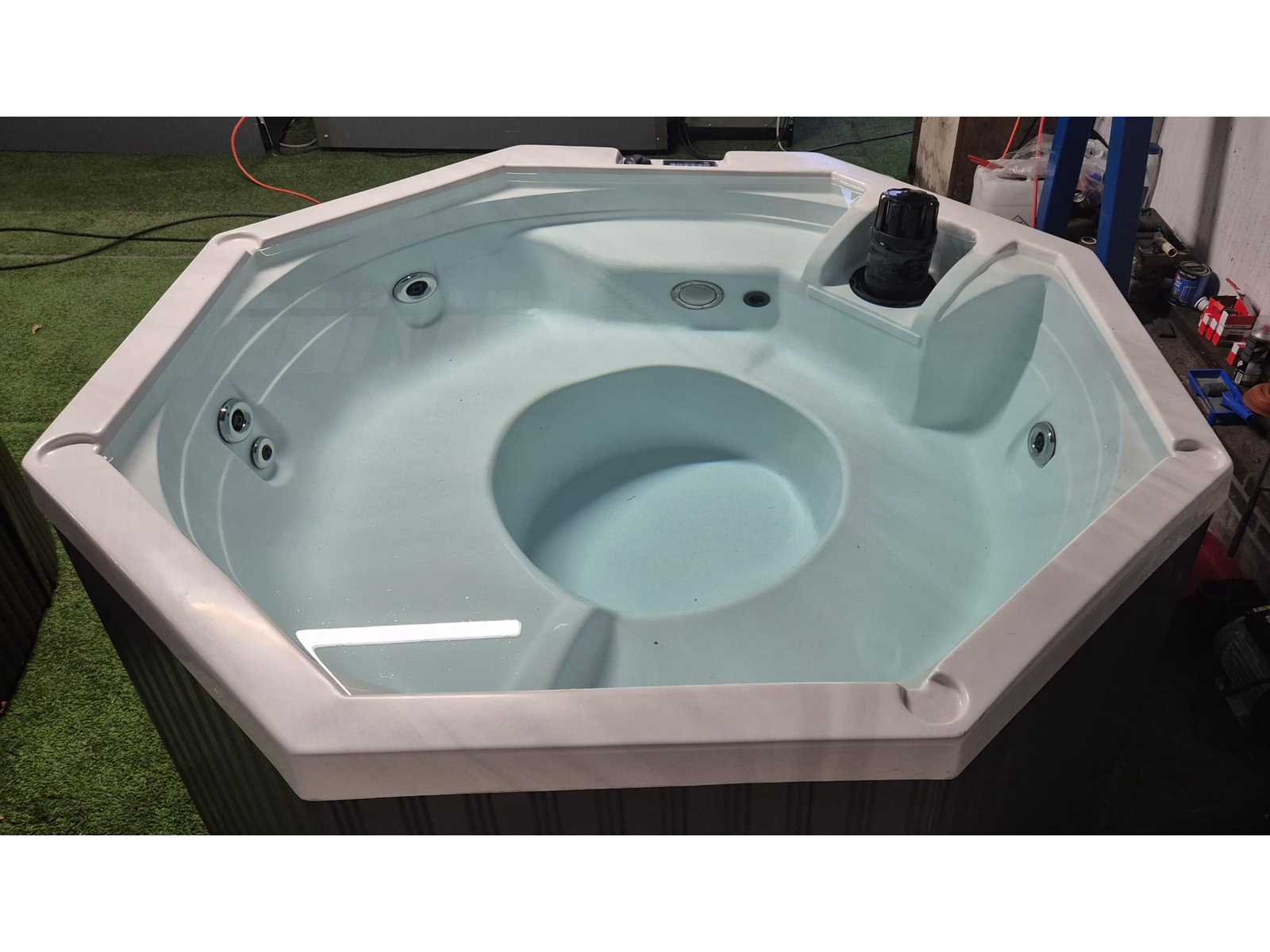 Voorzien van 5 zitplaatsen; automatisch filtersysteem; verlichting; (Marge, geen BTW) Model: 5 persoons Verlichting: Ja Jets: 10 Aantal personen: 5 Lengte: 185cm Breedte: 185cm Hoogte: 95cm