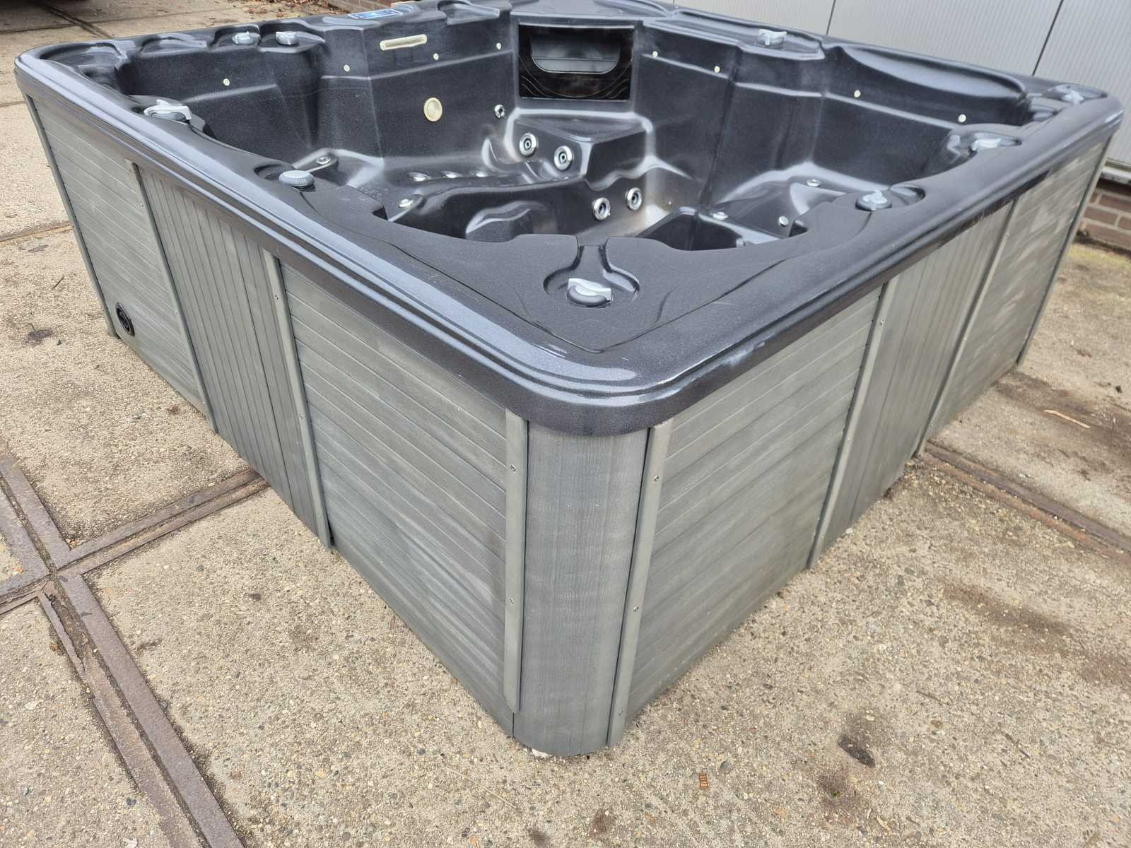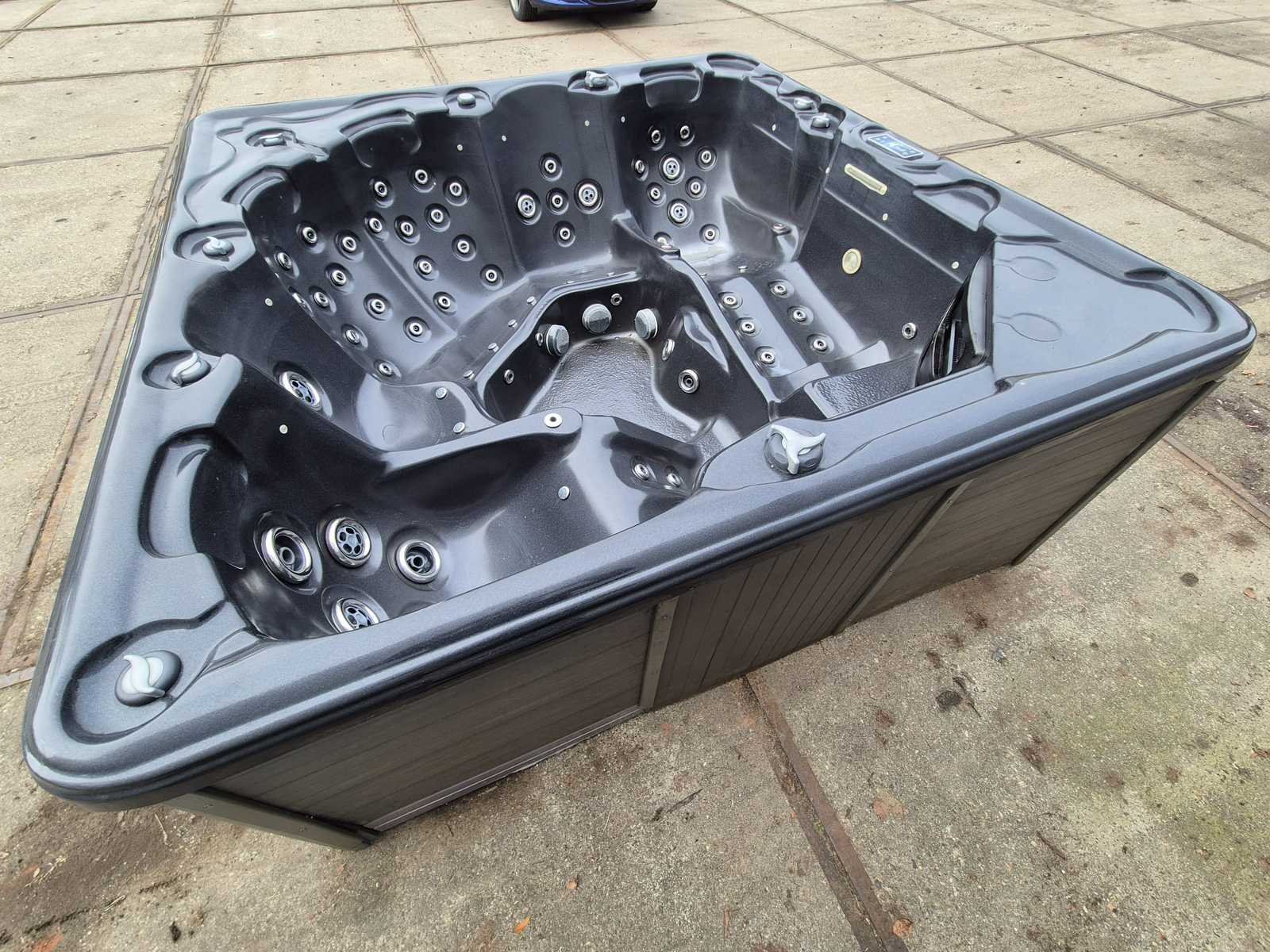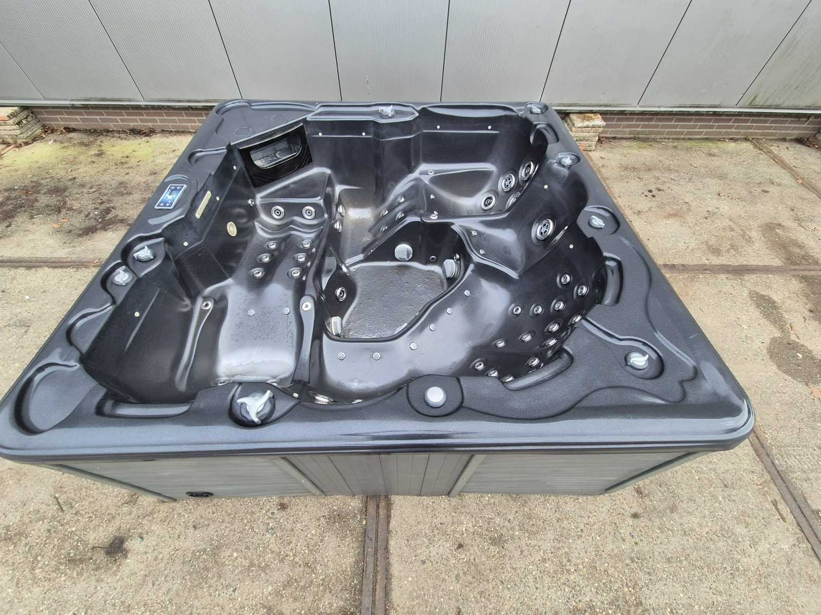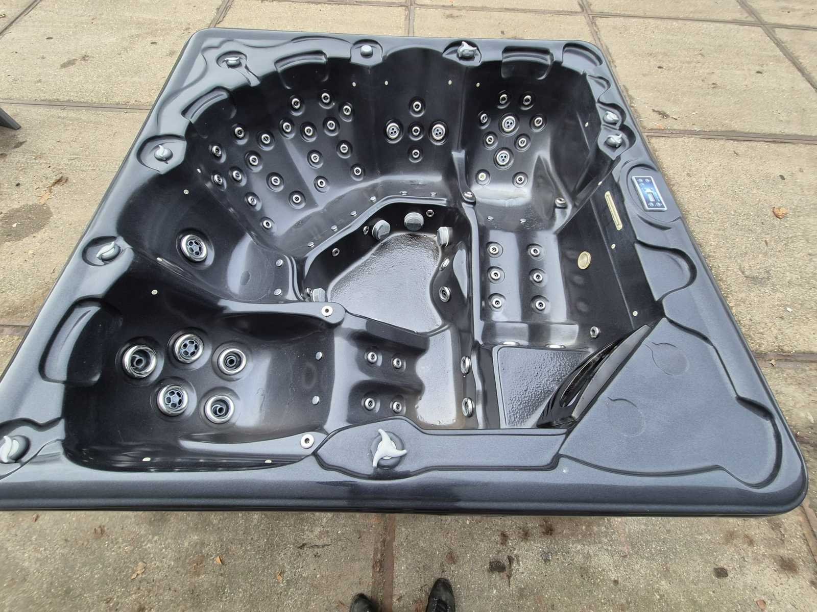 Voorzien van 2 ligplaatsen; 4 zitplaatsen; nek/schouder massage; waterval; RVS massage jets; kunststof omkasting; automatisch filtersysteem; (let op houtwerk binnen in en bodem verslechterd) Niet getest op functioneren (Marge, geen BTW) Merk: Balboa Model: 6 persoons Verlichting: Ja Jets: 65 Aantal personen: 6 Lengte: 230cm Breedte: 230cm Hoogte: 88cm