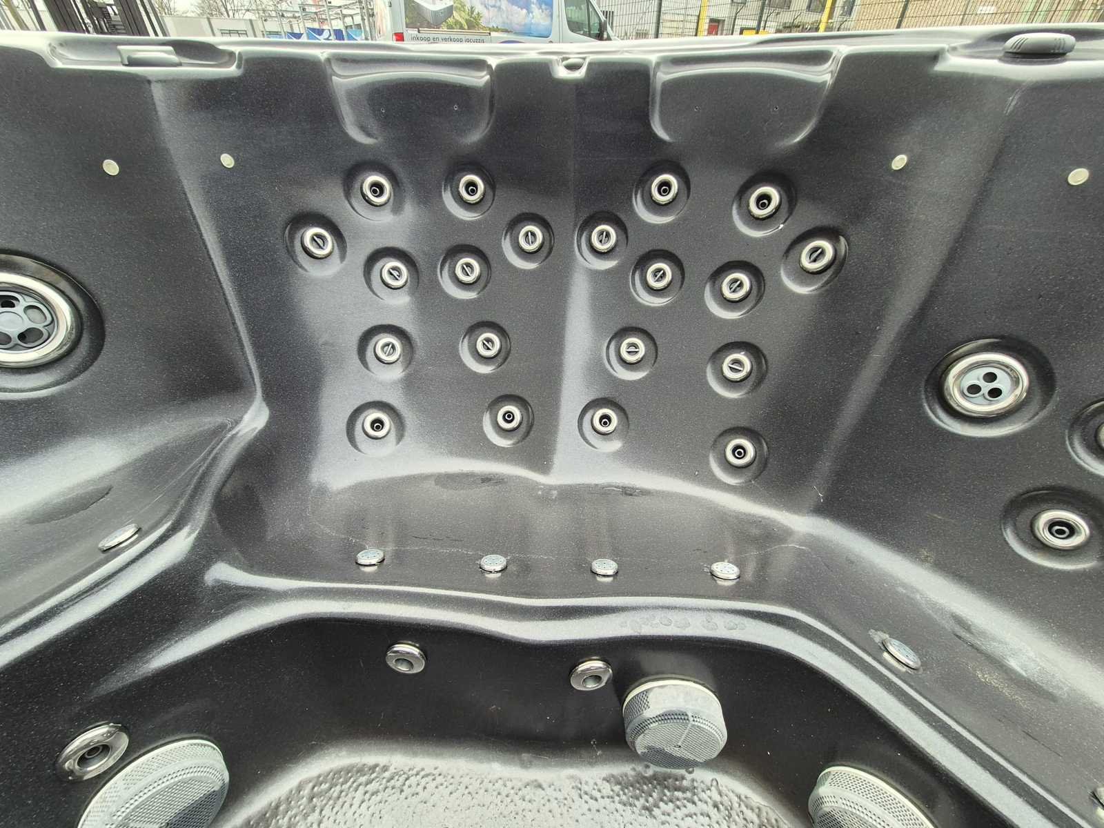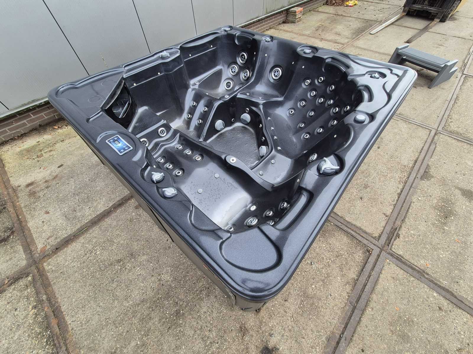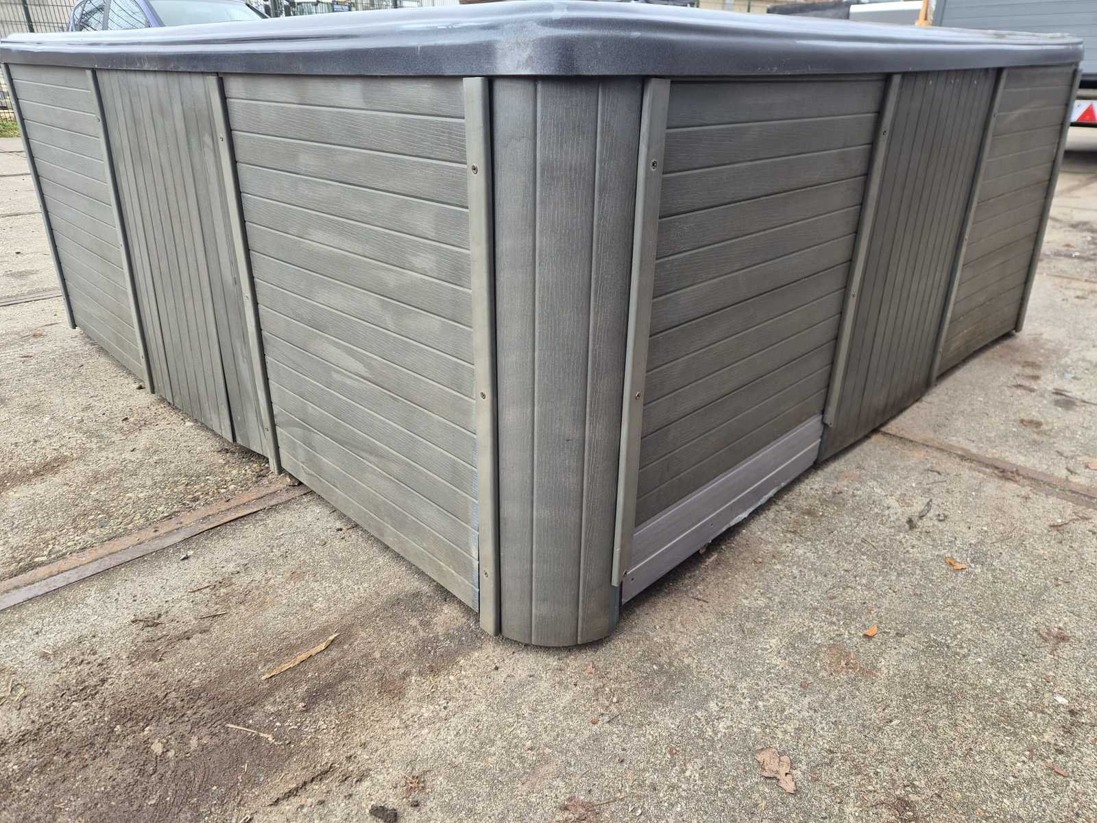 Voorzien van 2 ligplaatsen; 4 zitplaatsen; nek/schouder massage; waterval; RVS massage jets; kunststof omkasting; automatisch filtersysteem; (let op houtwerk binnen in en bodem verslechterd) Niet getest op functioneren (Marge, geen BTW) Merk: Balboa Model: 6 persoons Verlichting: Ja Jets: 65 Aantal personen: 6 Lengte: 230cm Breedte: 230cm Hoogte: 88cm