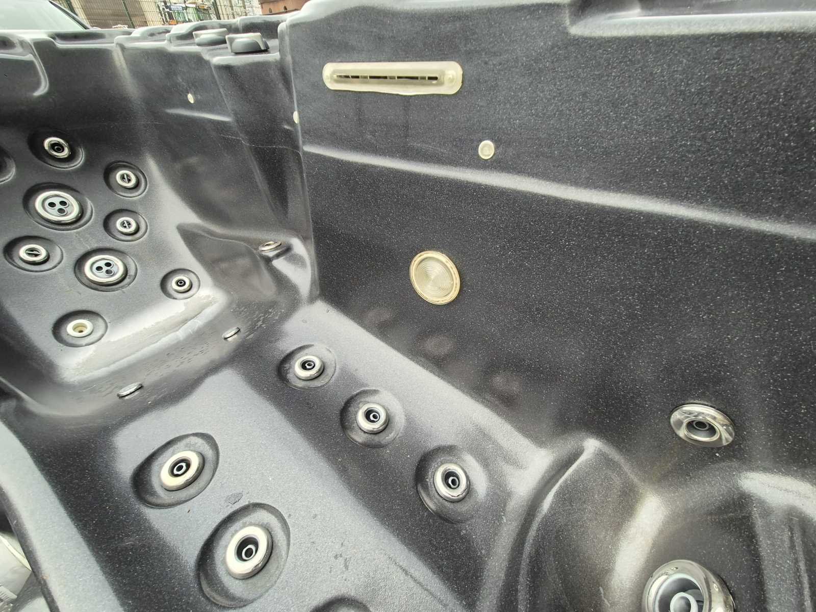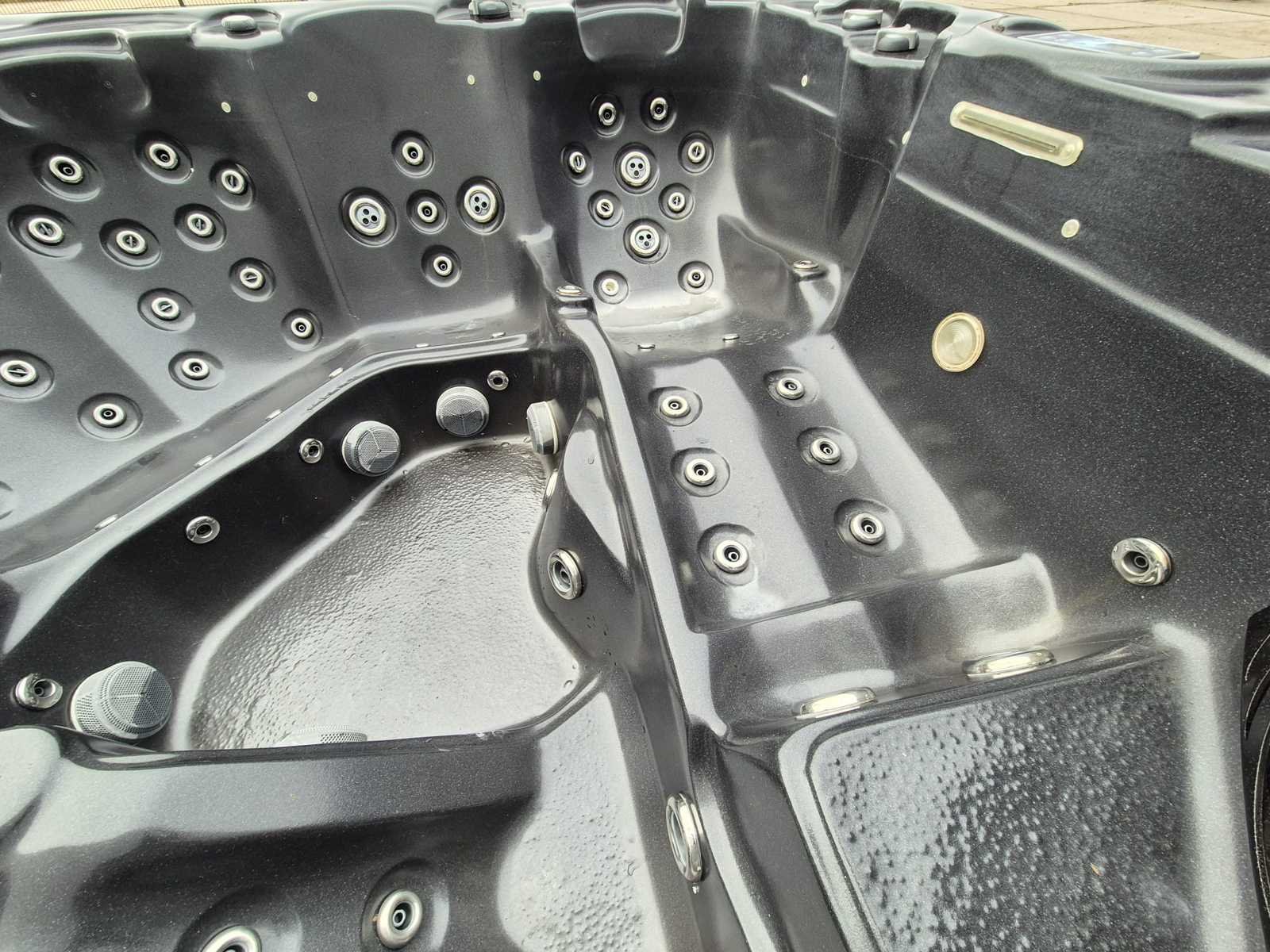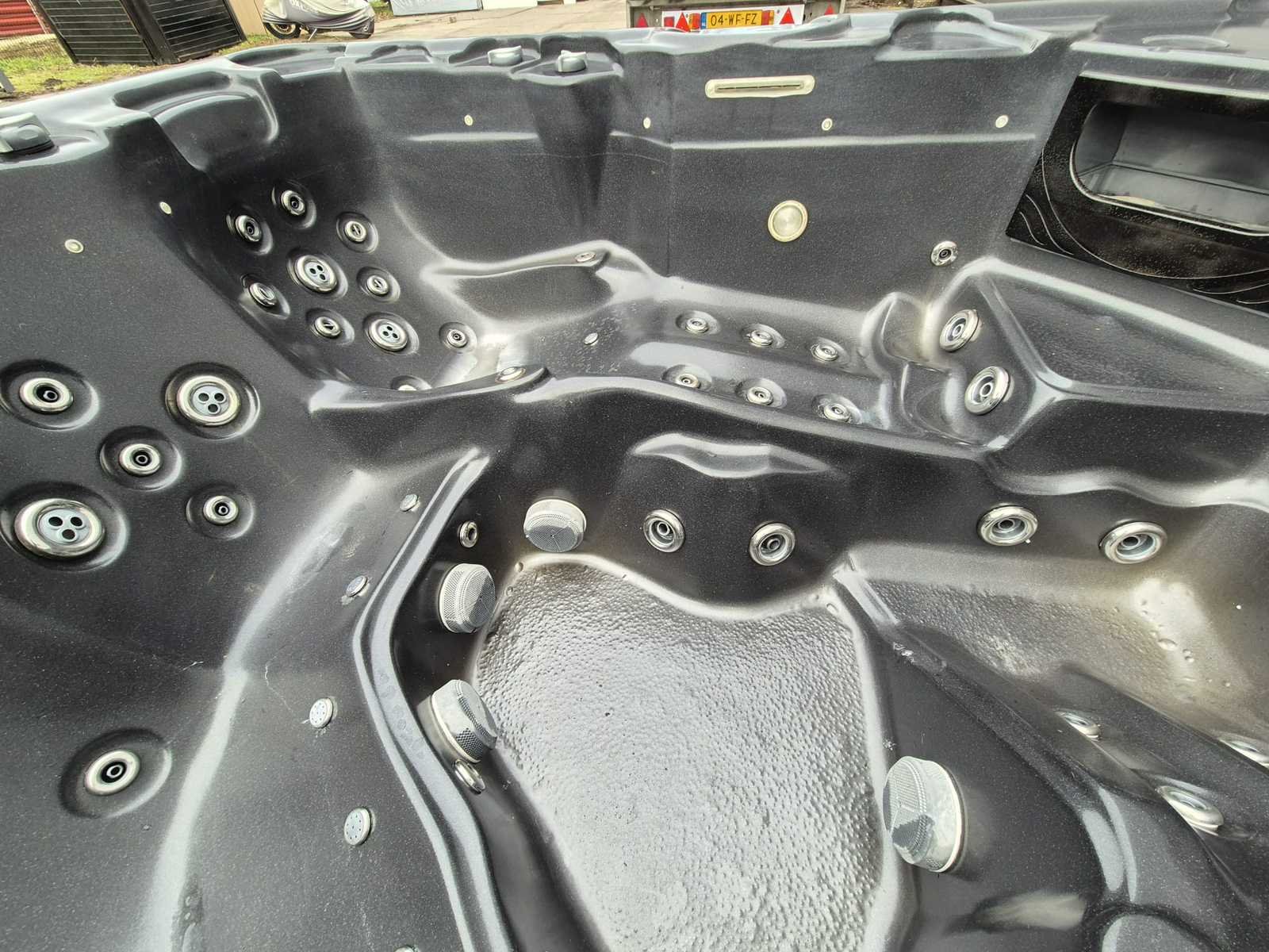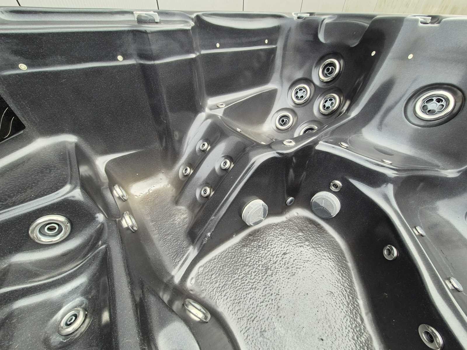 Voorzien van 2 ligplaatsen; 4 zitplaatsen; nek/schouder massage; waterval; RVS massage jets; kunststof omkasting; automatisch filtersysteem; (let op houtwerk binnen in en bodem verslechterd) Niet getest op functioneren (Marge, geen BTW) Merk: Balboa Model: 6 persoons Verlichting: Ja Jets: 65 Aantal personen: 6 Lengte: 230cm Breedte: 230cm Hoogte: 88cm