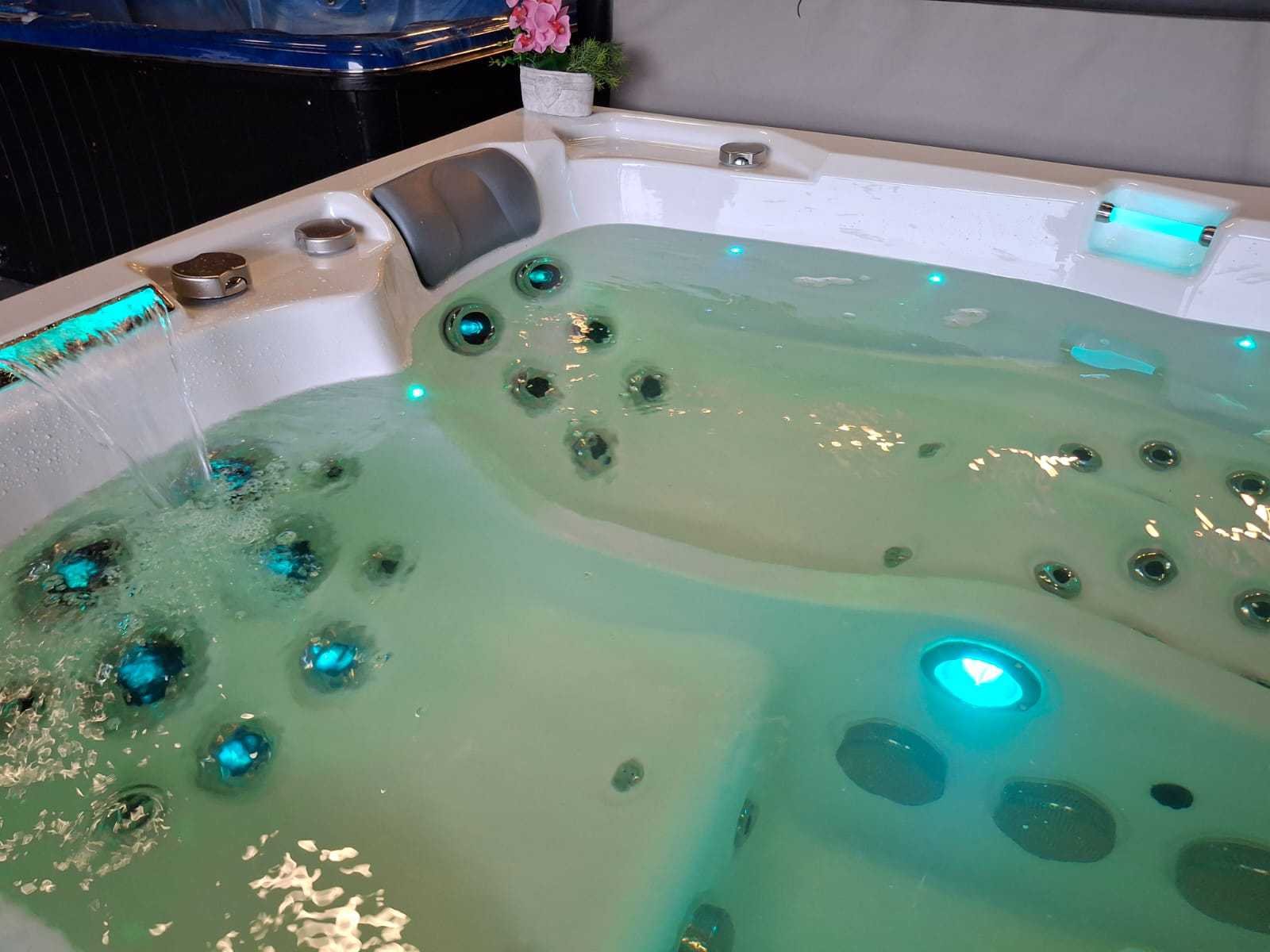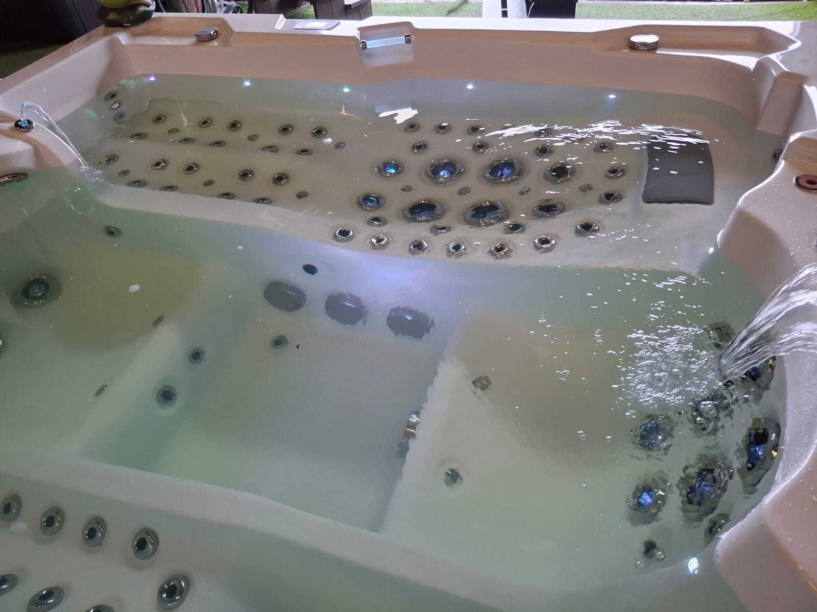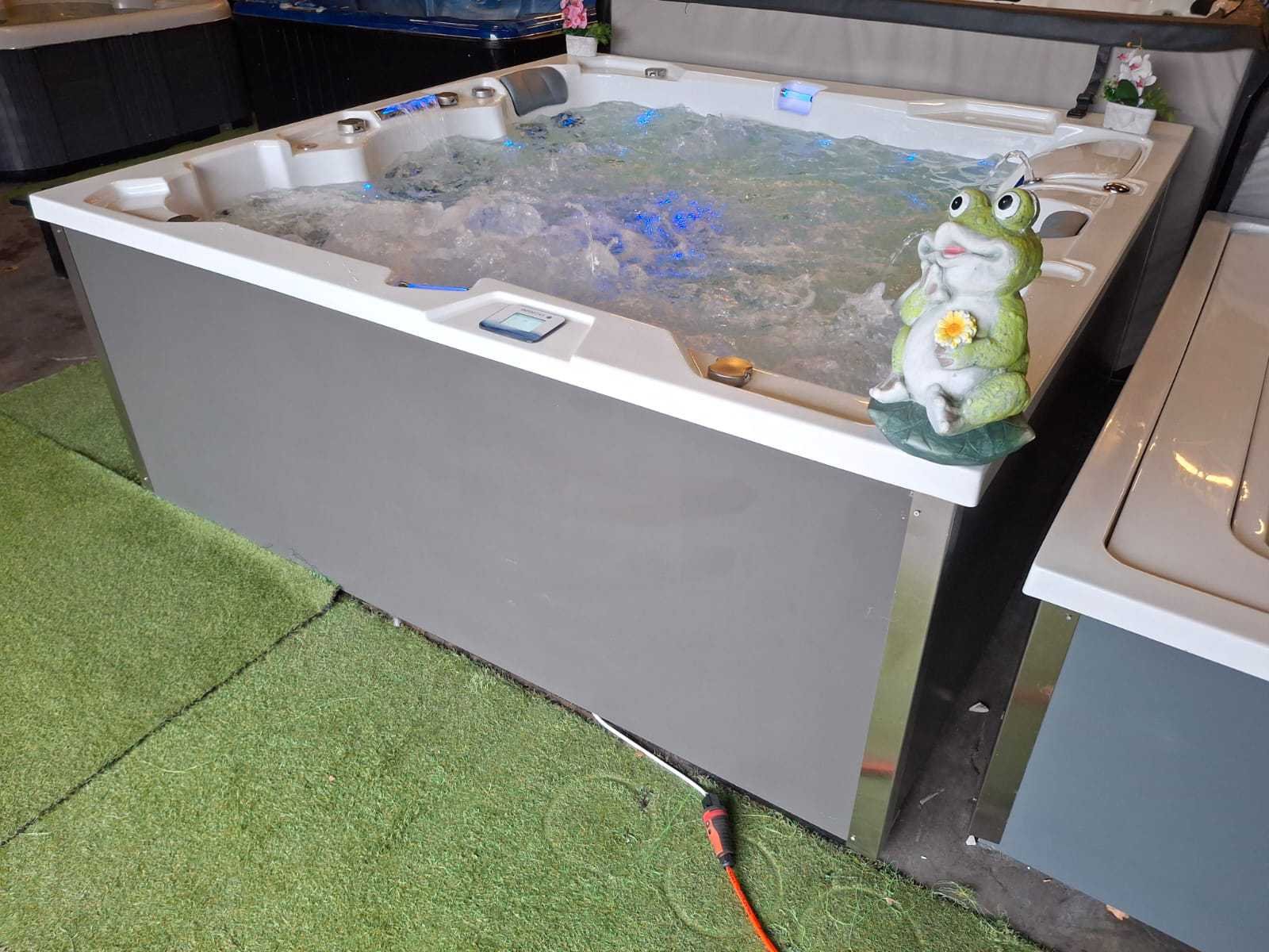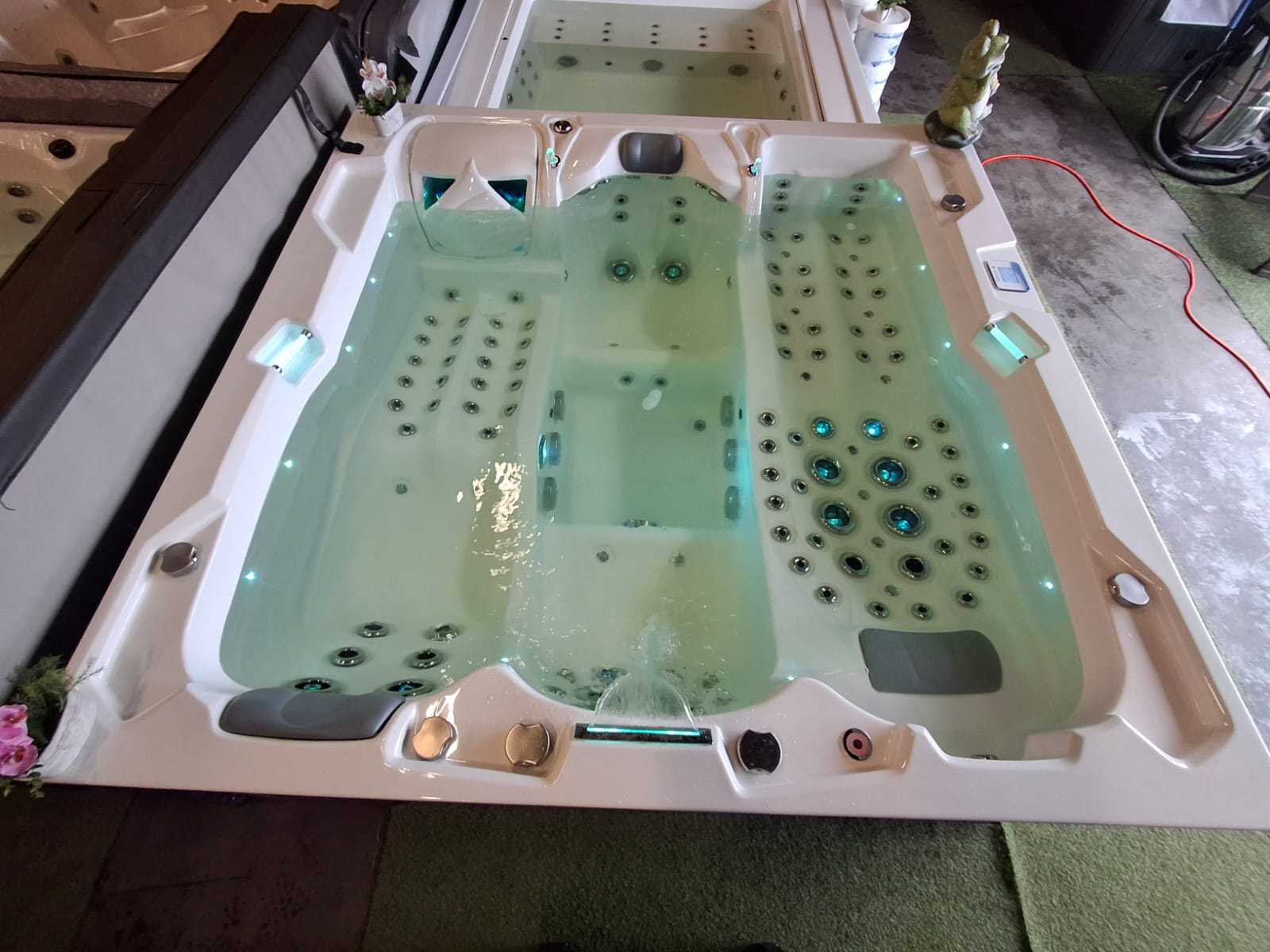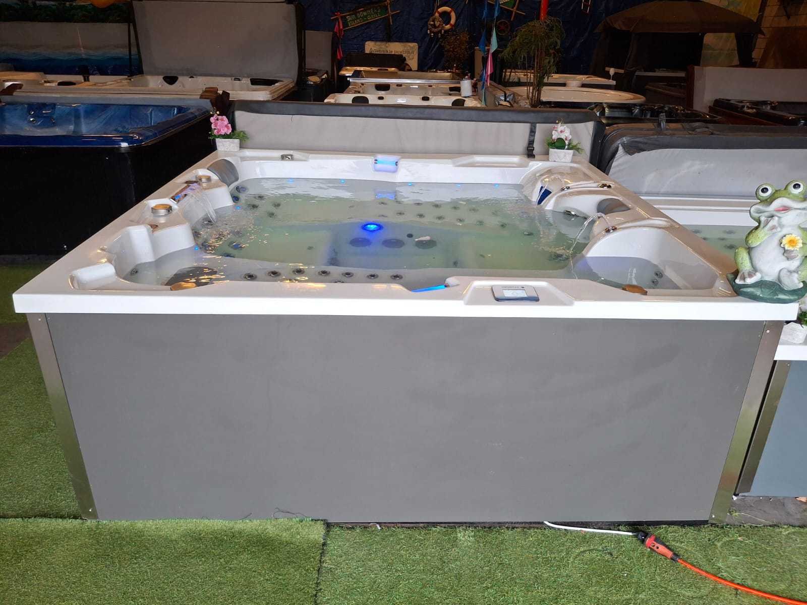 Voorzien van 2 ligplaatsen; 2 zitplaatsen; RVS massage jets; waterval; hoofdkussens; nek/schouder massage; verlichting in de jets; ligplaats heeft van hoofd, hand tot voet massage; kunststof omkasting; geïsoleerde cover; fonteinen; showroom model; nieuwprijs 17.990,- (Marge, geen BTW) Merk: Infinitas Model: 4 persoons Verlichting: Ja Pompen: 7 Jets: 133 Aantal personen: 4 Lengte: 240cm Breedte: 240cm Hoogte: 90cm