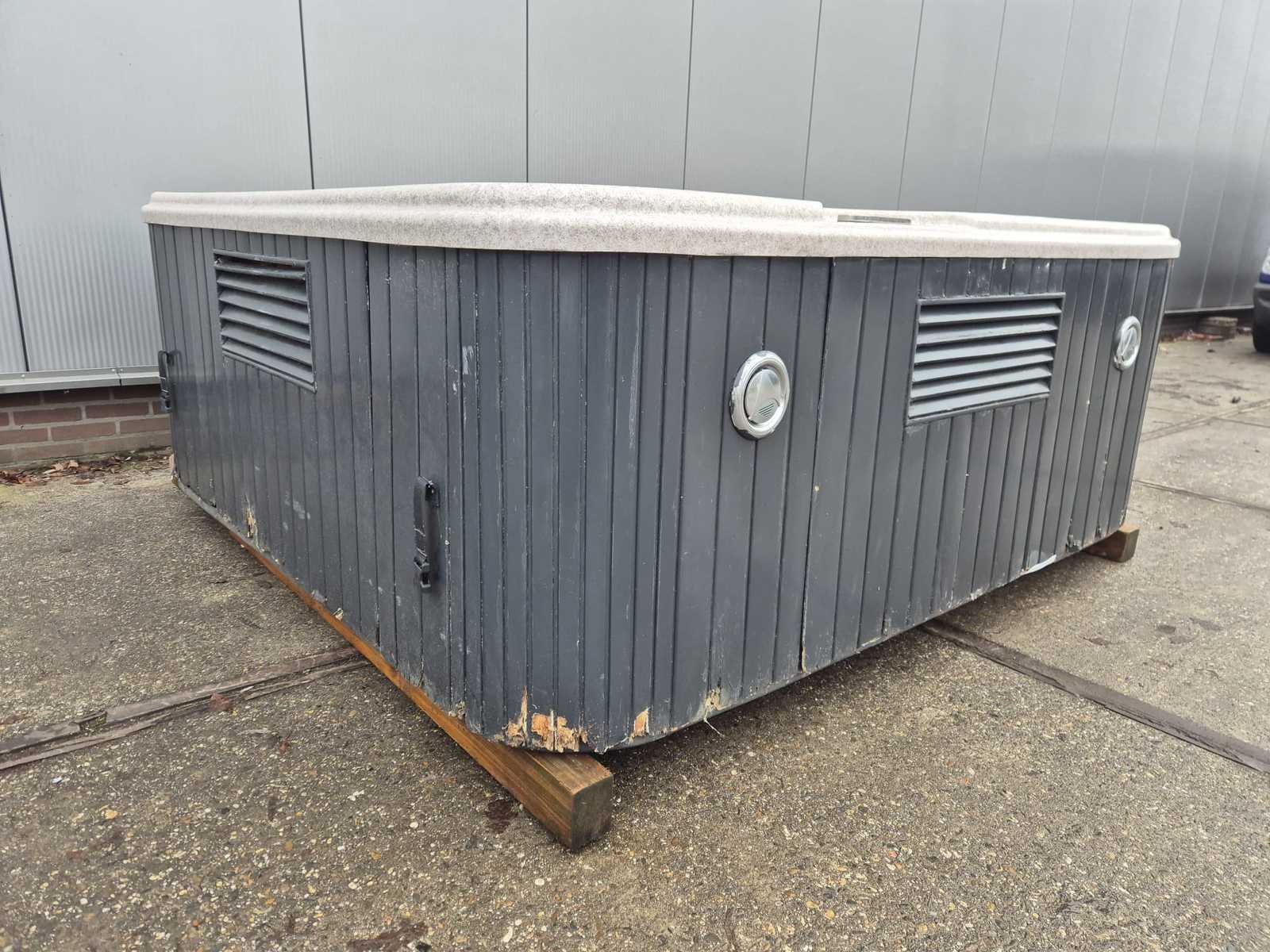 Voorzien van waterval; 2 ligplaatsen; 3 zitplaatsen; nek/schouder massage; automatisch filtersysteem; 1 paneel mist door transport zie laatste foto; Niet getest op functioneren (Marge, geen BTW) Model: 5 persoons Verlichting: Ja Jets: 60 Aantal personen: 5 Lengte: 225cm Breedte: 215cm Hoogte: 87cm