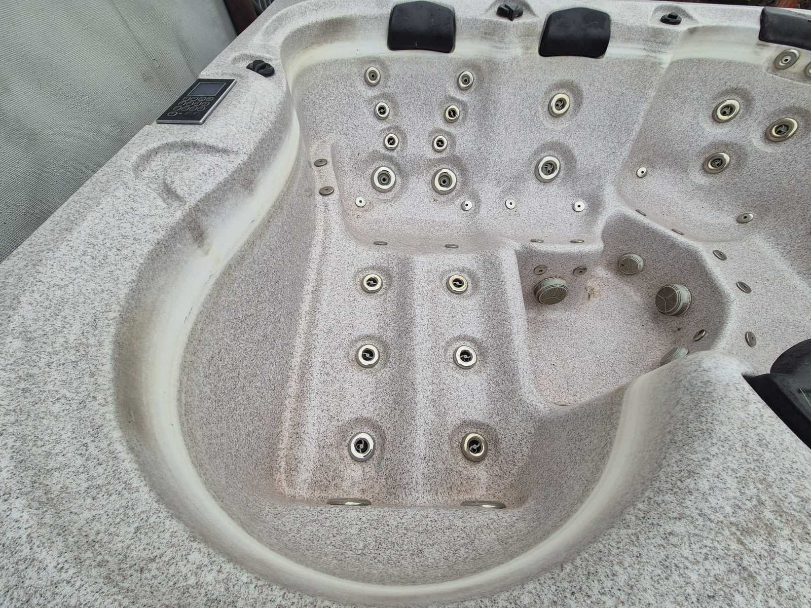 Voorzien van lift voor de cover; inclusief cover; waterval; speakers; 1 ligplaats; 4 zitplaatsen; nek/schouder massage; hoofdkussens; automatisch filtersysteem; kunststof omkasting; Niet getest op functioneren (Marge, geen BTW) Model: 5 persoons Verlichting: Ja Jets: 42 Aantal personen: 5 Lengte: 190cm Breedte: 225cm Hoogte: 96cm