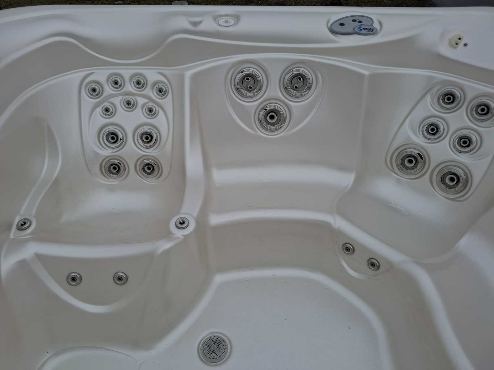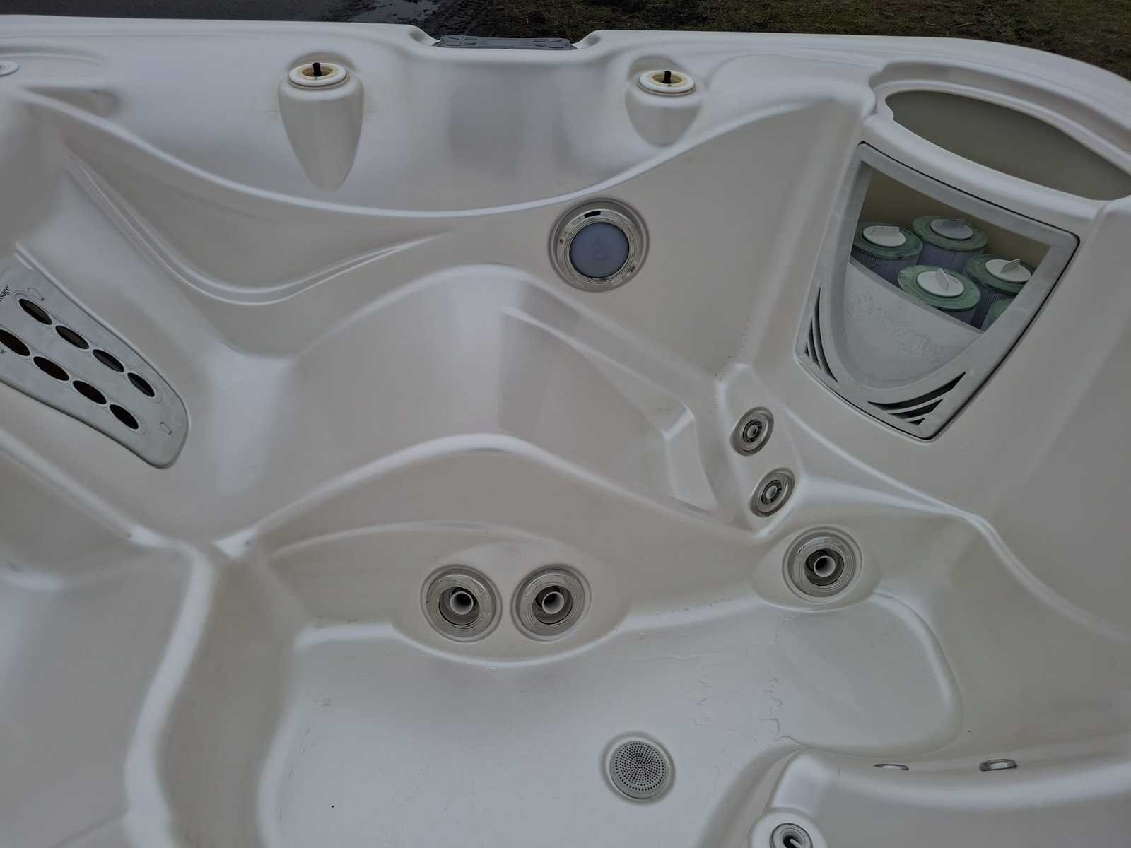 Voorzien van 1 ligplaatsen; 4 zitplaatsen; fonteinen; RVS massagejets; kunststof omkasting; automatisch filtersysteem; Niet getest op functioneren (Marge, geen BTW) Merk: Hotspring Model: 5 persoons Verlichting: Ja Jets: 34 Aantal personen: 5 Lengte: 220cm Breedte: 220cm Hoogte: 92cm