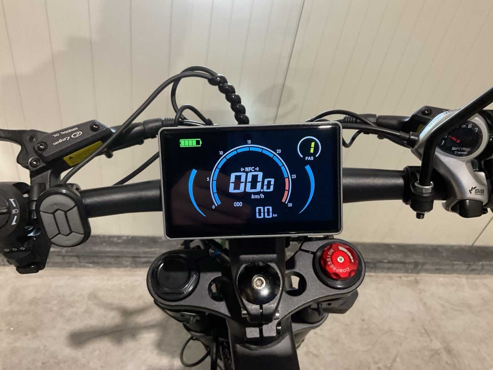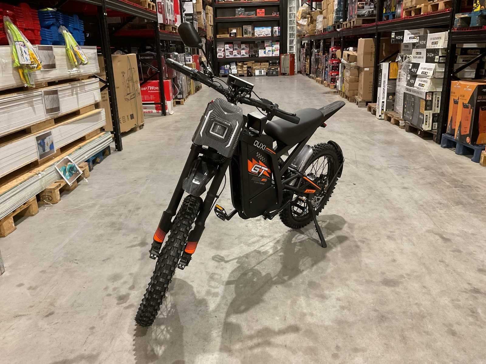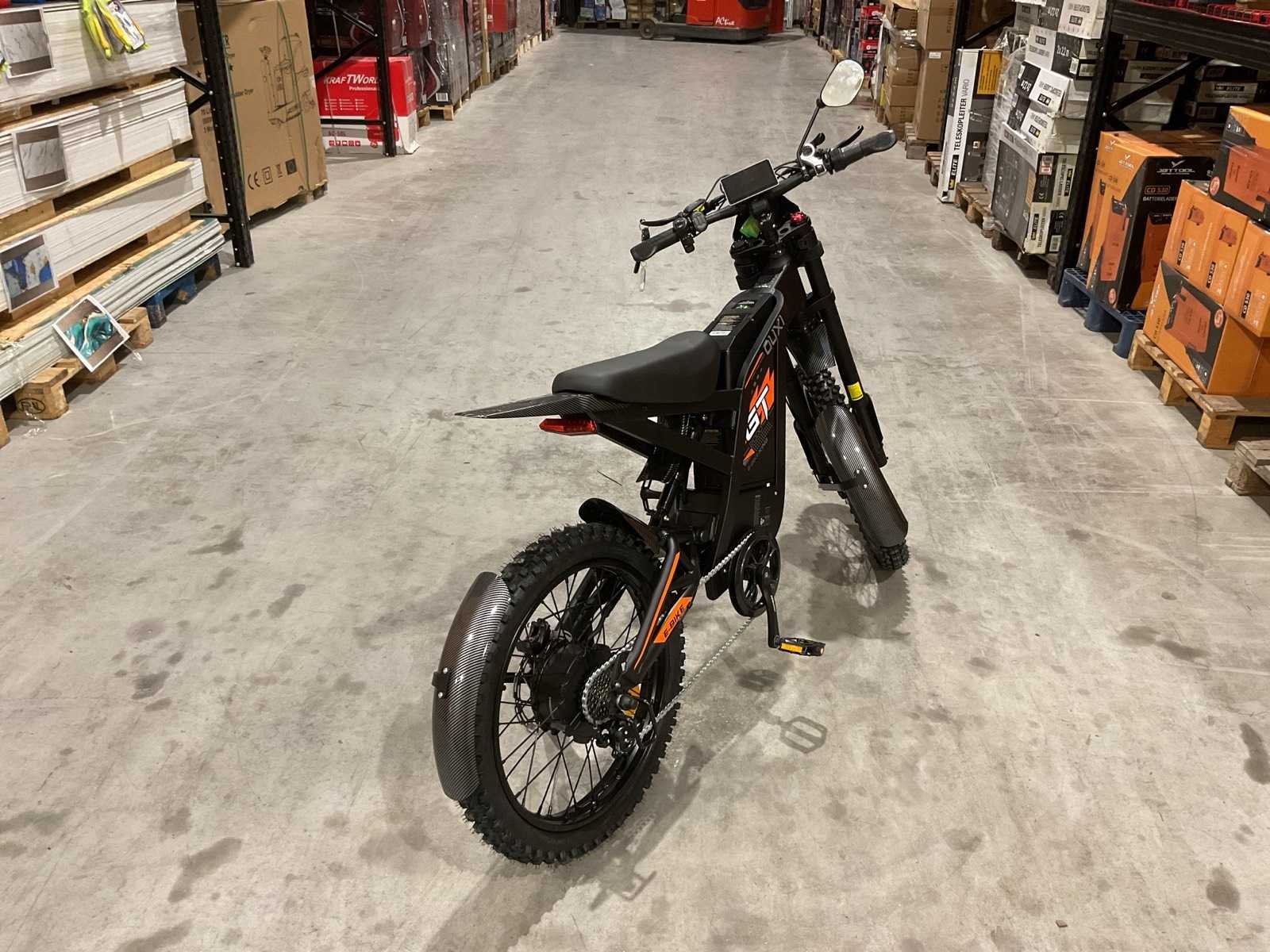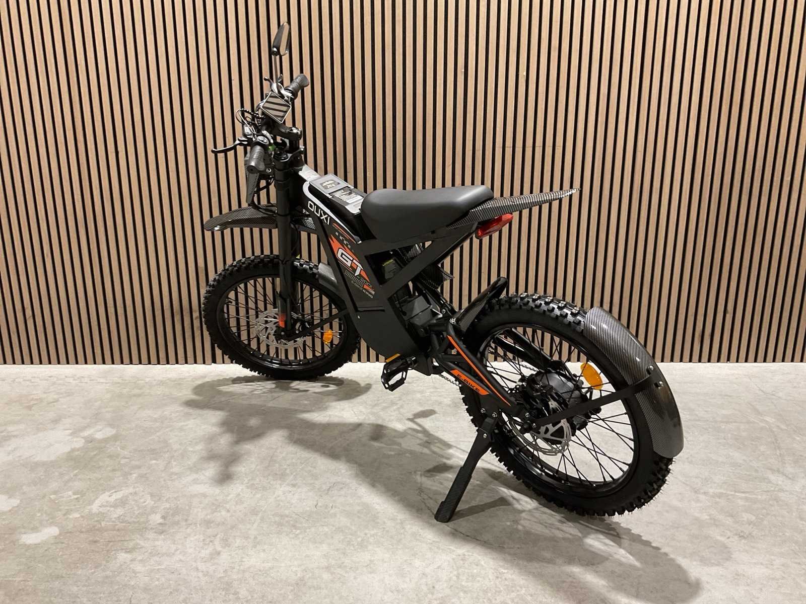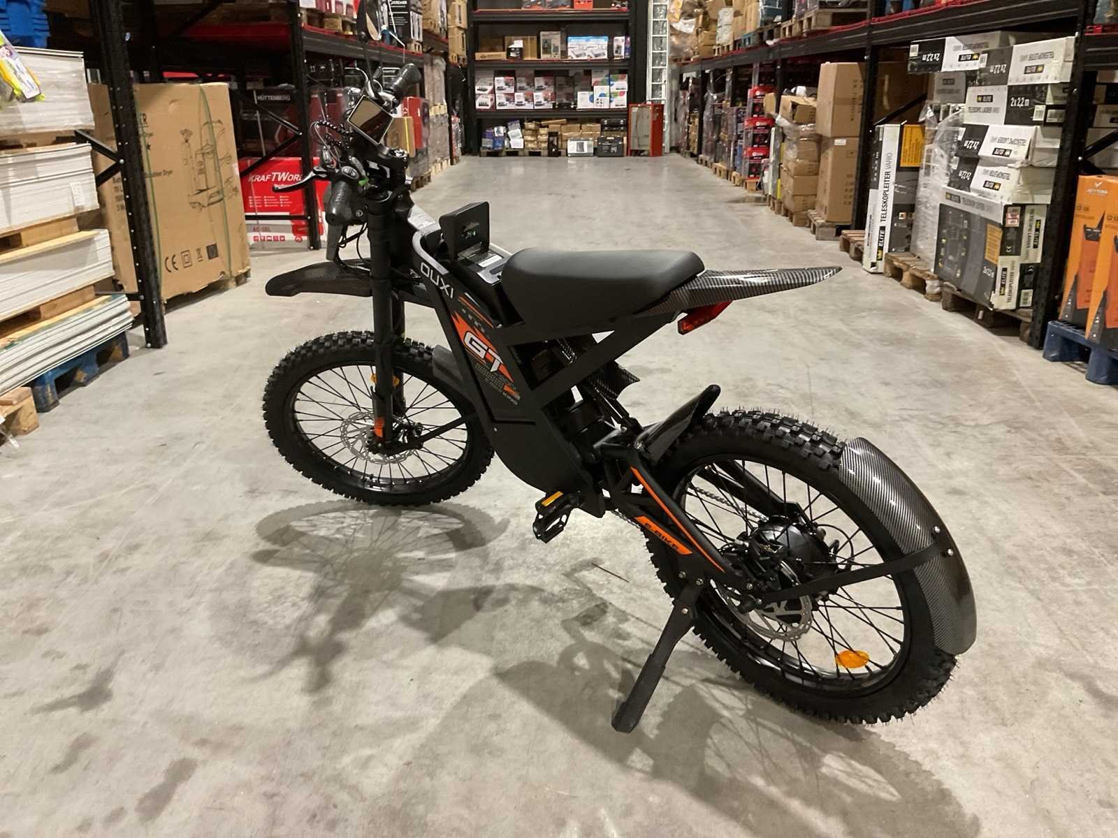 Voorzien van Nominaal motorvermogen: ca. 2000W; Accu: 48 V 30 Ah lithium-ion (verwisselbaar); Batterijcapaciteit: ca. 1440 Wh; topsnelheid: 25km/h; 19 inch wielen; schrijfremmen; Shimano 7-speed versnellingen; LCD-display; LED-koplamp, achterlicht; ongebruikt in doos Merk: Ouxi Model: GT2000 ZWART/ORANJE Product type: E-BIKE KING Remsysteem: Hydraulisch remsysteem Achtervering: true Voorvering: true Versnellingen: 7 Kleur: ZWART/ORANJE Gewicht: 64.5kg Lengte: 188cm Breedte: 63cm Hoogte: 115cm