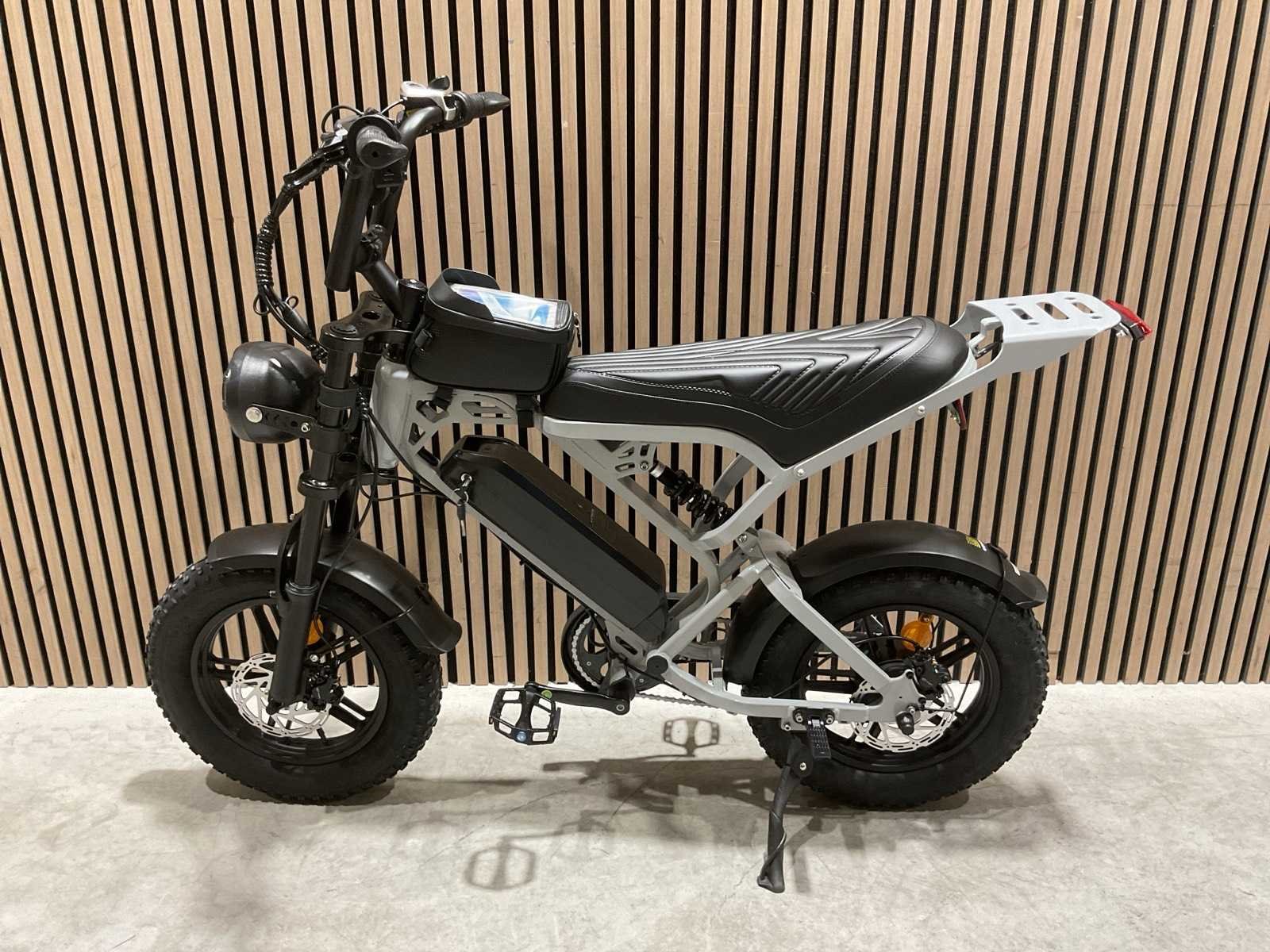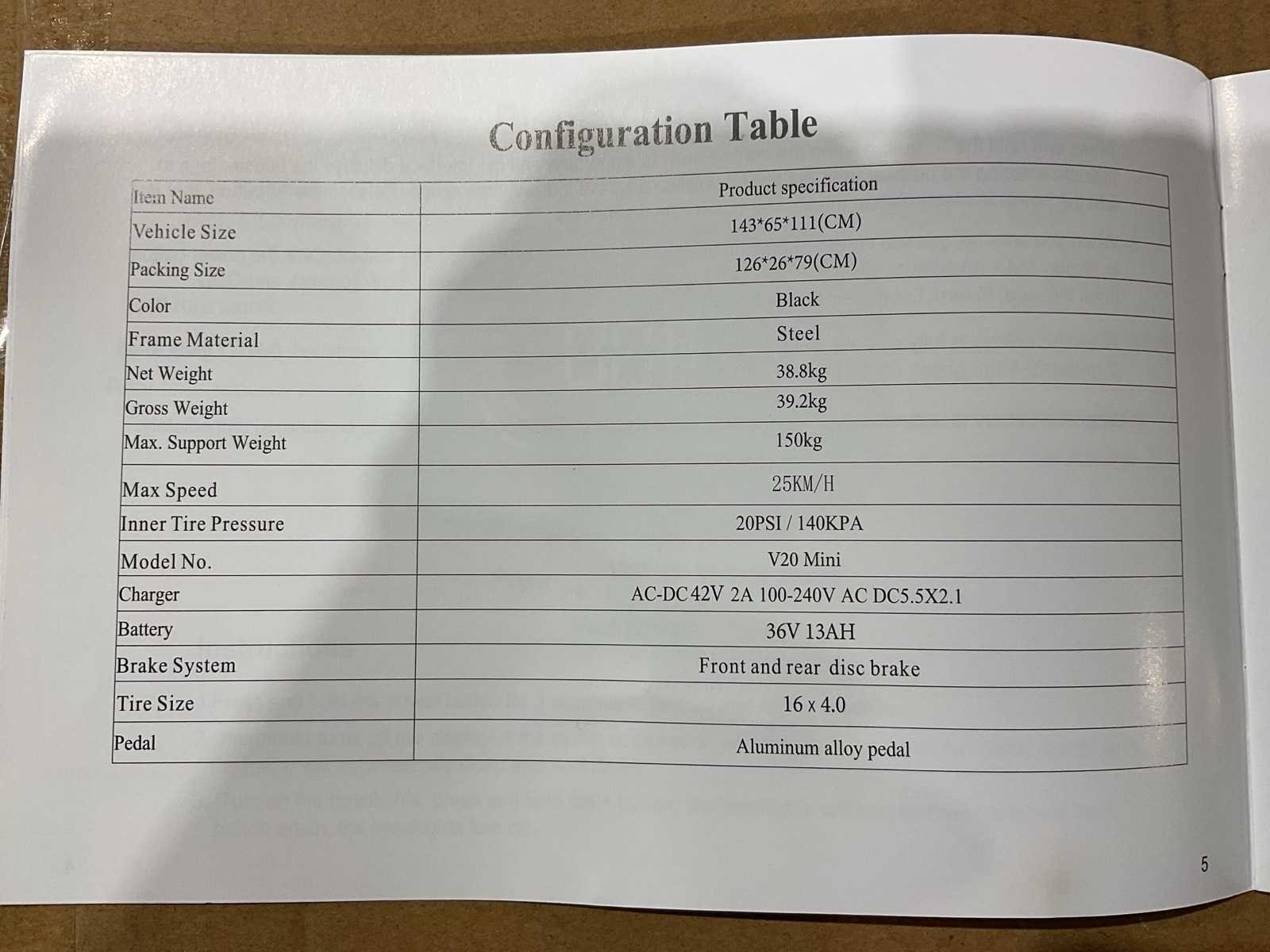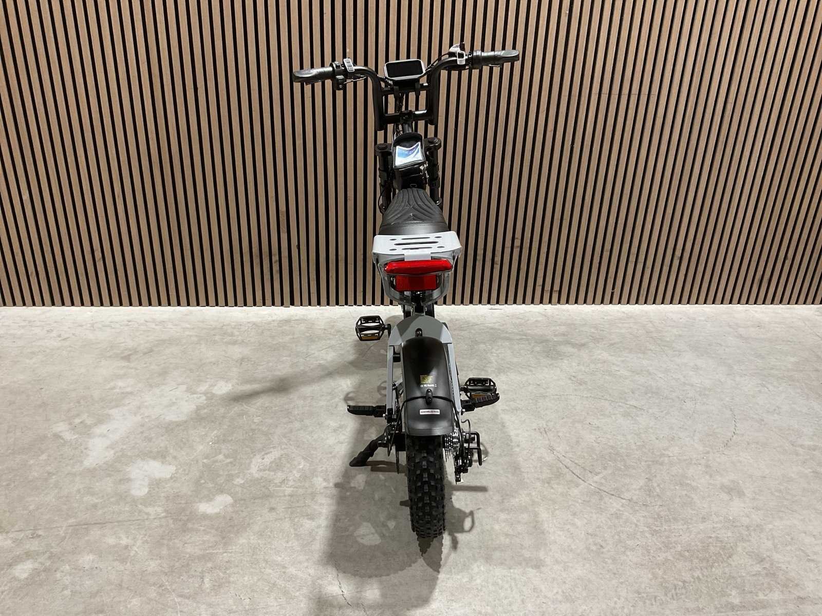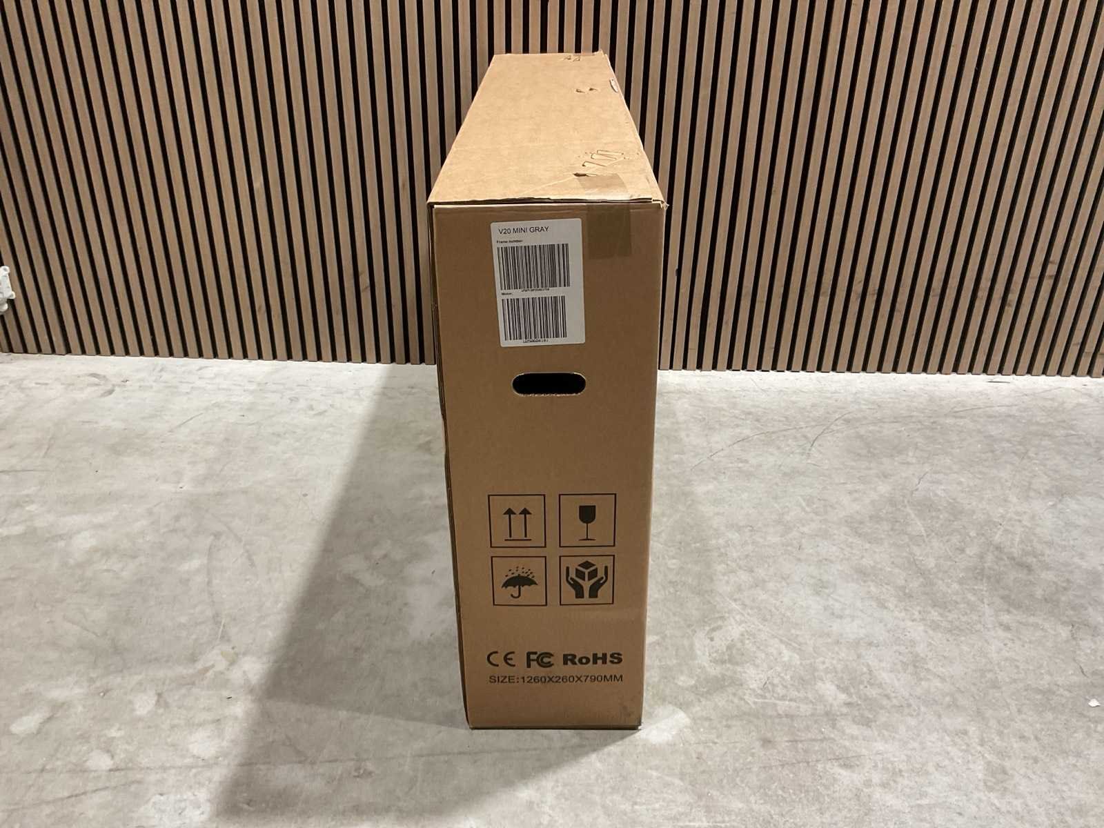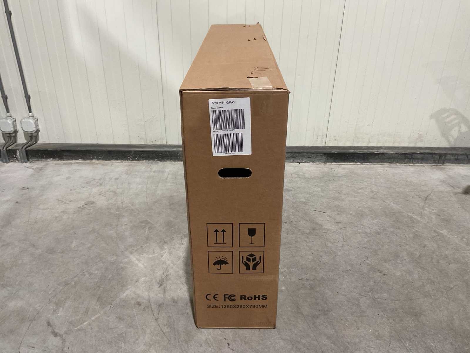Voorzien van Elektrische aandrijving; Accu: 36V 13Ah; Lader: AC–DC 42V 2A; Ingangsspanning: 100–240V AC; Laadaansluiting: DC 5.5 × 2.1; Max. snelheid: 25 km/u; Max. draagvermogen: 150 kg; Schijfremmen; Bandmaat: 16 × 4.0 inch; Frame materiaal: Staal; Transport 1260x260x790 39,2 kg; Ongebruikt in doos Merk: V20 Model: Mini Product type: Grey Achtervering: true Voorvering: true Versnellingen: 7 Gewicht: 38.8kg Lengte: 143cm Breedte: 65cm Hoogte: 111cm