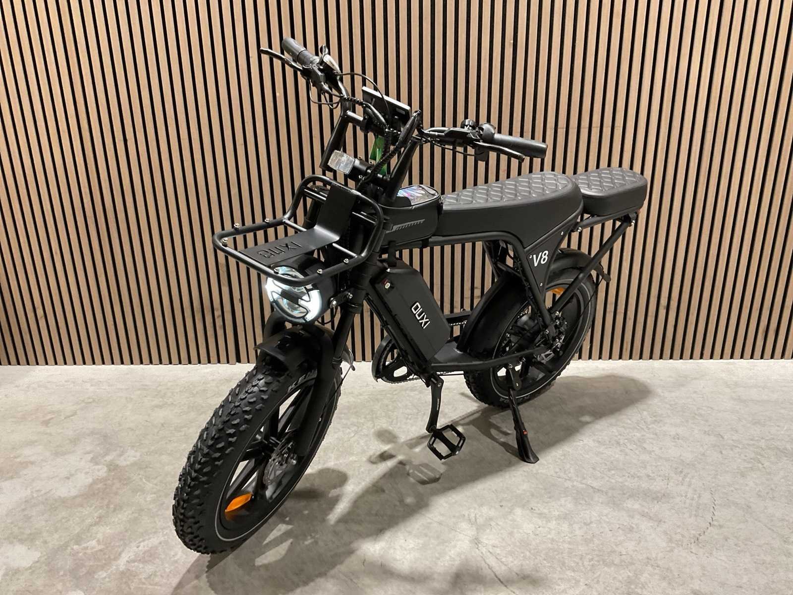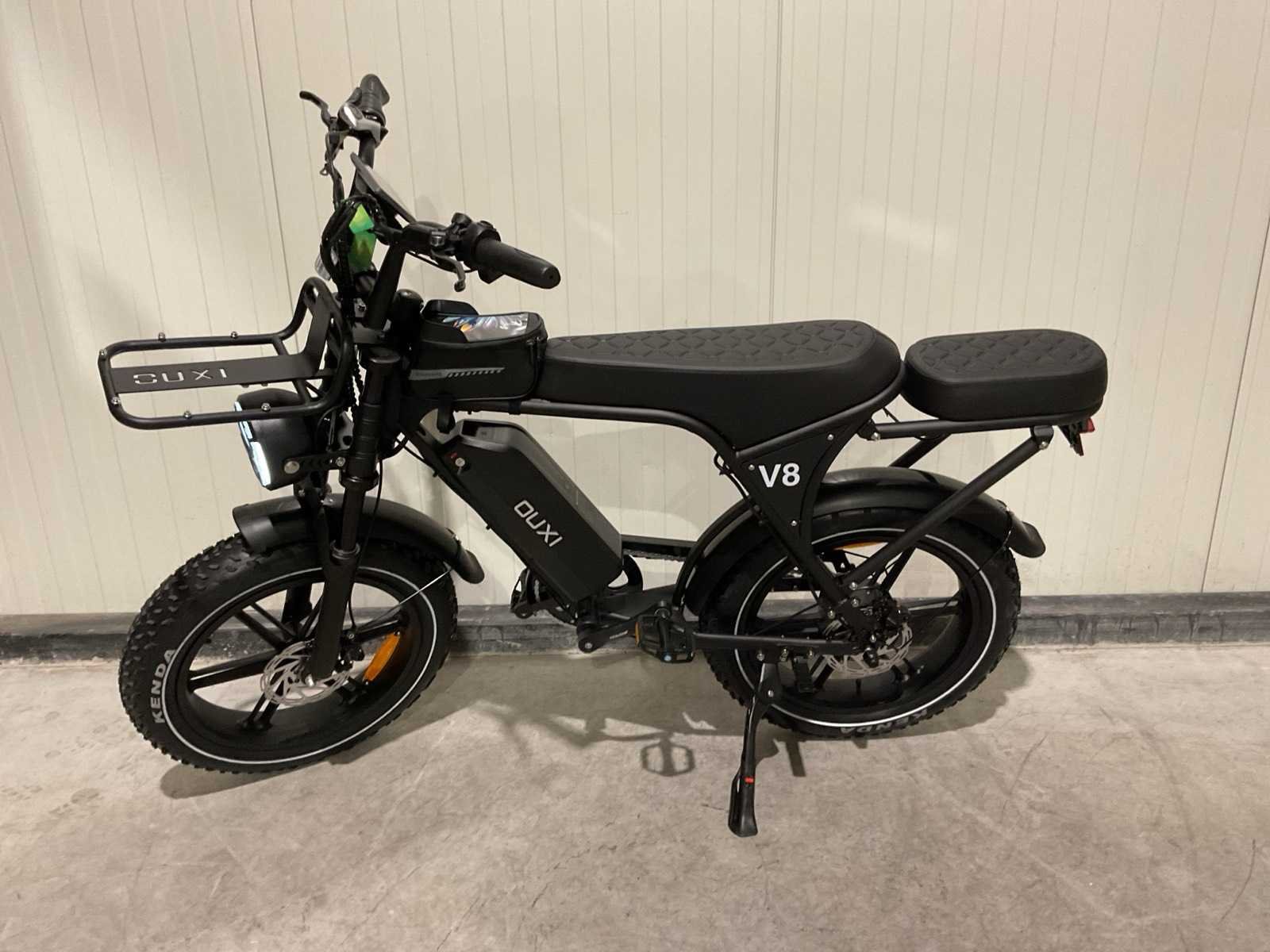 Voorzien van 250W motor; 25Km/u topsnelheid; 150 kg max. belasting; 48V verwijderbare lithium-ion accu; ca 5-7 uur Oplaadtijd; Hydraulische voorvorkvering; LCD display; Shimano 7-speed derailleur; Ongebruikt in doos Merk: Ouxi Model: V8 met rekje Product type: Zwart