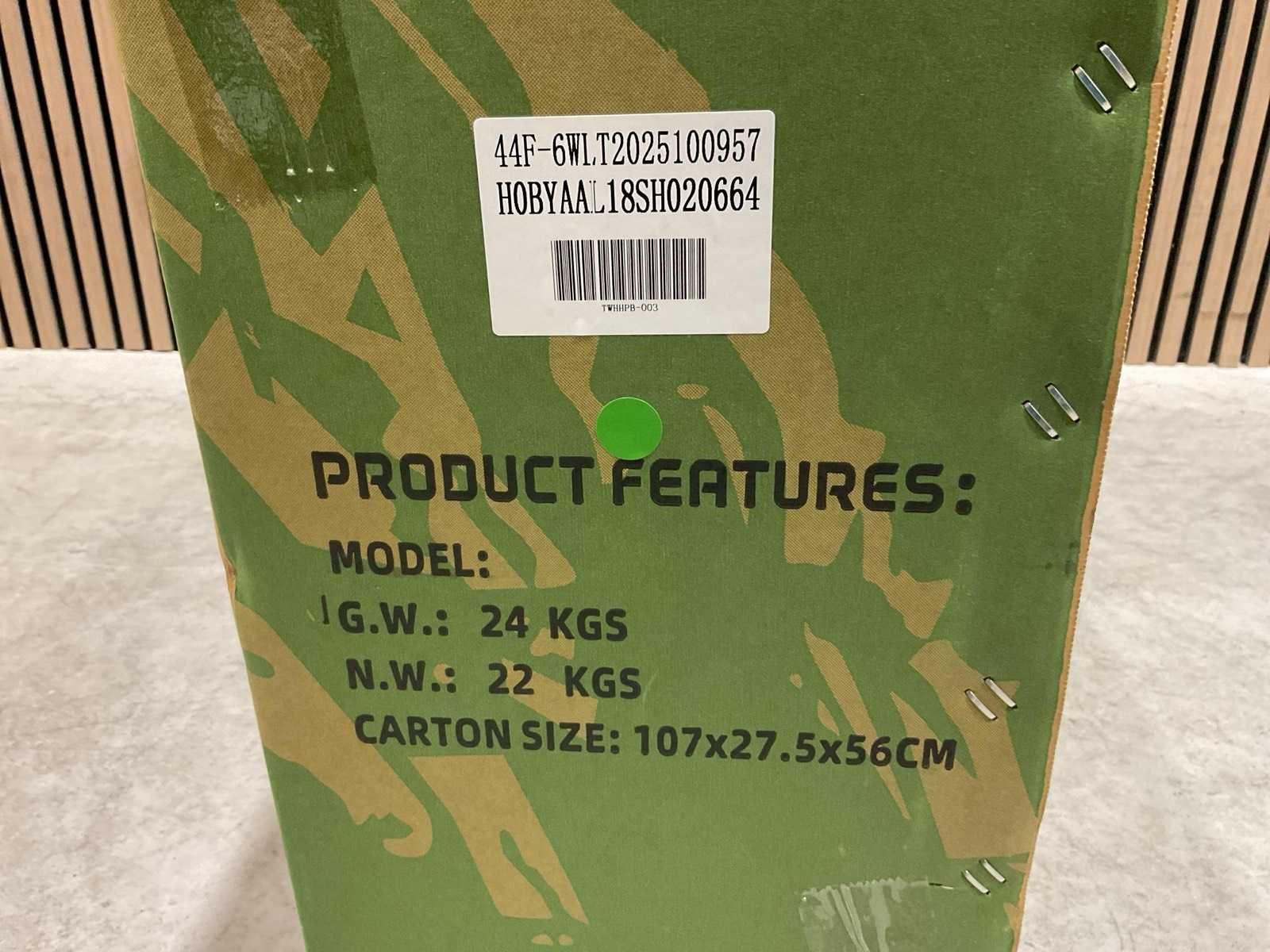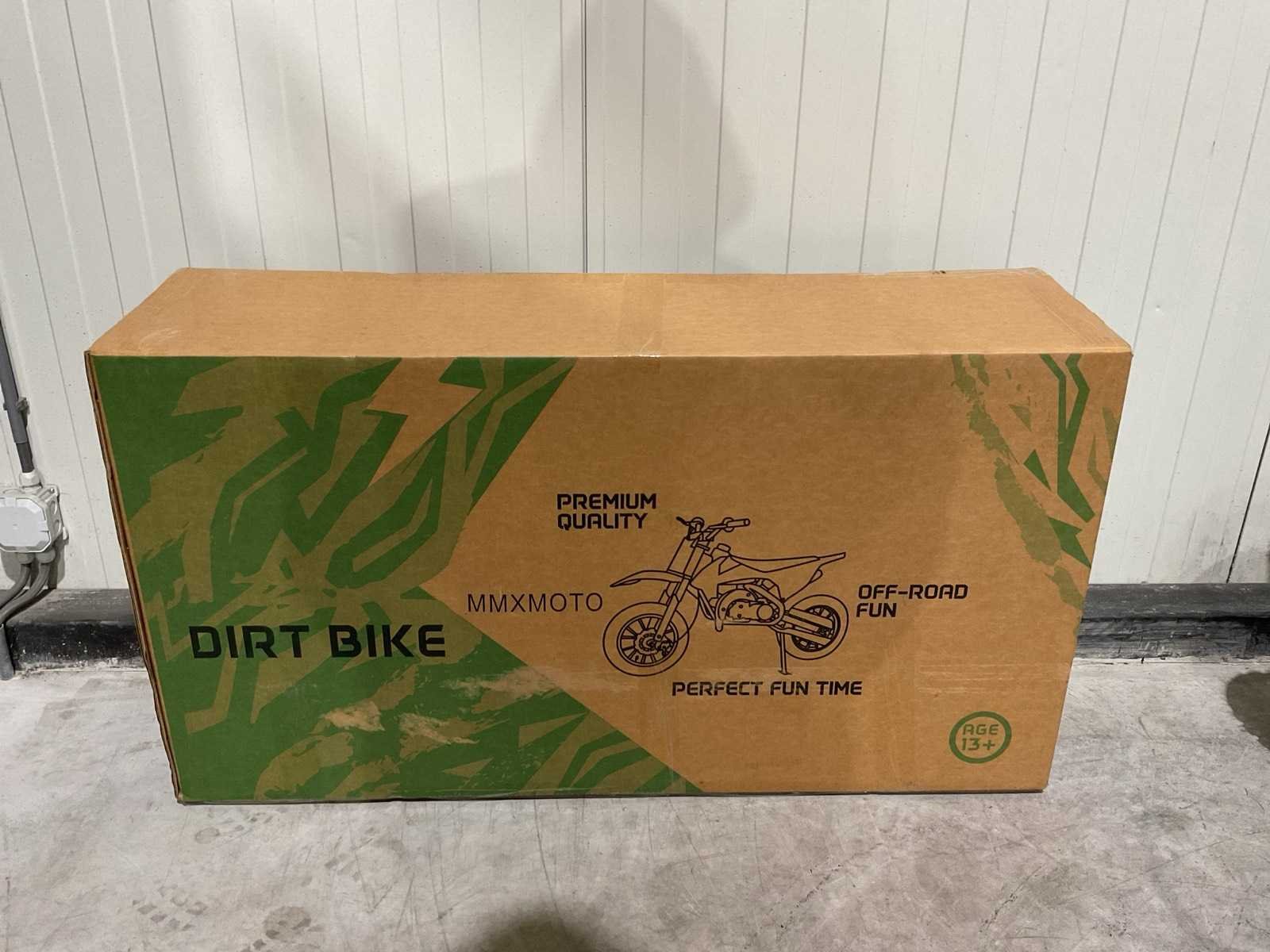 Voorzien van 49 cc, 2-takt benzinemotor luchtgekoeld; 3,5 pk; Trekstart; Transmissie: Automatische koppeling, kettingaandrijving; Mengsmering 2-takt; Top-snelheid: 40 km/u met snelheidsbegrenzers; Stalen buizenframe; Voor & achter schijfremmen; Voorvork + achter schokbrekers; Zithoogte: 55 CM; Max. laadvermogen: 60 kg; Gewicht: 22kg; Ongebruikt in doos (Transport 107x27.5x56cm, Gewicht 24kg) Merk: MMX Model: Dirt Bike 49cc Groen Type: TWHHPB-003 Brandstof: 2 takt Cilinderinhoud: 49cc Gewicht: 22kg Vermogen (kW): 3.5kW Kleur: Groen