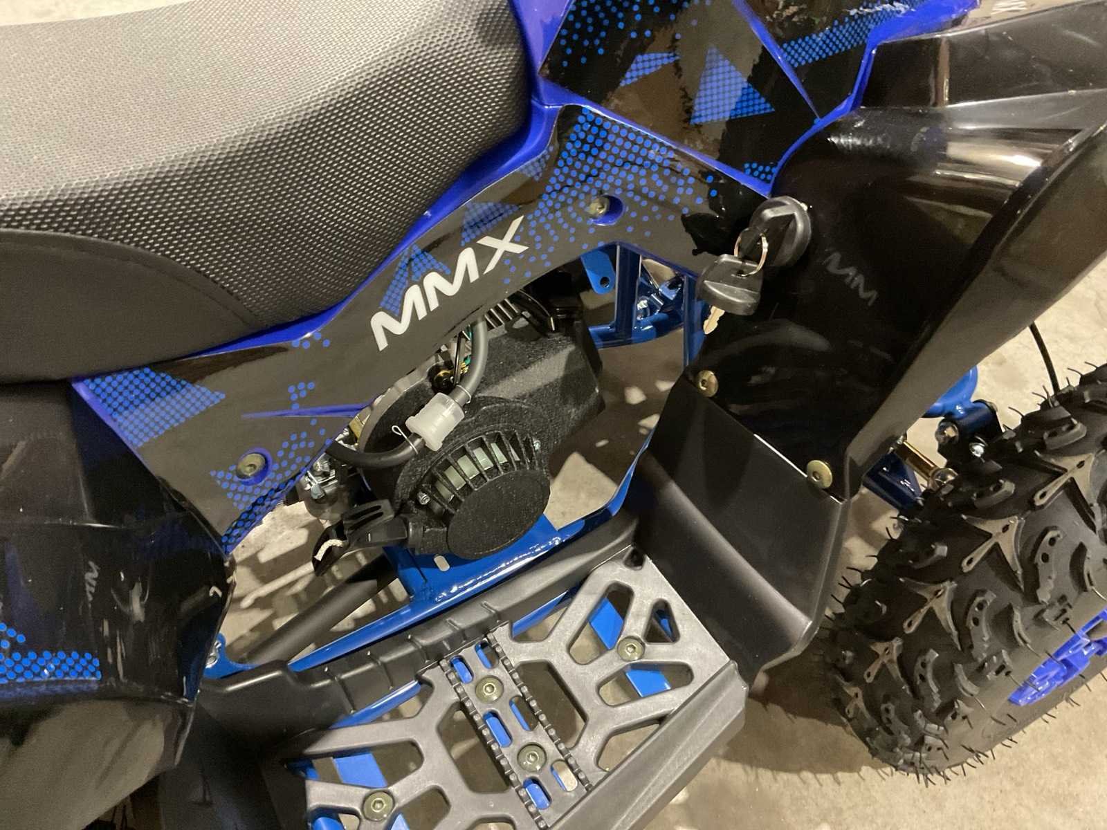 Voorzien van 49cc benzine motor; luchtgekoeld; trekstart; automaat; trekstart; schijfremmen; twee sleutels; ongebruikt in doos Merk: MMX Model: TWHHATV-008 Product type: Blauw