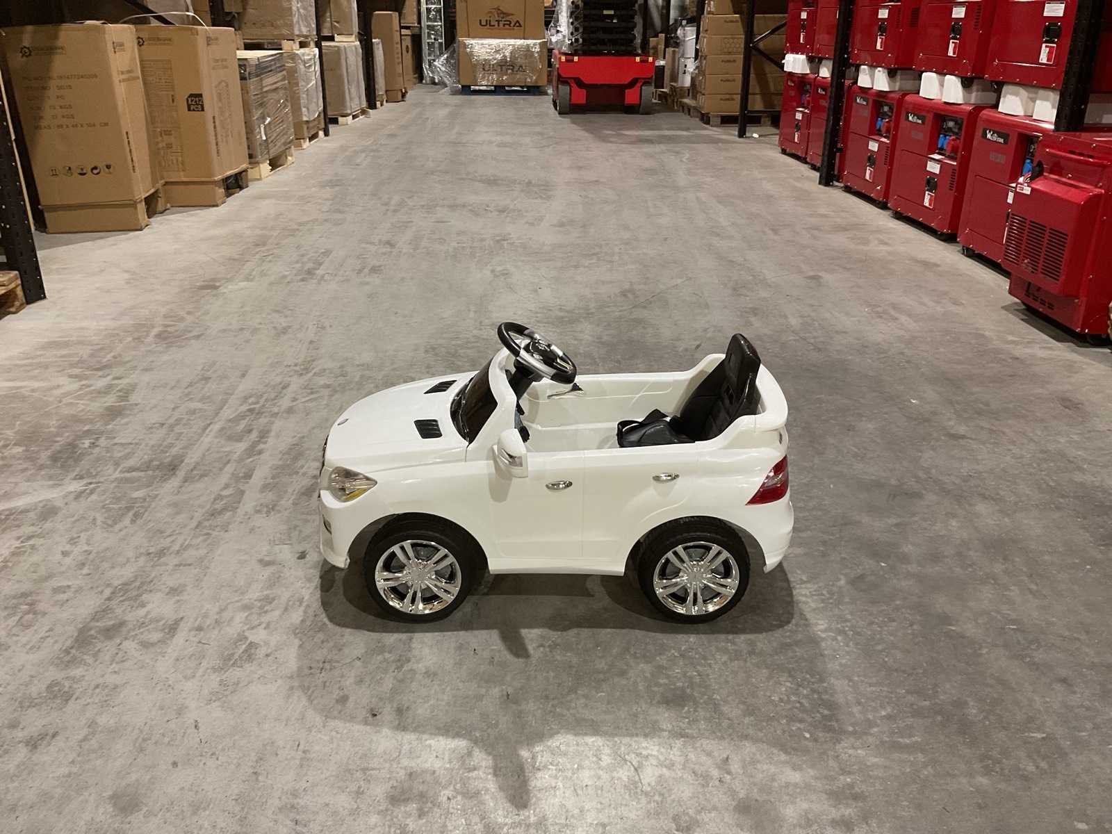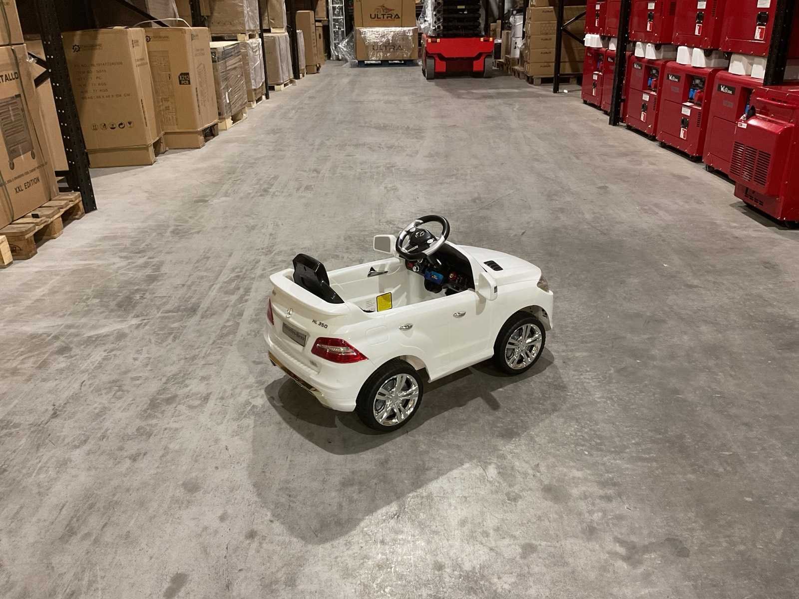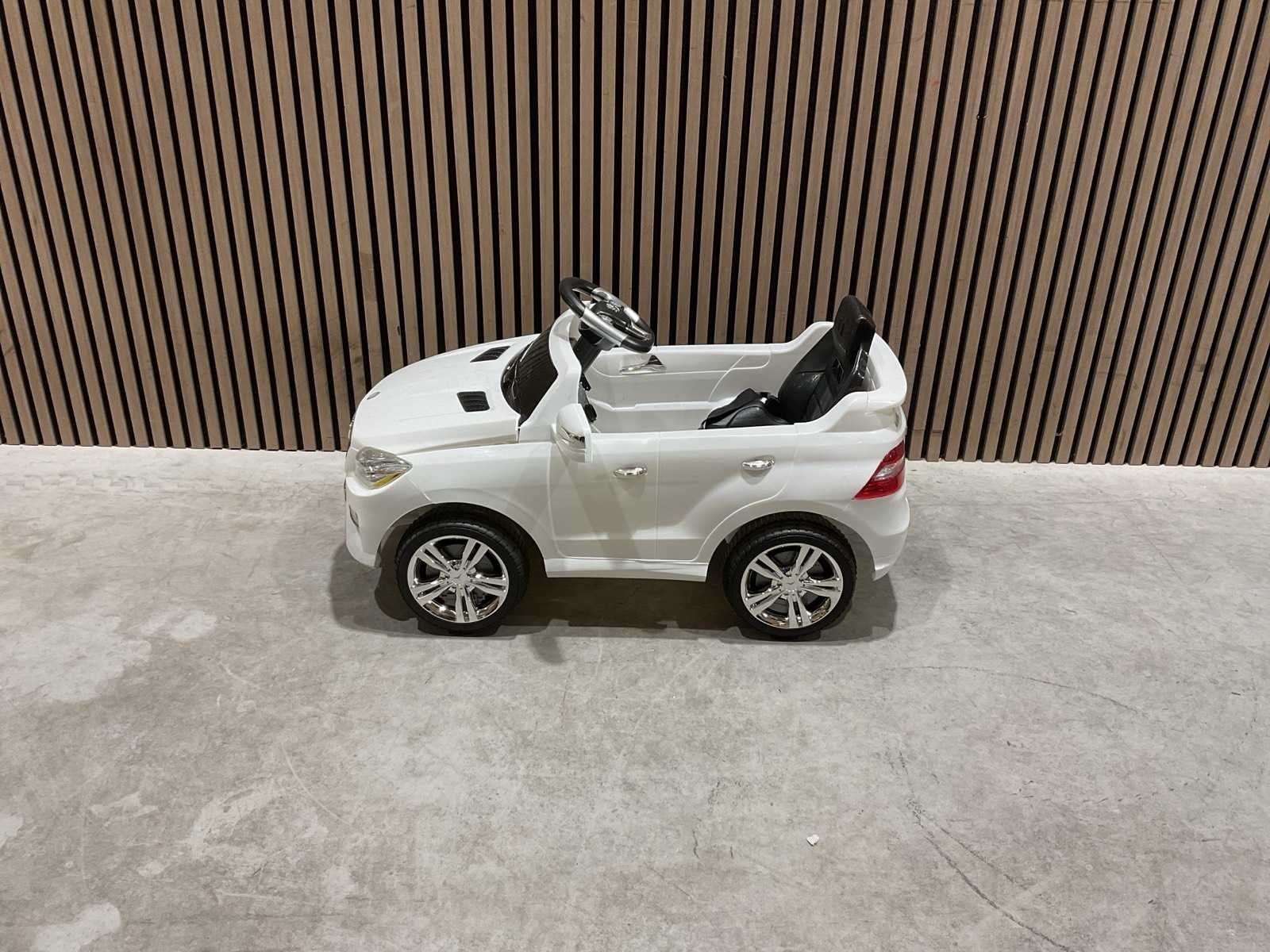 Voorzien van Zitplaatsen:Aandrijving: Elektrisch (accu-aangedreven); Accu: 6V gesloten droge accu; Capaciteit: 1 persoon; Materiaal: Kunststof; Verlichting; Geluidseffecten; Afstandsbediening; Voetpedaal; Draagvermogen: Max. 20 kg; Geschikte leeftijd: 37 tot 72 maanden; Transport gewicht: 13.2 kg; Transport afmetingen: Afmetingen verpakking: 99 × 55 × 39,5 cm; Ongebruikt in doos Merk: Mercedes Model: QX-7996 Wit Product type: ML350
