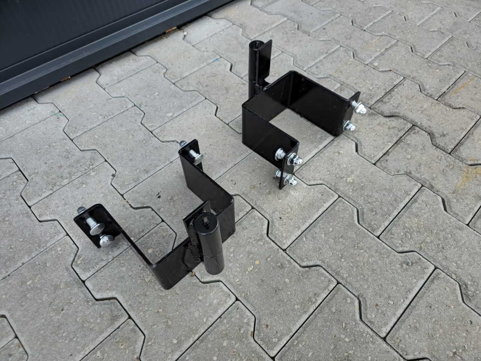 Voorzien van zwarte poedercoating / lakafwerking; set van 2; ongebruikt Merk: Rhino-Cross-Gates Kleur: Zwart Lengte: 15cm Breedte: 15cm Hoogte: 300cm