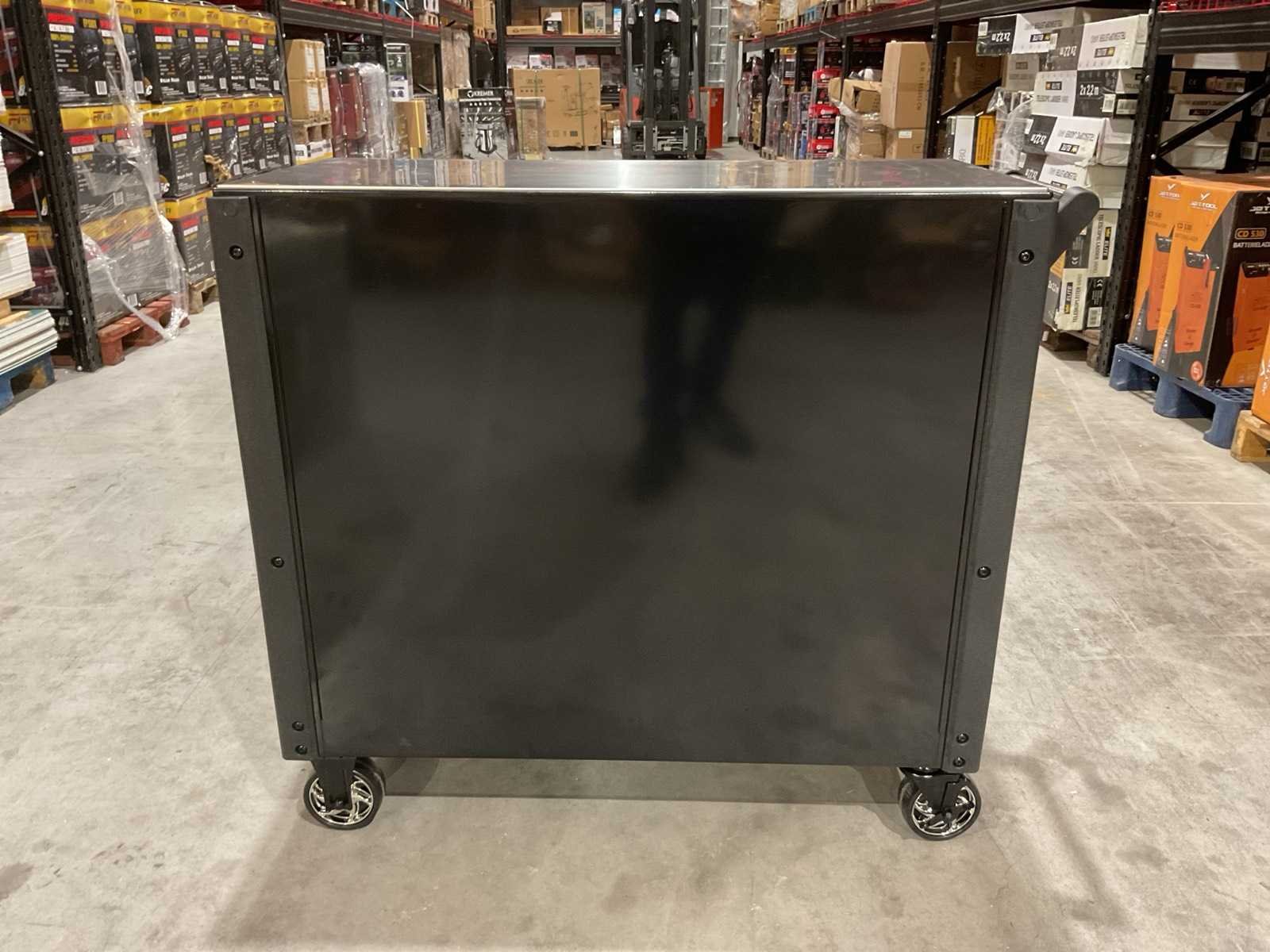 Voorzien van 11 lades; 10 gevuld; divers gereedschap; Materiaal: staal; 2 vaste wiel; 2 zwenkwielen; transport gewicht: 122kg; transport afmetingen: 1086x510x870 mm; ongebruikt in doos Merk: Ftools Type: Tool Trolley Aantal laden: 12 Met inhoud: true Totale afmeting L: 1140mm Totale afmeting Breedte: 490mm Totale afmeting Hoogte: 100mm