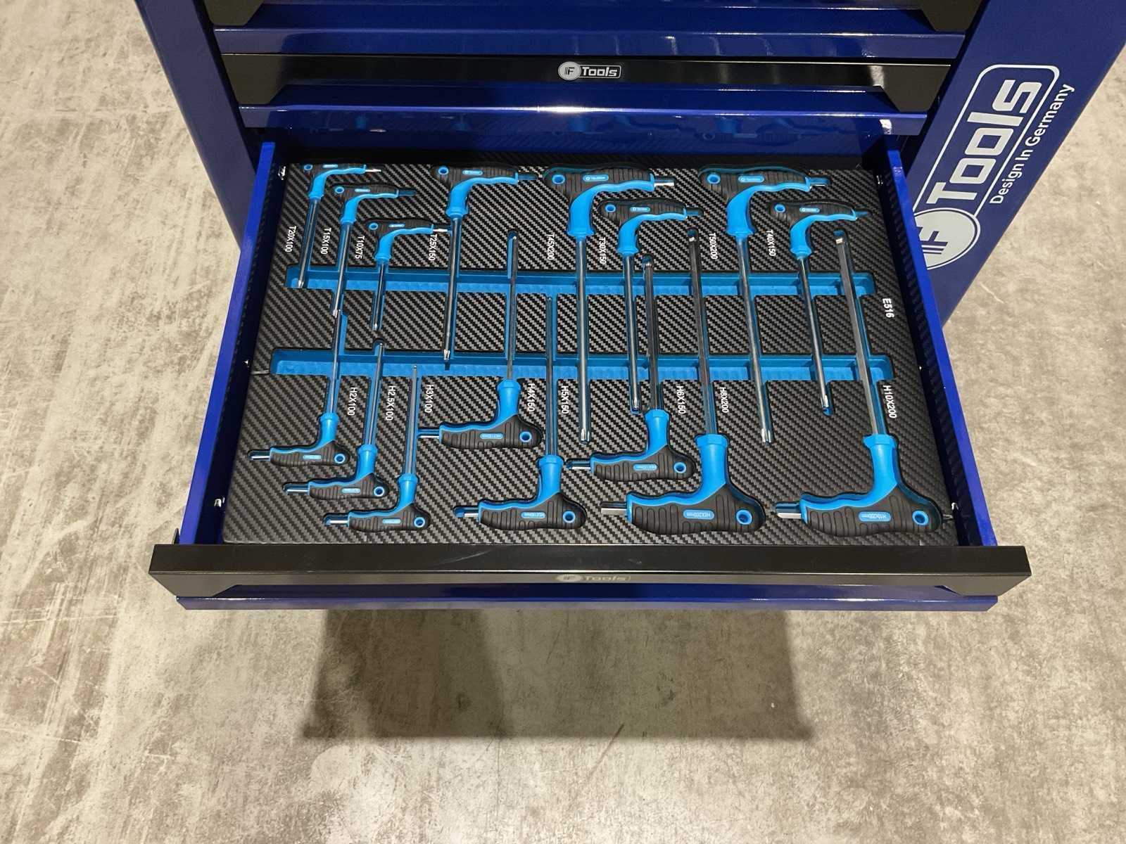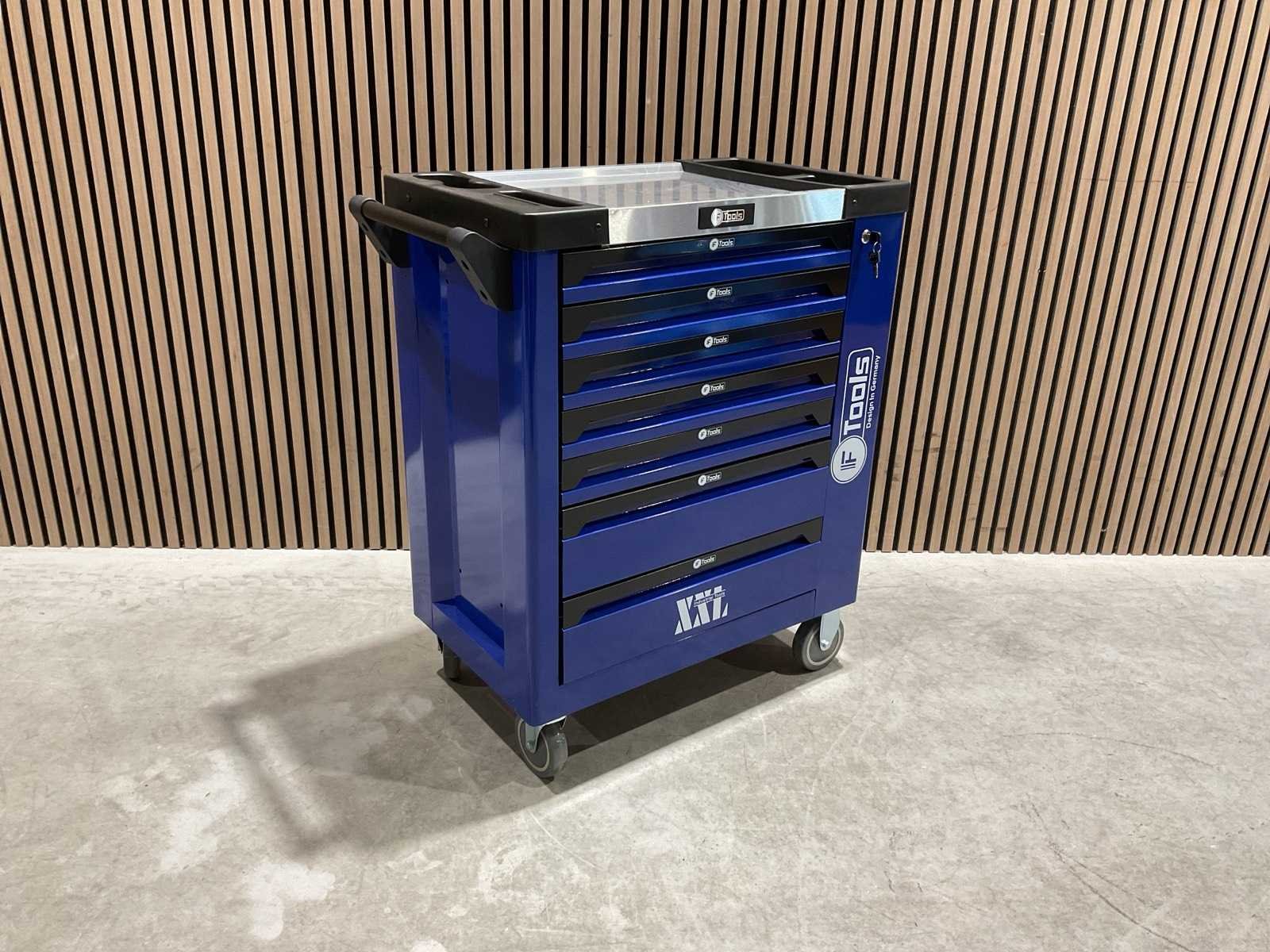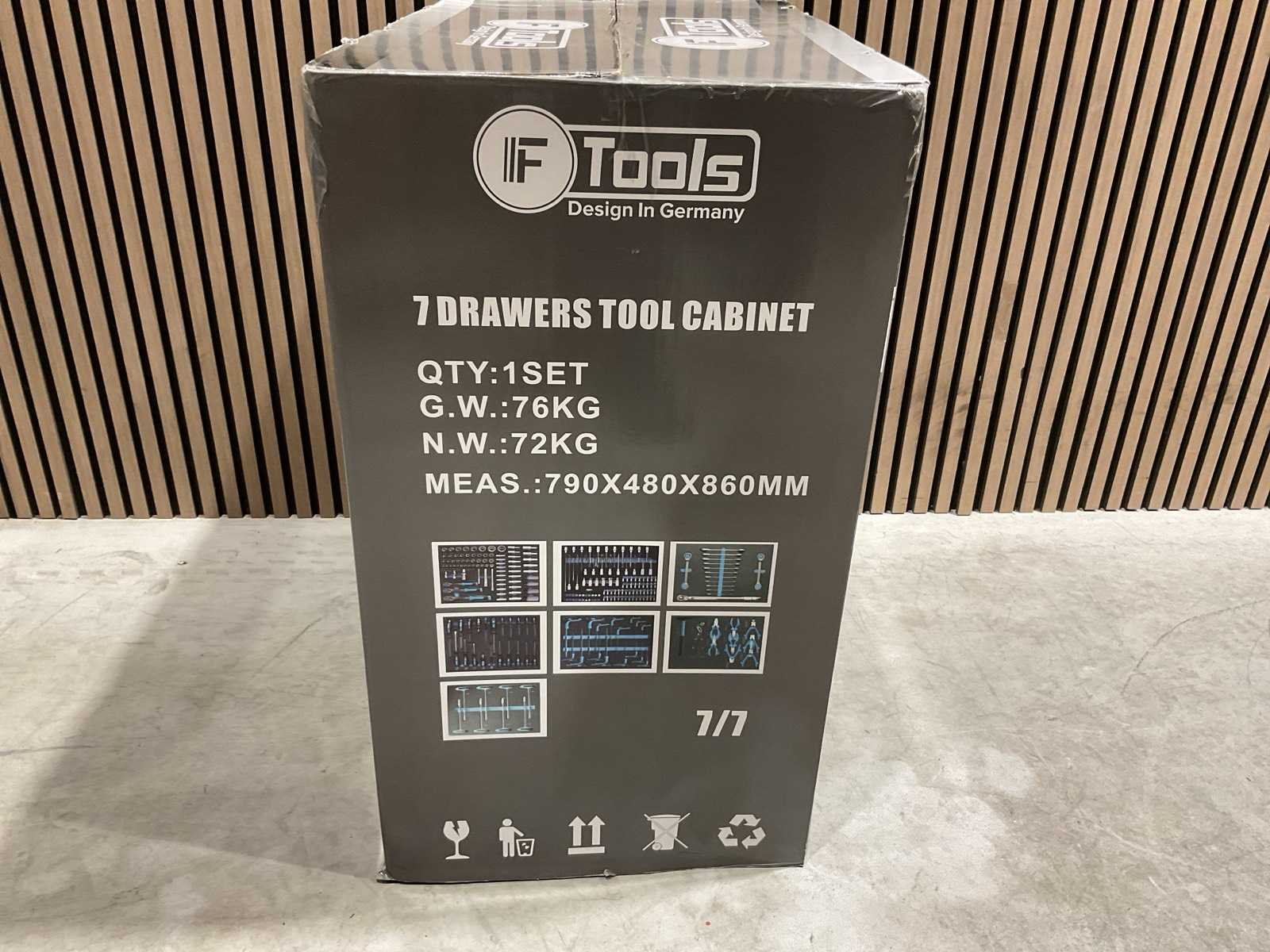 Voorzien van 7 lades gevuld met gereedschap; RVS werkblad; centrale vergendeling; Materiaal gereedschap: Chroom-Vanadium staal (CrV); Kogellager ladegeleiding; Bovenblad met geïntegreerde opbergvakken; Transport gewicht: 76 kg; Transport afmetingen 790x480x860 mm; ongebruikt in doos Merk: Ftools Type: FT3006