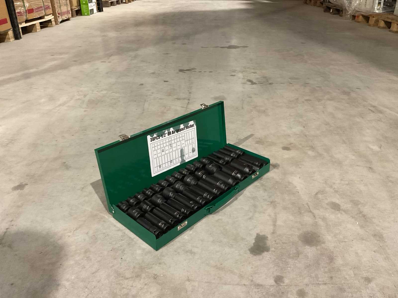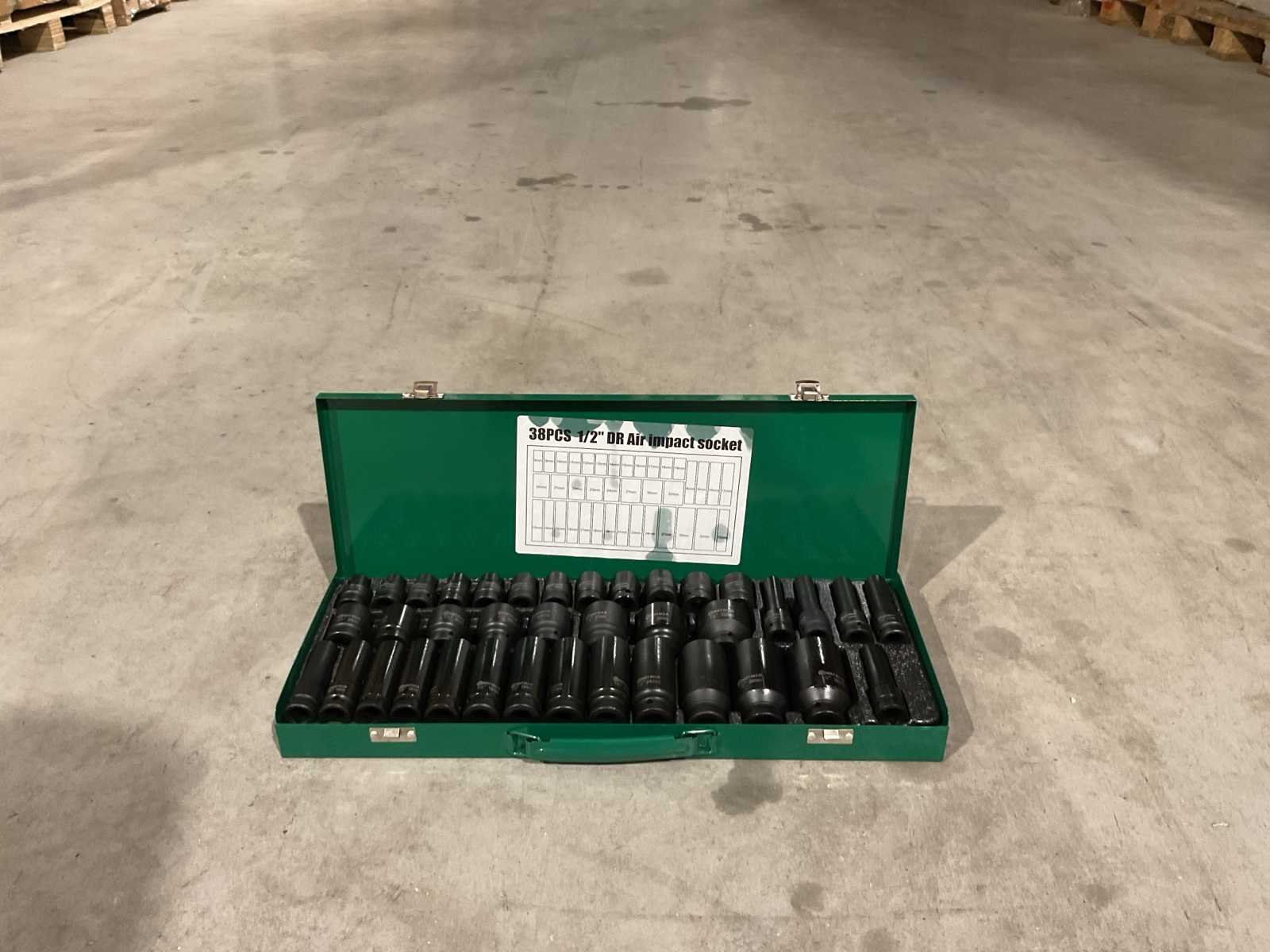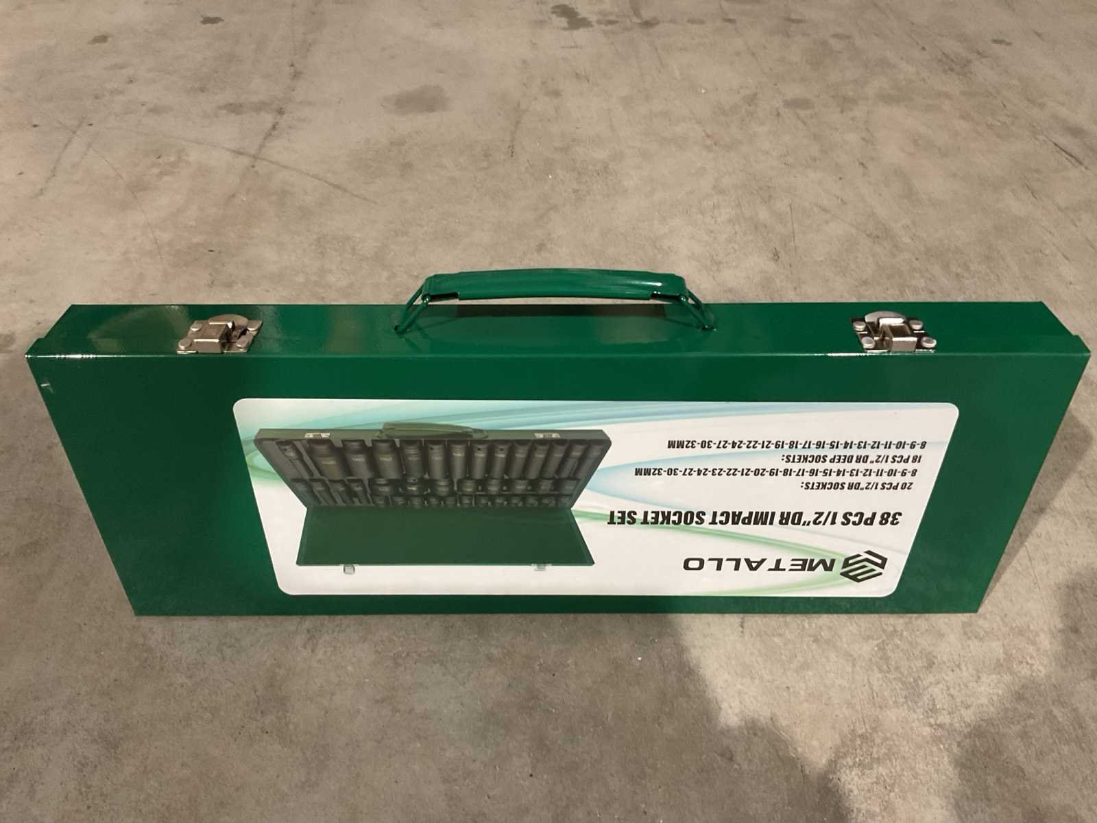 Voorzien van 20delig korte maten 8, 9, 10, 11, 12, 13, 14, 15, 16, 17, 18, 19, 20, 21, 22, 23, 24, 27, 30, 32; 18 delige lange doppen maten lange krachtdop 8 , 9 , 10, 11 , 12, 13, 14, 15, 16, 17, 18, 19, 21, 22, 24, 27, 30, 32; Ongebruikt in doos Merk: Metallo Type: 38 ST Krachtdoppen Bouwjaar: 2025 Lengte: 50cm Breedte: 22cm Hoogte: 6cm