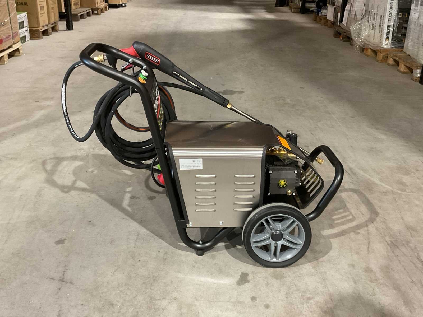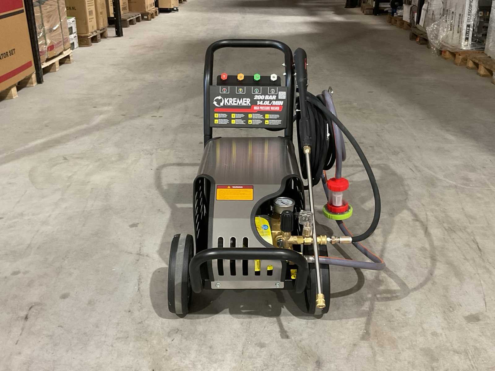 Voorzien van 10M hogedrukslang, staal gevlochten; Roestvrij stalen deksel; koperen triplex zuigerpomp; Stroomsnelheid water: 3.7GPM 14.0L/MIN; 200 bar; Snelheid: 1450 rpm; 4.0kw; 380V; Gewicht( KGS): 68; Afmetingen L*B*H(MM): 730*545*620; Ongebruikt in doos (Afmeting transport verpakking 730x545x620 mm lxbxh, gewicht 68 kg) Merk: Kremer Type: KR-2900-4.0T4 Bouwjaar: 2025 Maximale werkdruk: 200bar Temperatuurbereik min.: 0°c Temperatuurbereik max.: 60°c Capaciteit.: 840l/hr Mobiel: true Vermogen: 4kW Aansluiting: 380V Eigen gewicht: 68kg Totale afmeting L: 730mm Totale afmeting Breedte: 545mm Totale afmeting Hoogte: 620mm