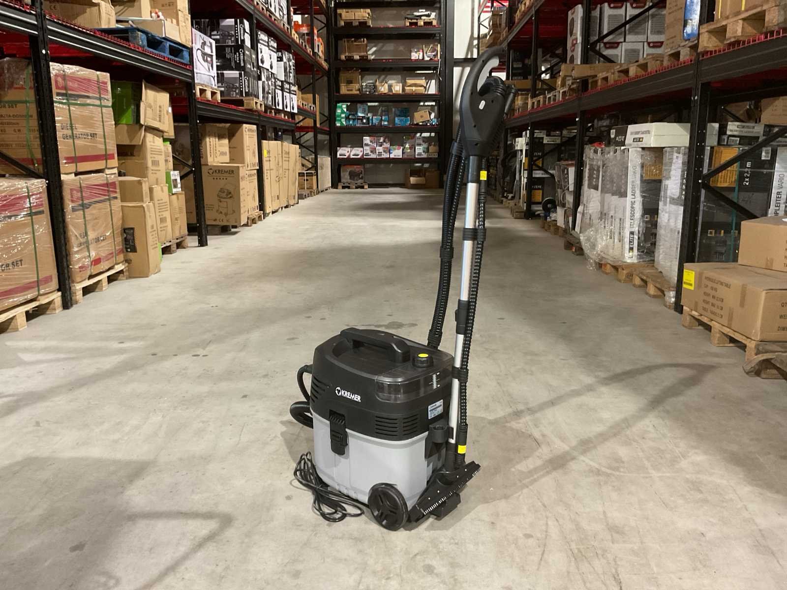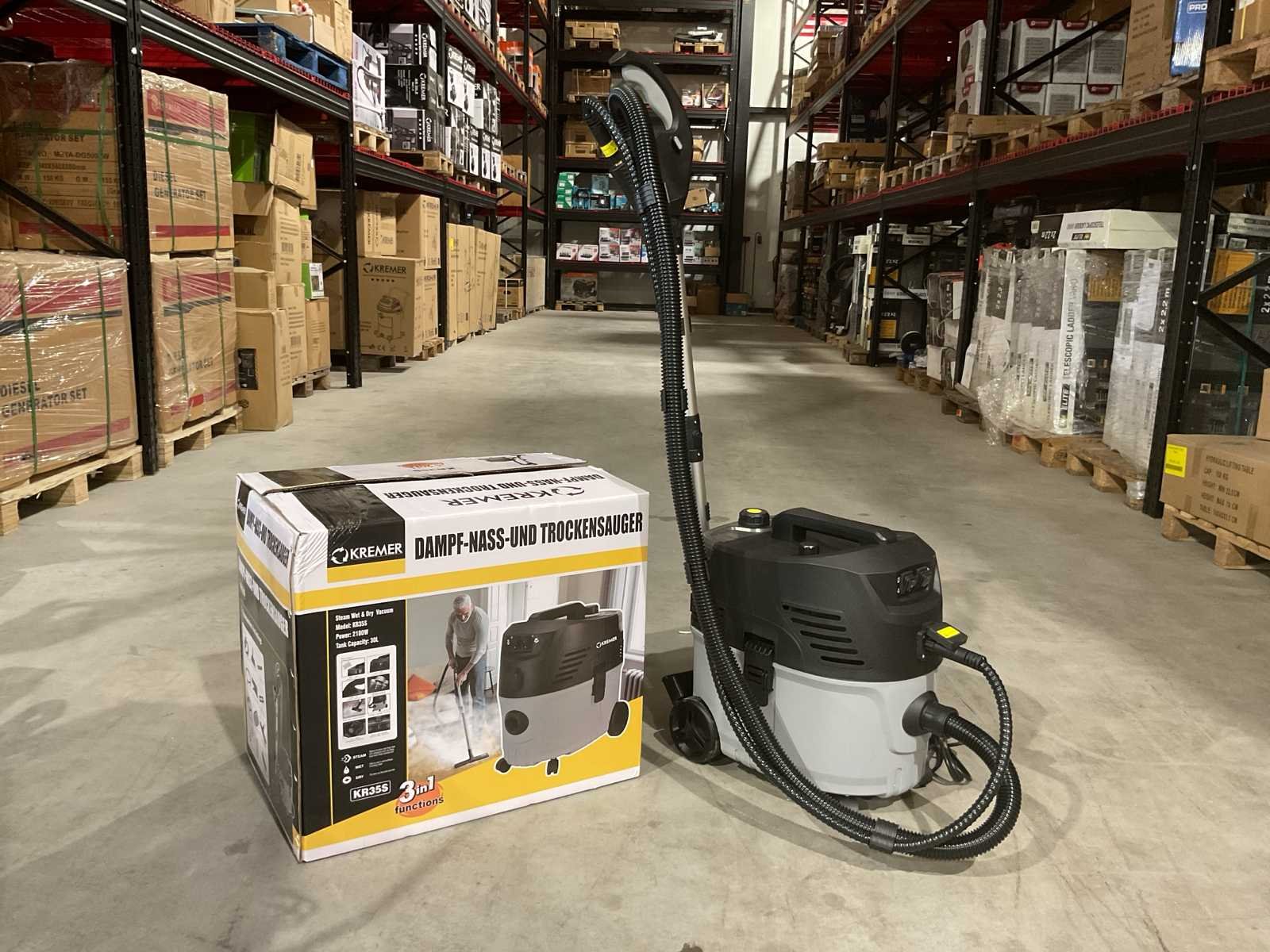 Voorzien van nat en droog functie; bescherming tegen oververhitting; Nat- en droog stofzuiger; Stoom functie; Sproei functie; Inhoud 30 Liter; Kunststof Ketel; 2100W; 2 Zwenkwielen; 2 Starre wielen spray en zuig functie; Ongebruikt in doos (Afmeting transport verpakking 615x435x545 mm lxbxh, gewicht 13.8 kg) Merk: Kremer Type: KR35S Bouwjaar: 2025 Capaciteit.: 30l/hr Mobiel: true Vermogen: 2100kW Aansluiting: 220V Eigen gewicht: 13.8kg Totale afmeting L: 615mm Totale afmeting Breedte: 435mm Totale afmeting Hoogte: 545mm