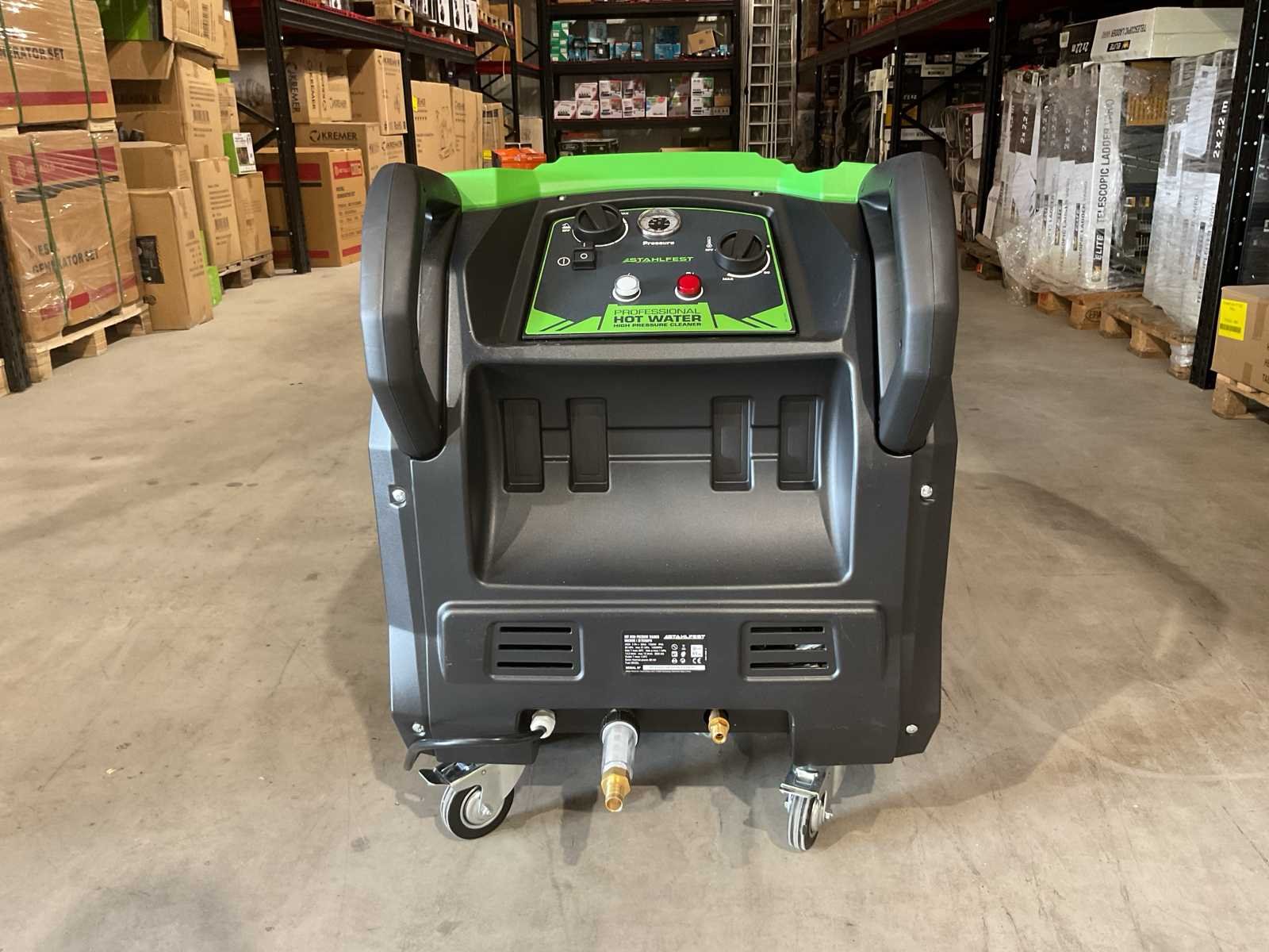 Voorzien van Spanning: 380 - 400V; Fase: 3 Hertz: 50 Hz; Thermisch vermogen: 58 kW; Ketelvoorziening: diesel; Maximale waterdruk: 210 bar; Werkdruk: 20 MPa; Maximale druk: 21 MPa; Pomp: 1450 tpm; Debiet: 15 l/min; Maximale temperatuurinvoer: 140°C; 10mtr slang; Ongebruikt in kist (Afmeting transport verpakking 730x545x620 mm lxbxh, gewicht 165 kg) Merk: Stahlfest Type: SF7820HPW Bouwjaar: 2025 Maximale werkdruk: 210bar Temperatuurbereik max.: 140°c Capaciteit.: 900l/hr Mobiel: true Vermogen: 7300kW Aansluiting: 400V Eigen gewicht: 165kg Totale afmeting L: 730mm Totale afmeting Breedte: 545mm Totale afmeting Hoogte: 620mm