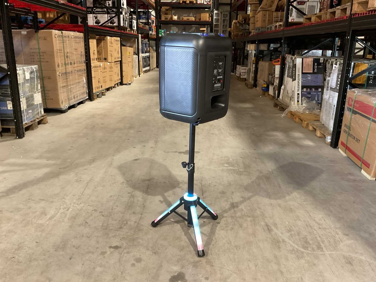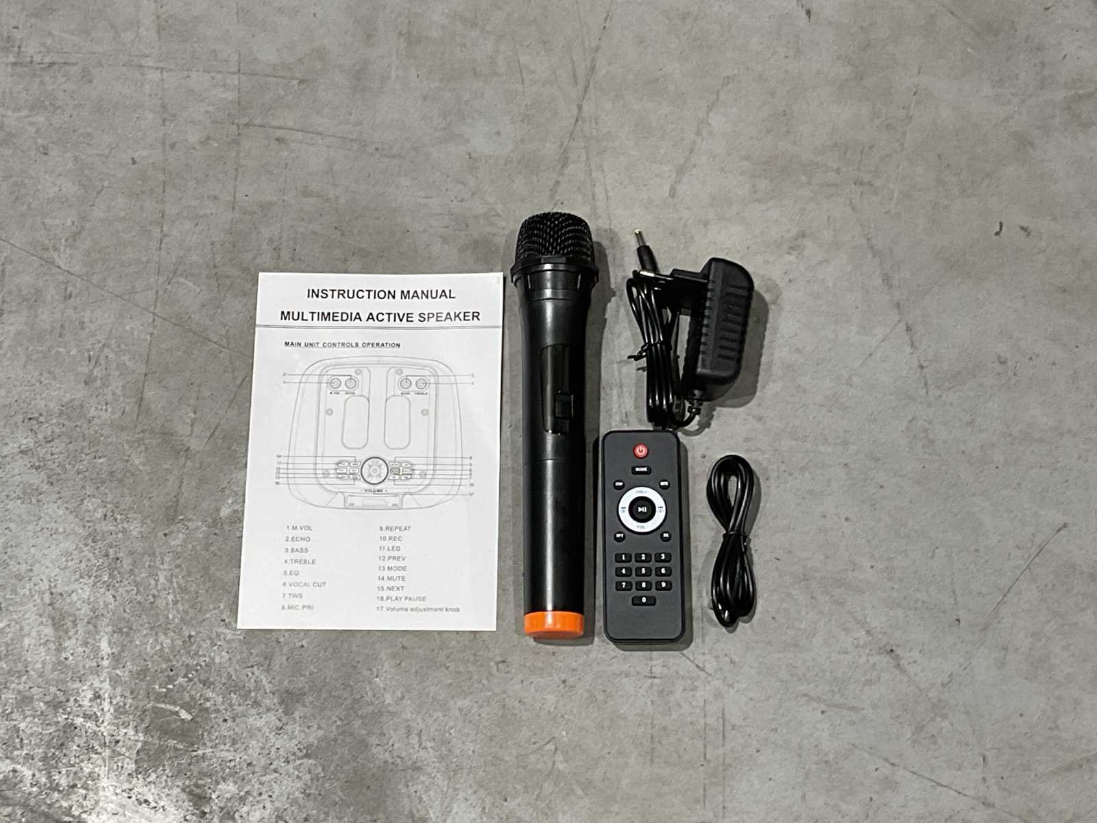 Voorzien van 40w speaker; 12” speaker Horns; Aansluitingen: USB, TF card, BT, AUX; Draadloze microfoon; afstandsbediening; Party verlichting; meerdere microfoon aansluitingen; Speaker standaard met verlichting; Ongebruikt in doos. Merk: Soundman Type: SM-B1222 Bouwjaar: 2025 Vermogen: 40W Aansluiting: 7.4V Totale afmeting L: 505mm Totale afmeting Breedte: 383mm Totale afmeting Hoogte: 530mm Eigen gewicht: 9.6kg