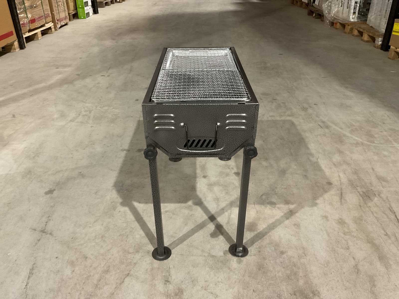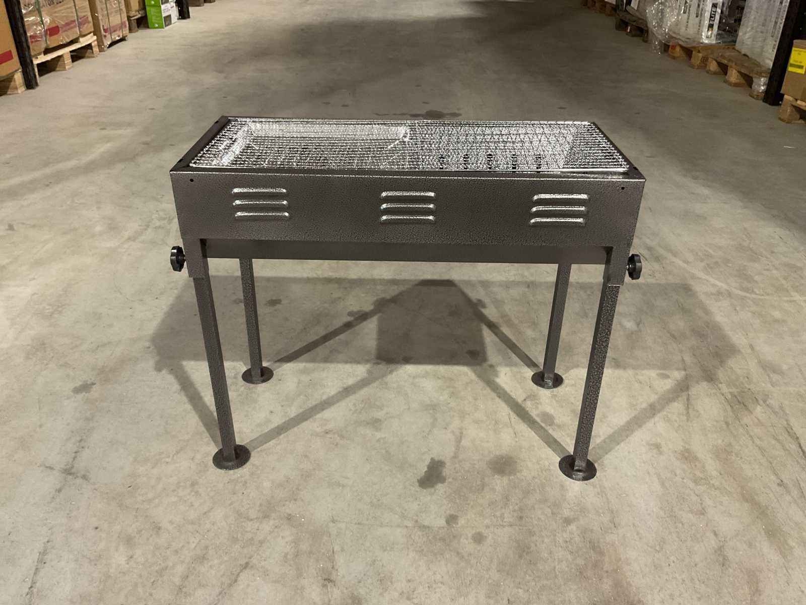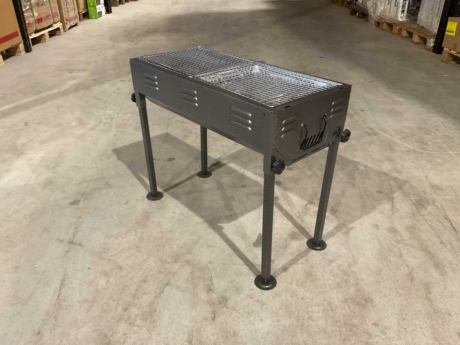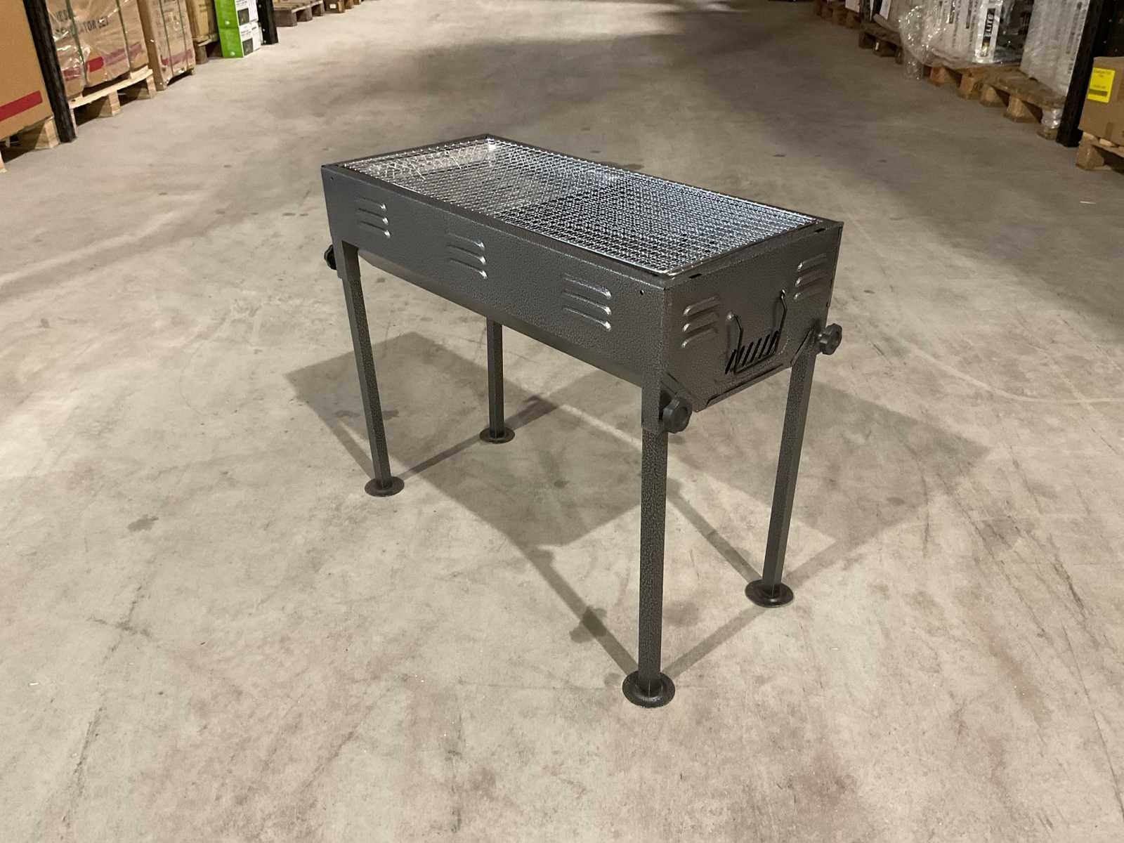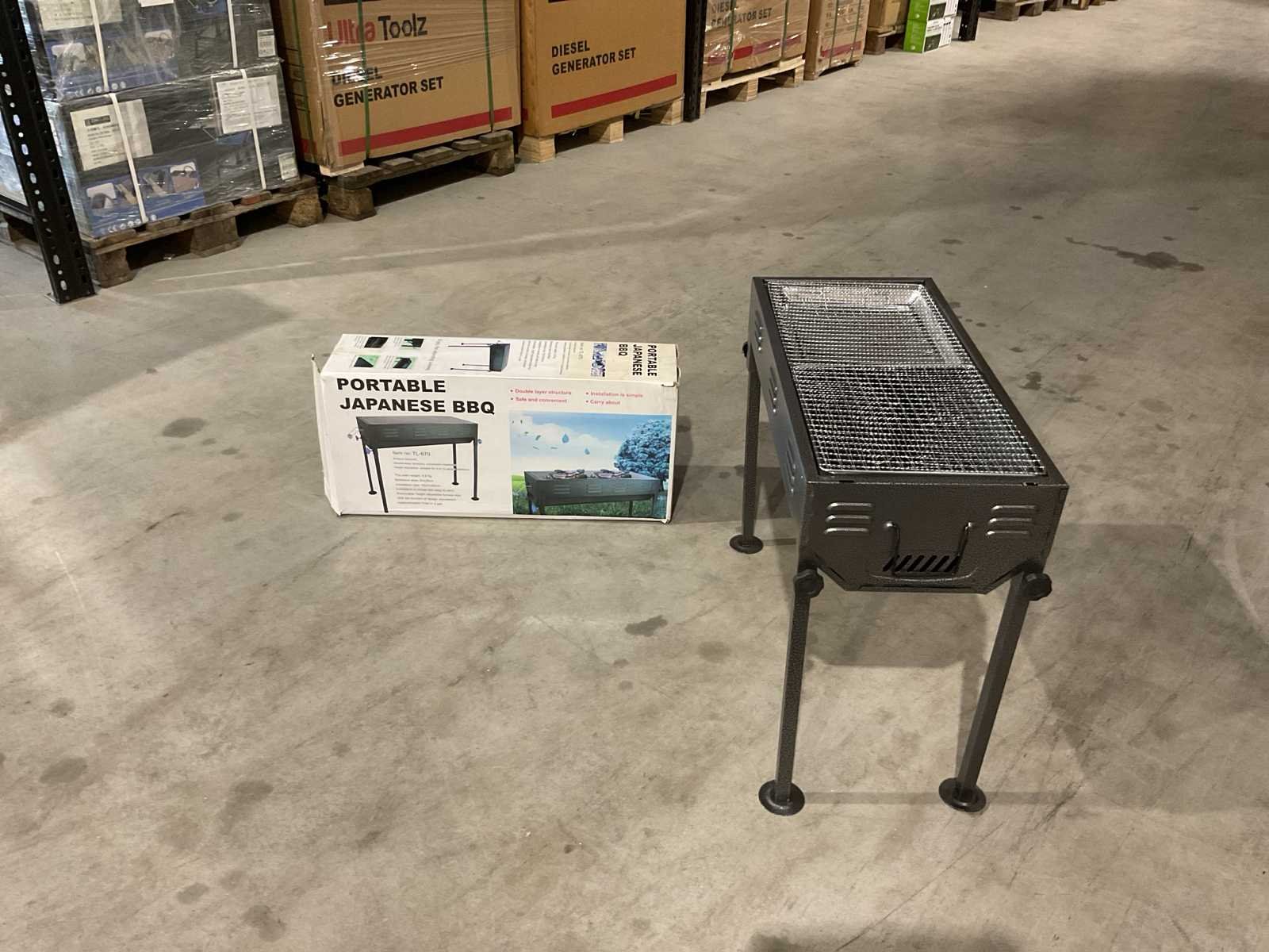 Voorzien van rvs behuizing; in hoogte verstelbaar; BBQ voor 5-10 personen; Verwijderbare grill rekken Afneembare poten; grill oppervlak 62 x 26 cm; Kleur: zwart; Ongebruikt in doos Merk: Portable Japanse Model: TL-670 Kleur: Zwart Gewicht: 5.8kg Lengte: 66cm Breedte: 18cm Hoogte: 31.5cm Materiaal: Metaal