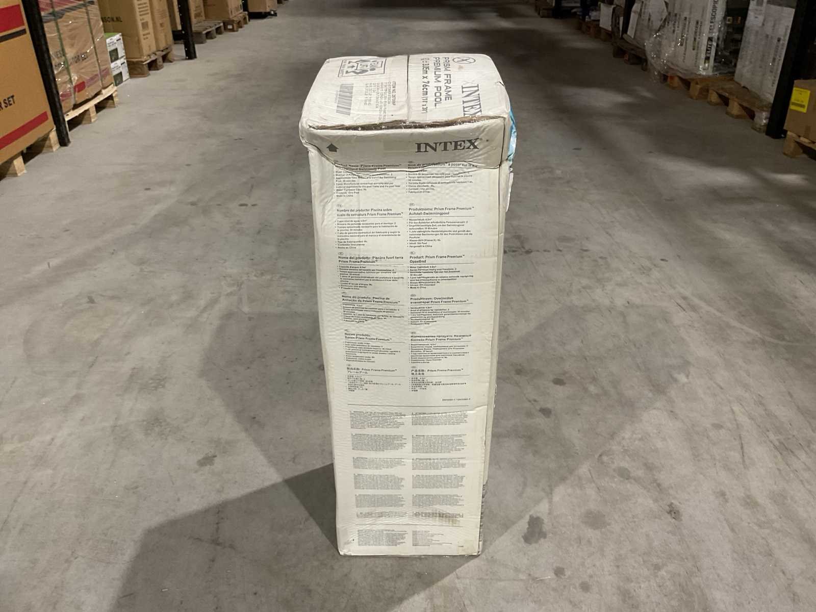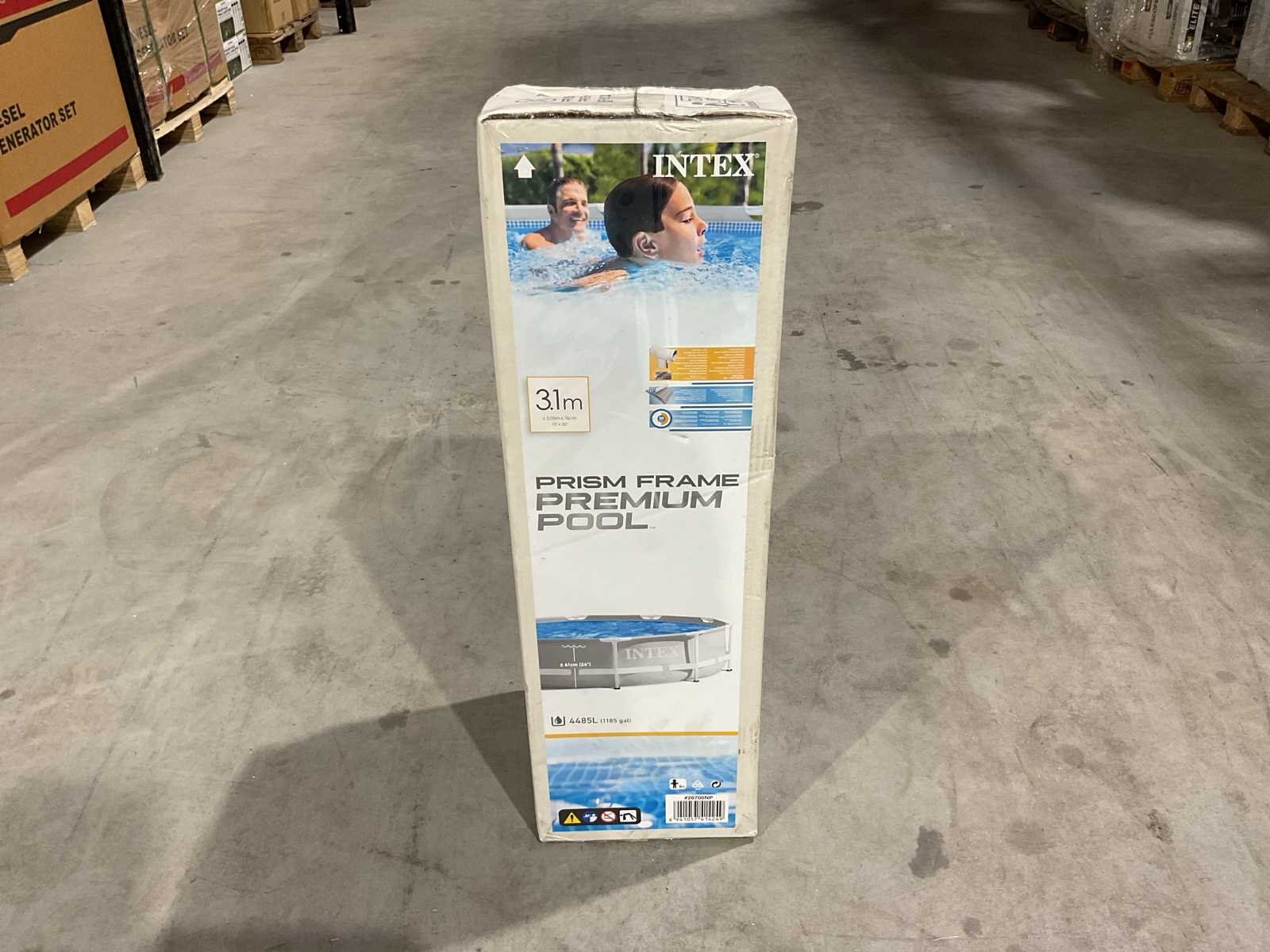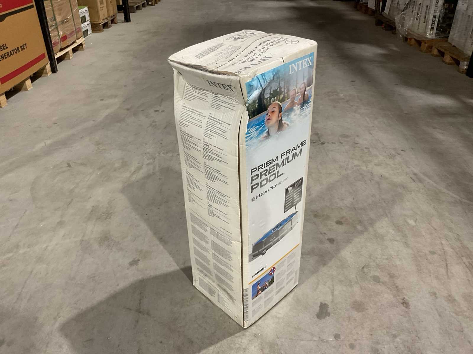 Voorzien van Opzetzwembad; 3-laags PVC met gerasterde polyester tussenlaag; Frame gepoedercoat staal; Vorm: Prism; Inhoud 4485 liter; Aanbevolen waterhoogte 61 cm; Pompaansluiting (mm) 32; Diameter (cm) 305; Hoogte (cm) 76; Dikte liner wand (mm) 0,50; Dikte liner bodem (mm) 0,32; Reparatieset; Ongebruikt in doos Merk: INTEX Model: 26700NP Prism Frame Premium Product type: 3,1m Kleur: Blauw Gewicht: 25.5kg Lengte: 35.6cm Breedte: 34cm Hoogte: 87.6cm Materiaal: Dubbelwandig PVC folie met gerasterde binnenlaag