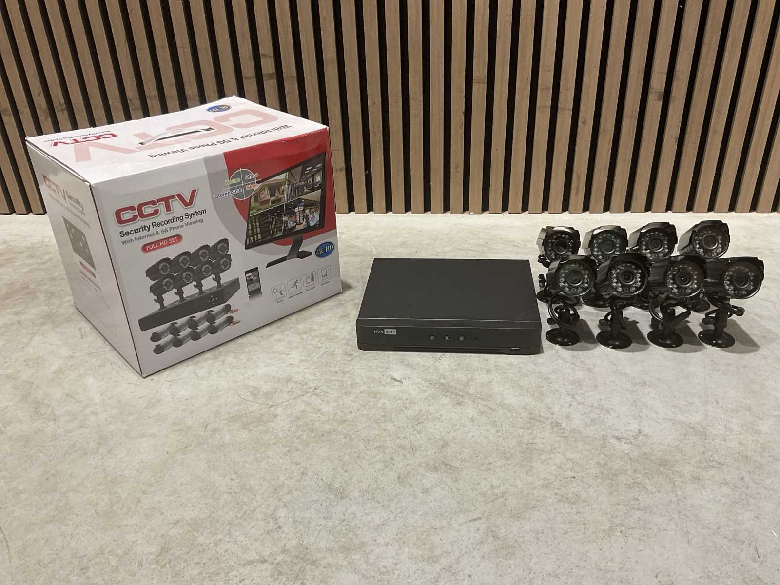 Voorzien van 8 camera’s; beweging detectie; DVR; Resolutie VGA 1280X1024; 8 kabels 10mtr kabel; 2 x power adapter; 1 x muis; 2 x usb poorten; 1 x SATA harde schijf slot; netwerk aansluiting rj45; DC12V; video input: 4CH BNC; Video-output: 1x VGA, 1x CVBS, 1x HDMI; Audio input: 2 kanaal RCA; Audio output: 1ch RCA; 3.6 mm lens; kijkhoek: 60 graden; Nachtzicht: LED IR, 15M range; ongebruikt in doos Merk: CCTV Model: Security Recording system Product type: With internet & 5G phone viewing Kleur: Zwart Wifi: true Gewicht: 5.2kg Lengte: 34cm Breedte: 27cm Hoogte: 27cm