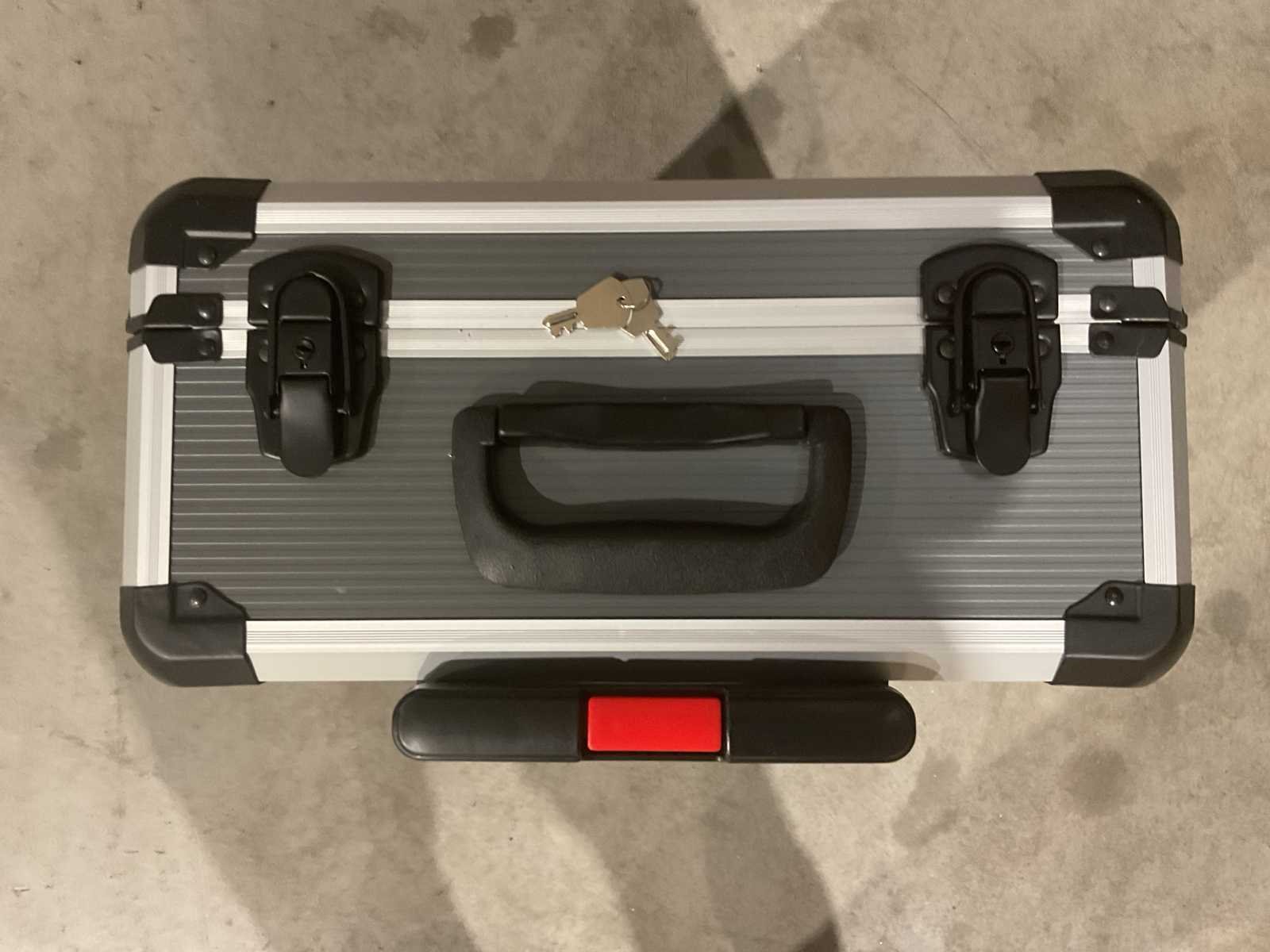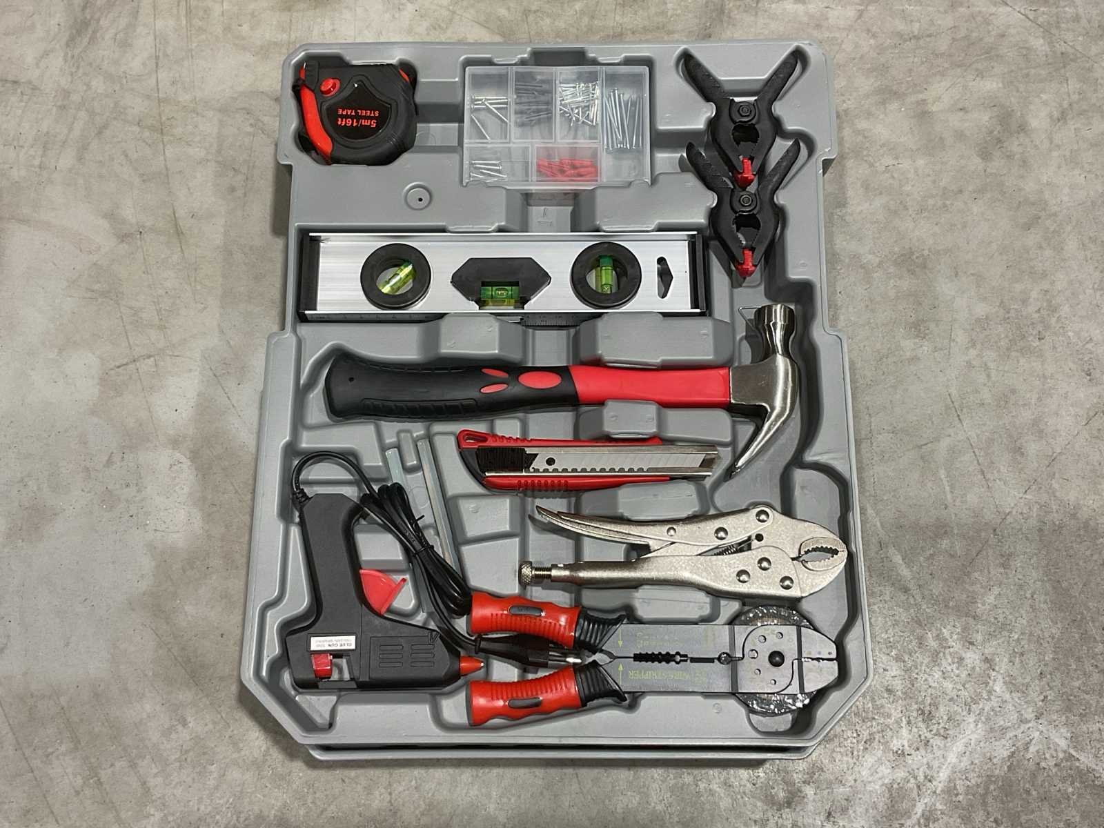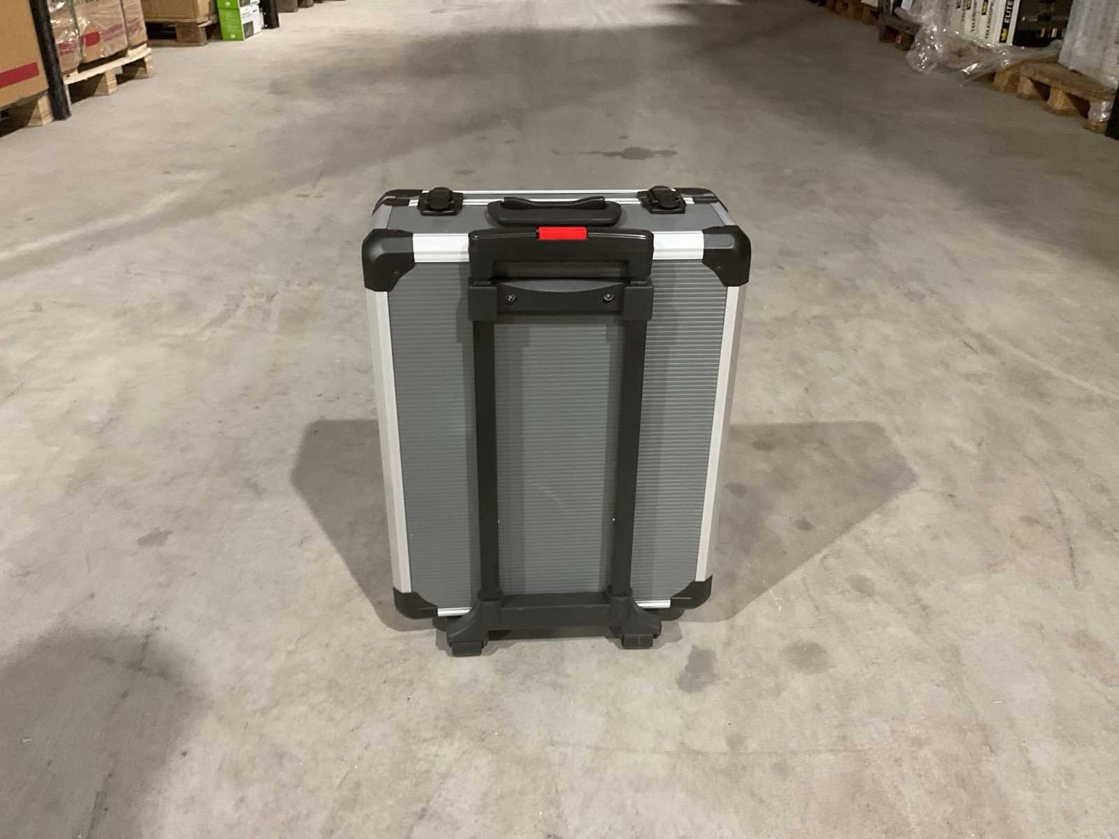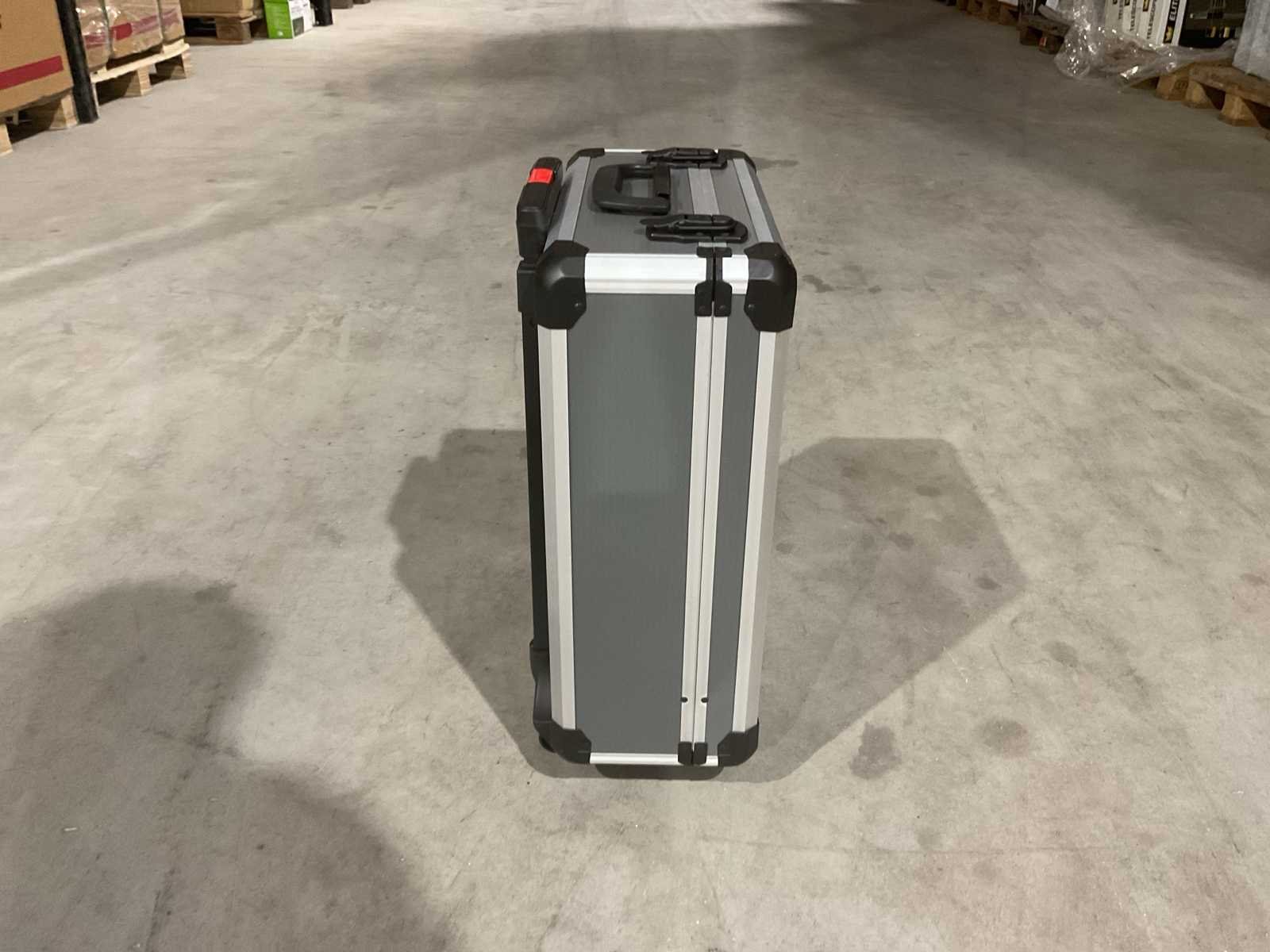 Voorzien van Schroevendraaierset; Lijmpistool; Waterpas; Hamer; Bitset; Inbussleutels; Spanningsmeter; Handgereedschap; Spijkers; pluggen; Aluminium Koffer; Telescoop handgreep; wielen; ongebruikt in doos Merk: Wurzburg Type: 396PCS W-800 Aluminium: true Metaal: true Met inhoud: true Afmeting l: 38.5mm Afmeting b: 20.5mm Afmeting h: 52mm Eigen gewicht: 13kg