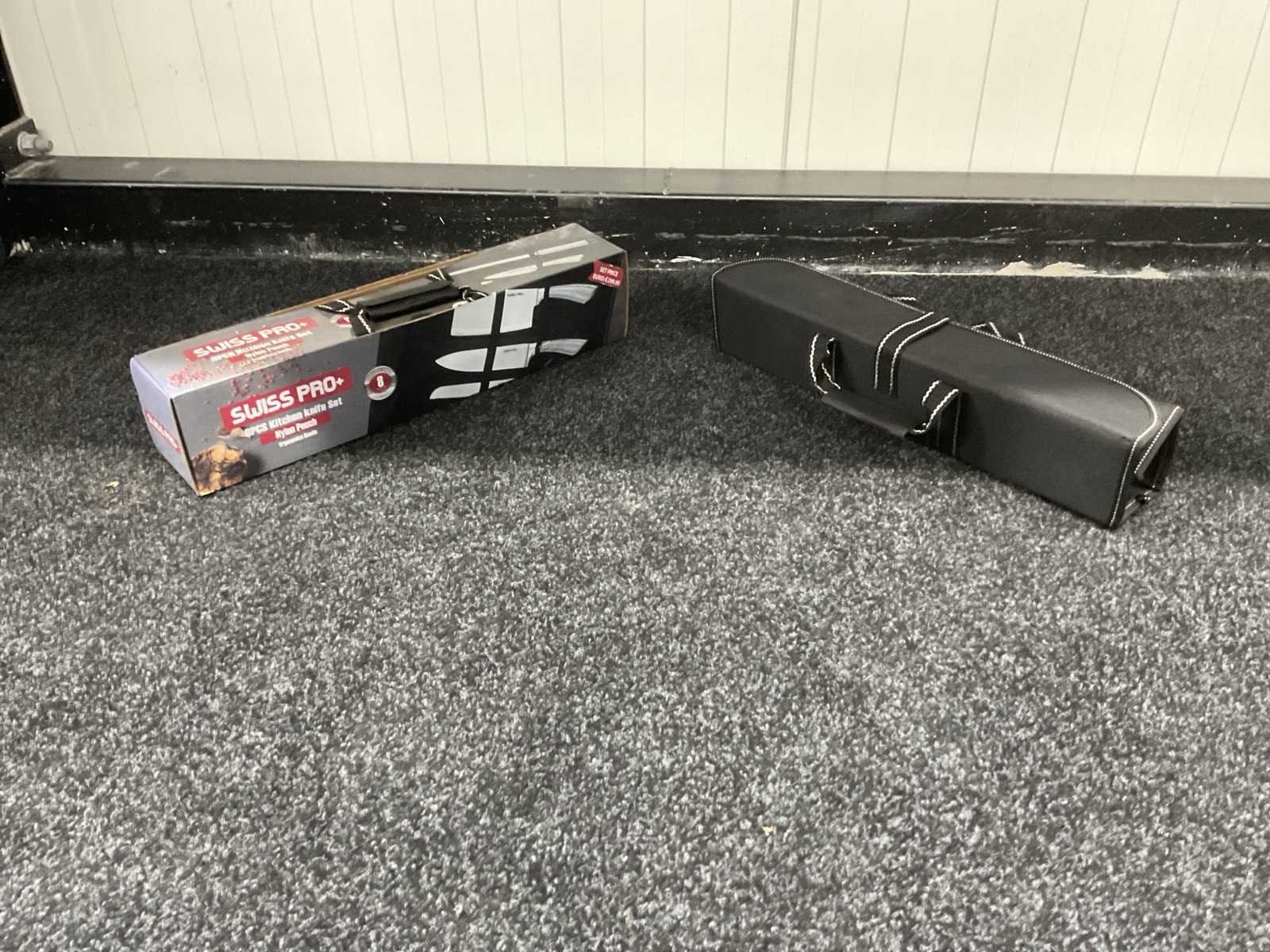 Voorzein van roestvrij staal; kunstof ergonomisch anti slip handgreep; hakmes; koksmes; broodmes; universeel mes; schil mes; dunschiller; messenslijper; messenstandaard; ongebruikt in doos Merk: Swiss Pro+ Type: SP-KS08 Totale afmeting L: 475mm Totale afmeting Breedte: 90mm Totale afmeting Hoogte: 10mm Materiaal: Stainless steel Eigen gewicht: 1.4kg