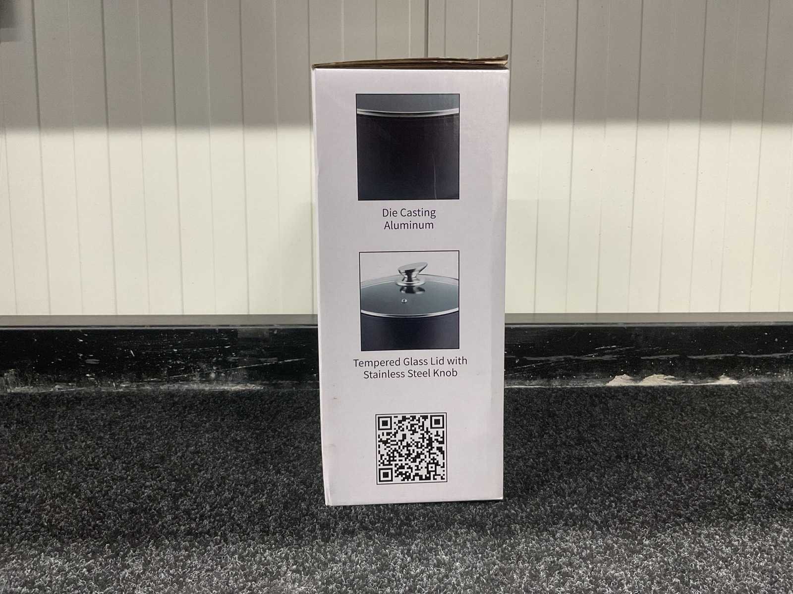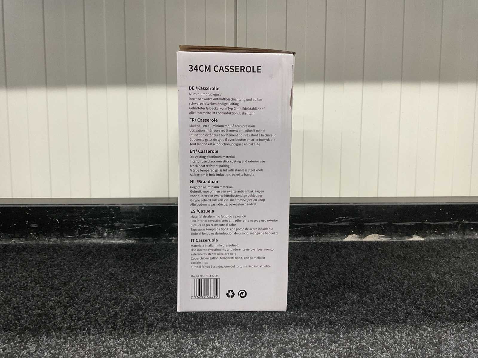 Voorzien van gegoten aluminium; zwarte anti-aanbaklaag; zwarte hittebestendige verf; glazen deksel met roestvrijstalen knop; bakeliet handvat; gat inductie bodem; nieuw in doos Merk: Swiss Pro + Model: SP-CAS34 Kleur: Zwart Gewicht: 3100g Lengte: 37cm Breedte: 16cm Hoogte: 37cm