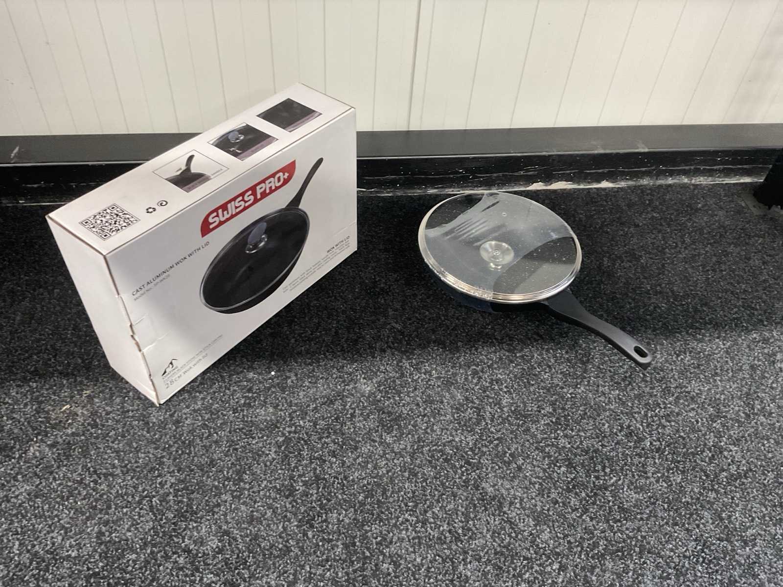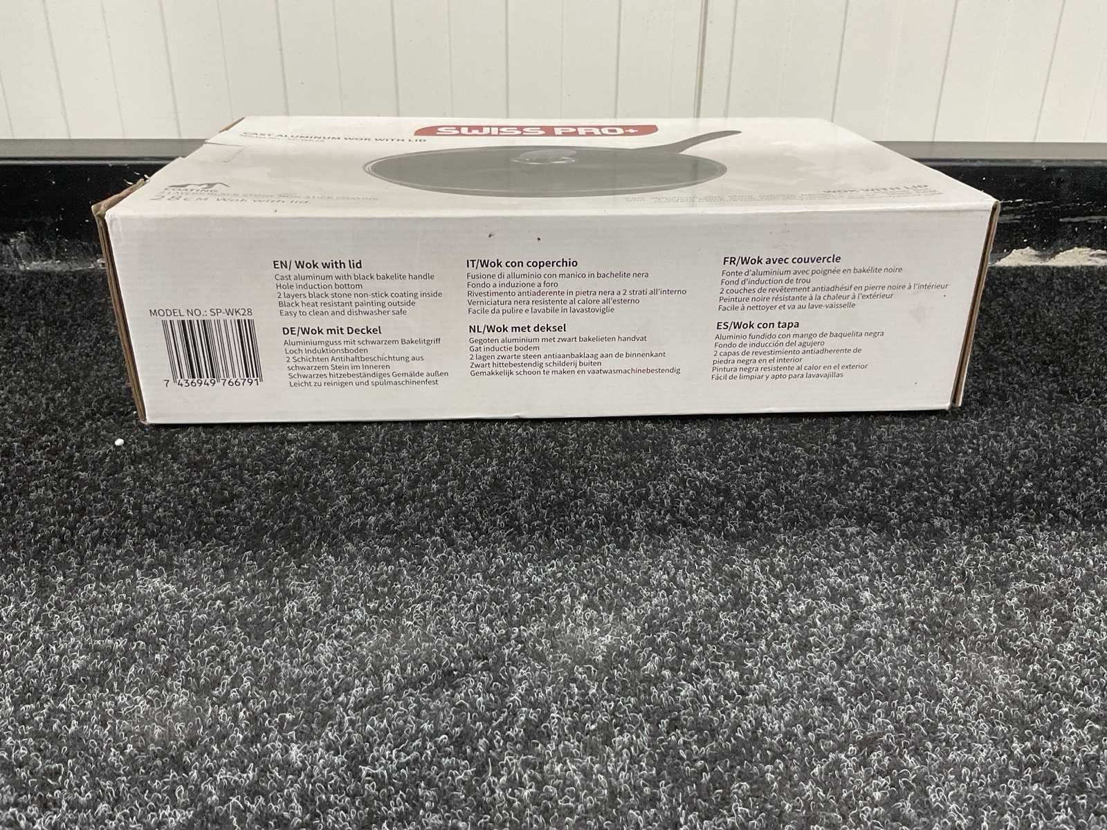 Voorzien van gegoten aluminium; cool touch handgreep; inductiebodem met gatenstructuur; ant-aanbaaklaag; glazen deksel; ongebruikt in doos Merk: Swiss Pro + Model: SP-WK28 Product type: Wok Kleur: Zwart Gewicht: 1800g Lengte: 50cm Breedte: 31cm Hoogte: 10cm