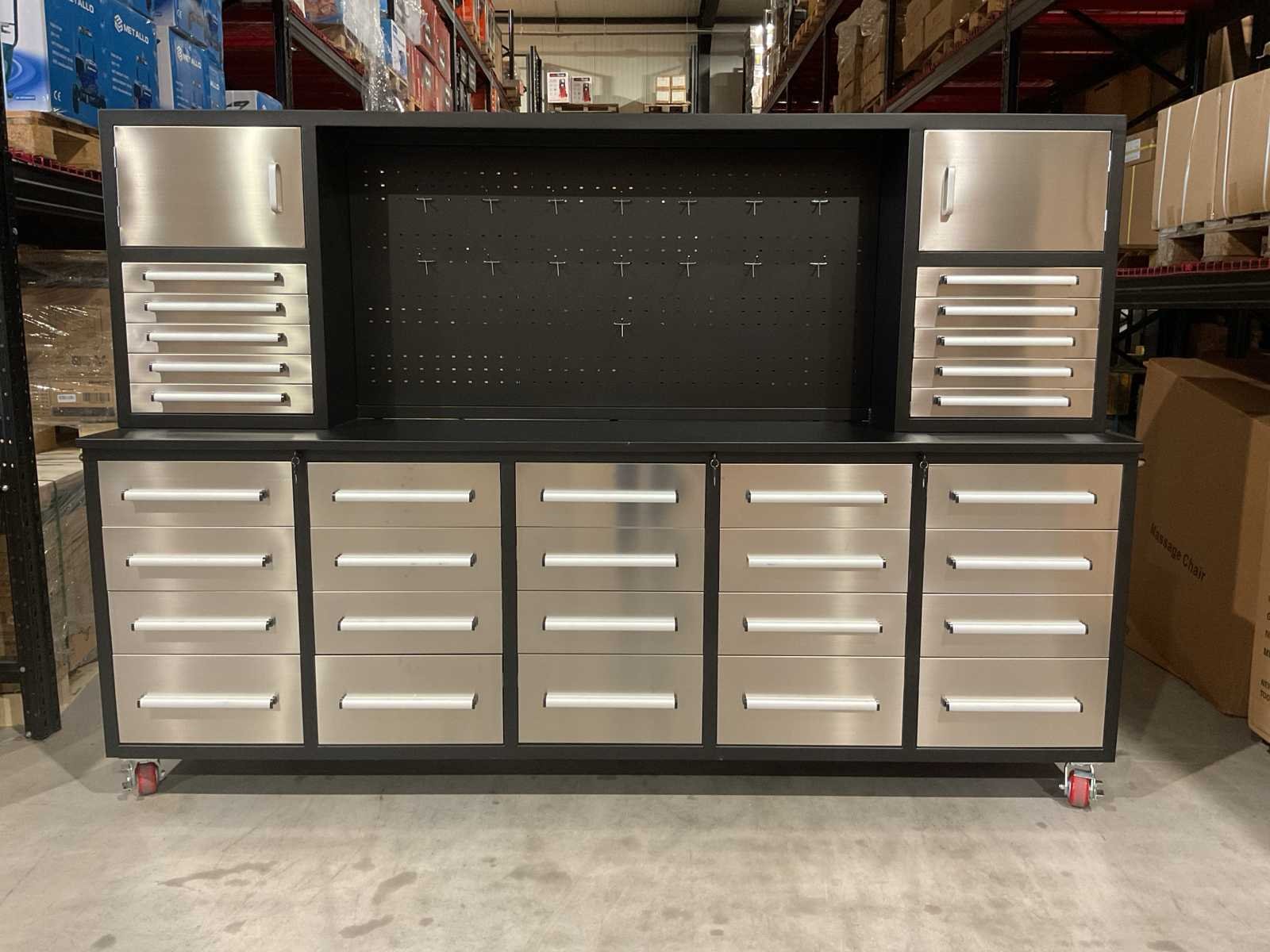 Voorzien van Gepoedercoat staal; 30 lades; 2 kasten; Verrijdbaar; Sleutels voor afsluiten; Ongebruikt Merk: Rhino-Cross-Tools Type: H10FT-30D-2 01B Zwart/RVS Bouwjaar: 2025