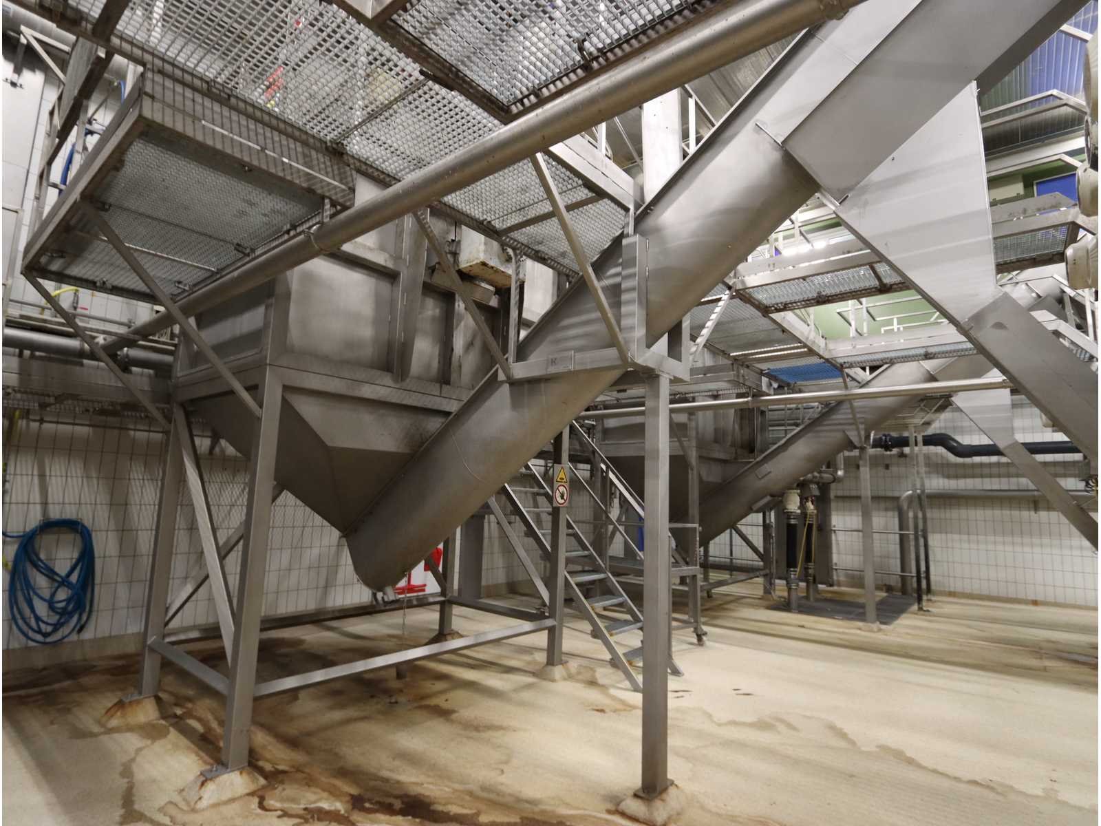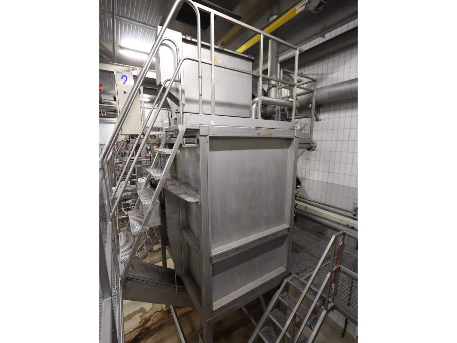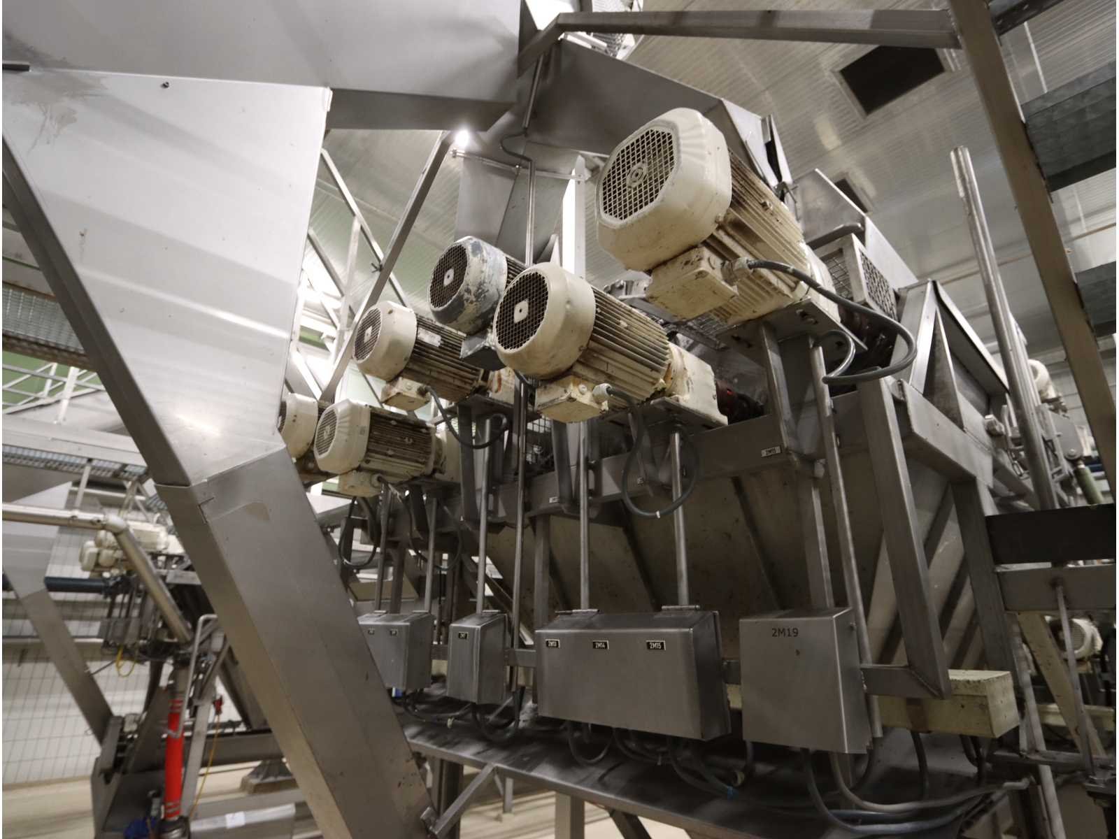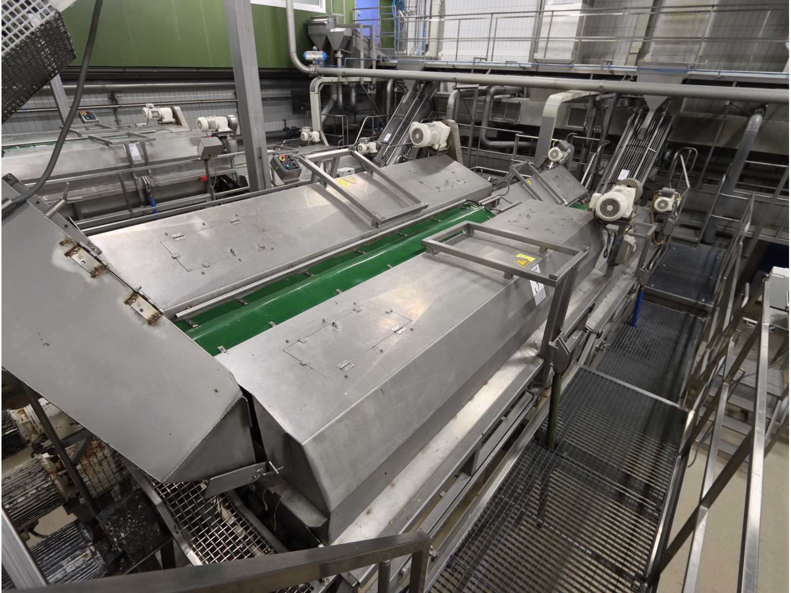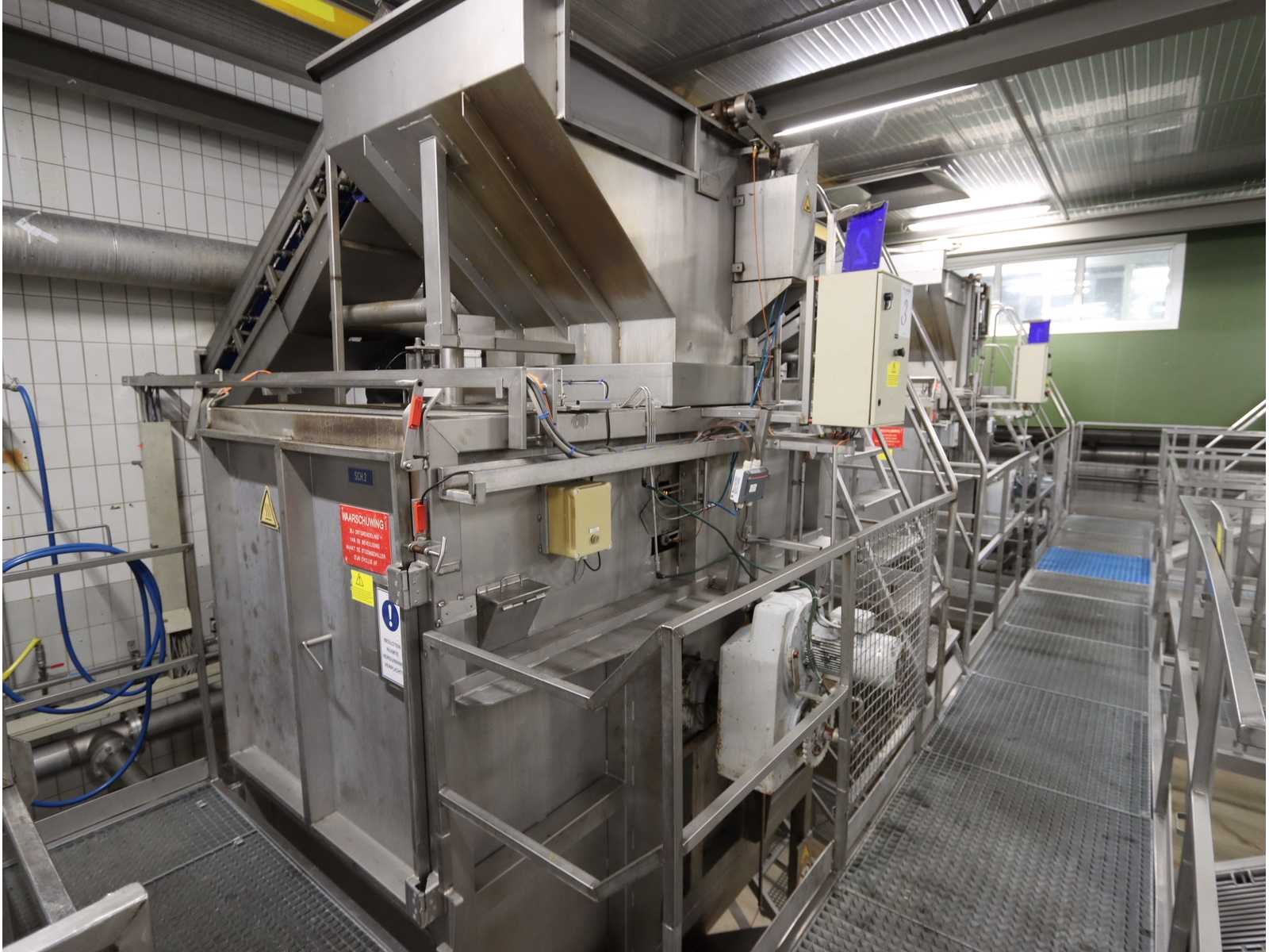 Bestaande uit: “Kiremko” stoomschiller voorzien van invoerbunker (afmeting circa 2400x3000x6000 mm), en onderlopende opvoer schroeftransporteur (lengte circa 6000 mm), “Agrico” 2-voudige ontveller en 2-voudige borstelmachine type AT-OBC-2500, werklengte 2500 mm, beide voorzien van schroeftransporteur, uitvoer schroeftransporteur (lengte 2500 mm) en opvang/filter bak met pomp (afmeting circa 1550x1070x1160 mm)(bordessen niet inbegrepen)