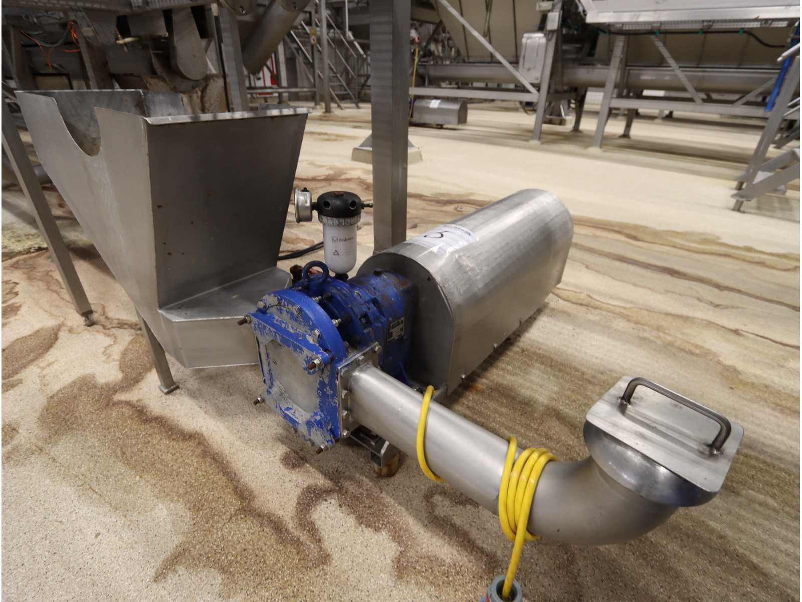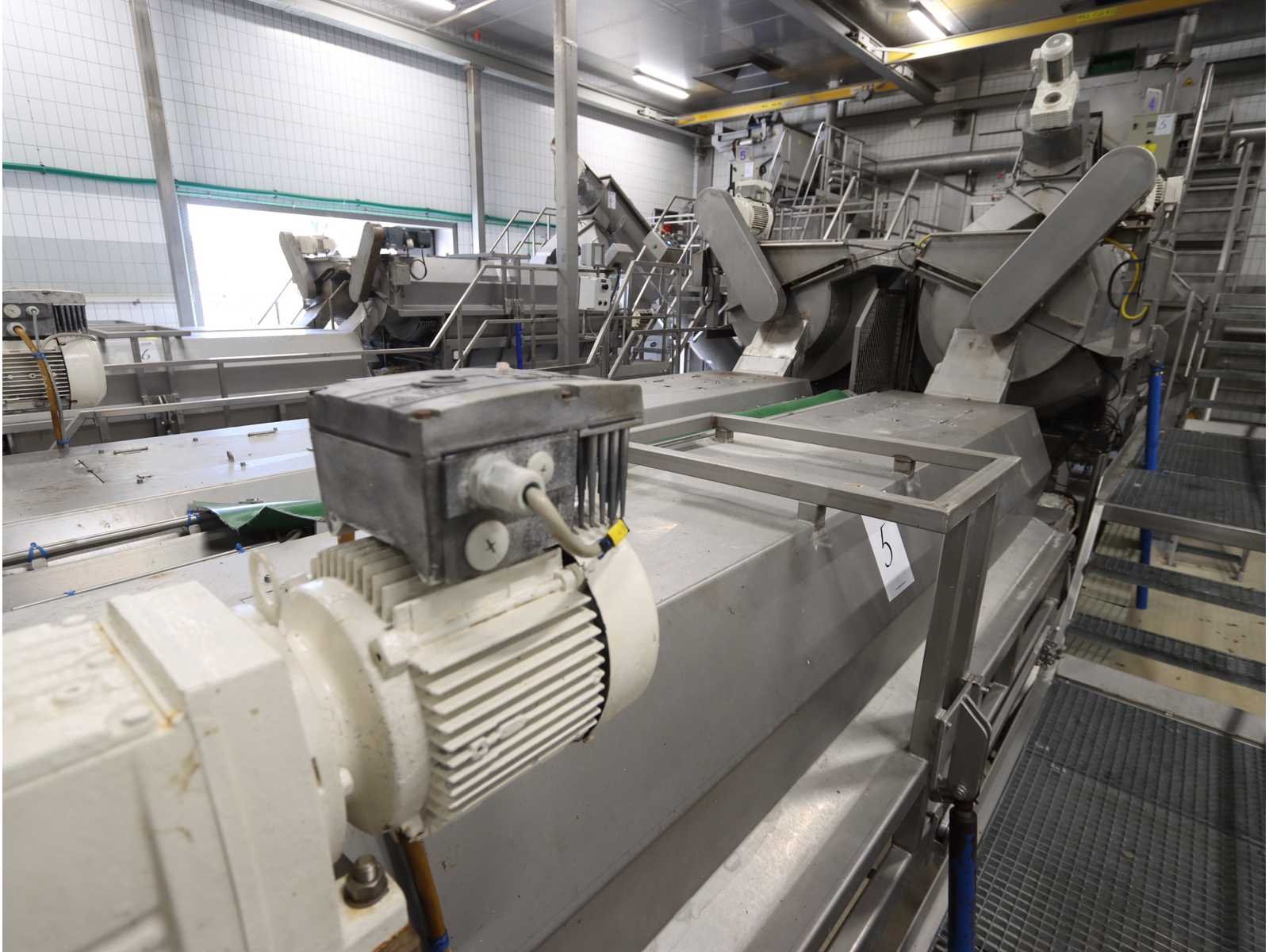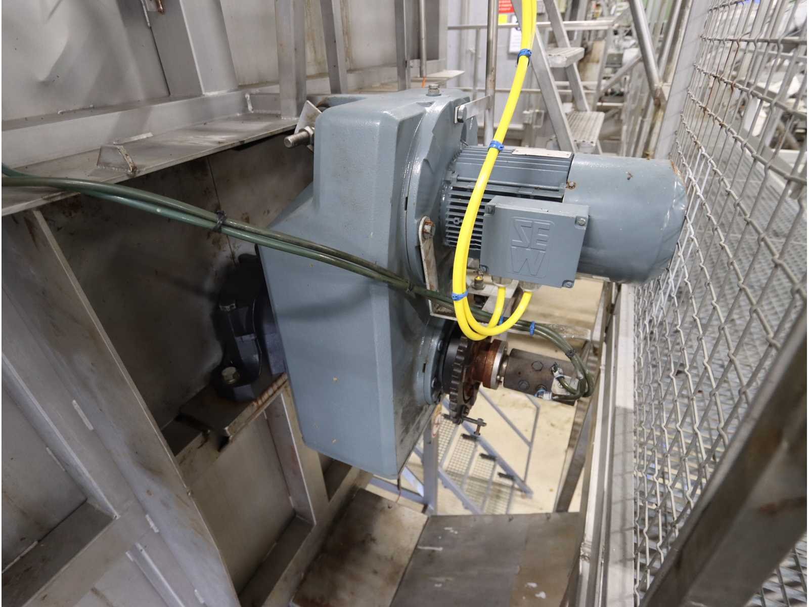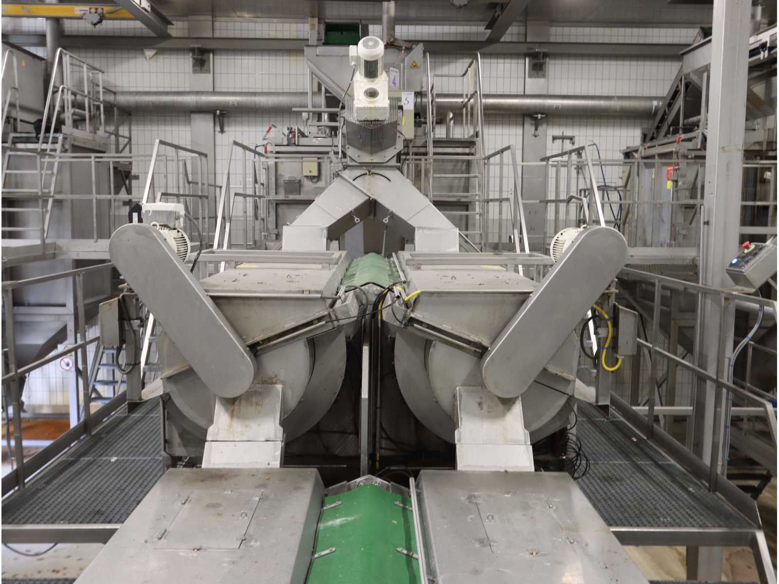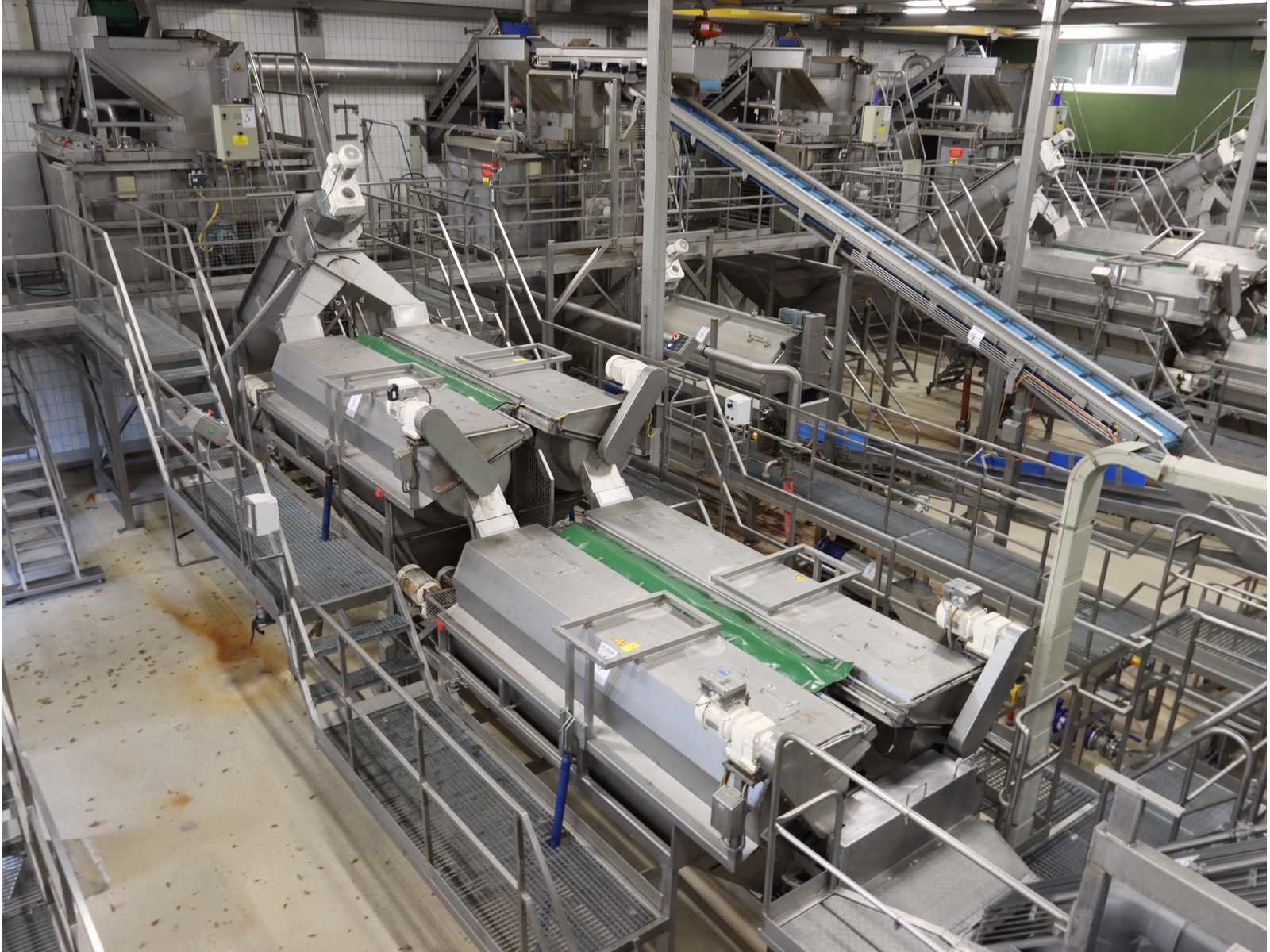 Bestaande uit: “Kiremko” stoomschiller voorzien van invoerbunker (afmeting circa 2400x3000x6000 mm), en onderlopende opvoer schroeftransporteur (lengte circa 6000 mm), “Agrico” 2-voudige ontveller en 2-voudige borstelmachine type AT-OBC-2500, werklengte 2500 mm, beide voorzien van schroeftransporteur, uitvoer schroeftransporteur (lengte 2500 mm) en opvang/filter bak met pomp (afmeting circa 1550x1070x1160 mm)(bordessen niet inbegrepen)