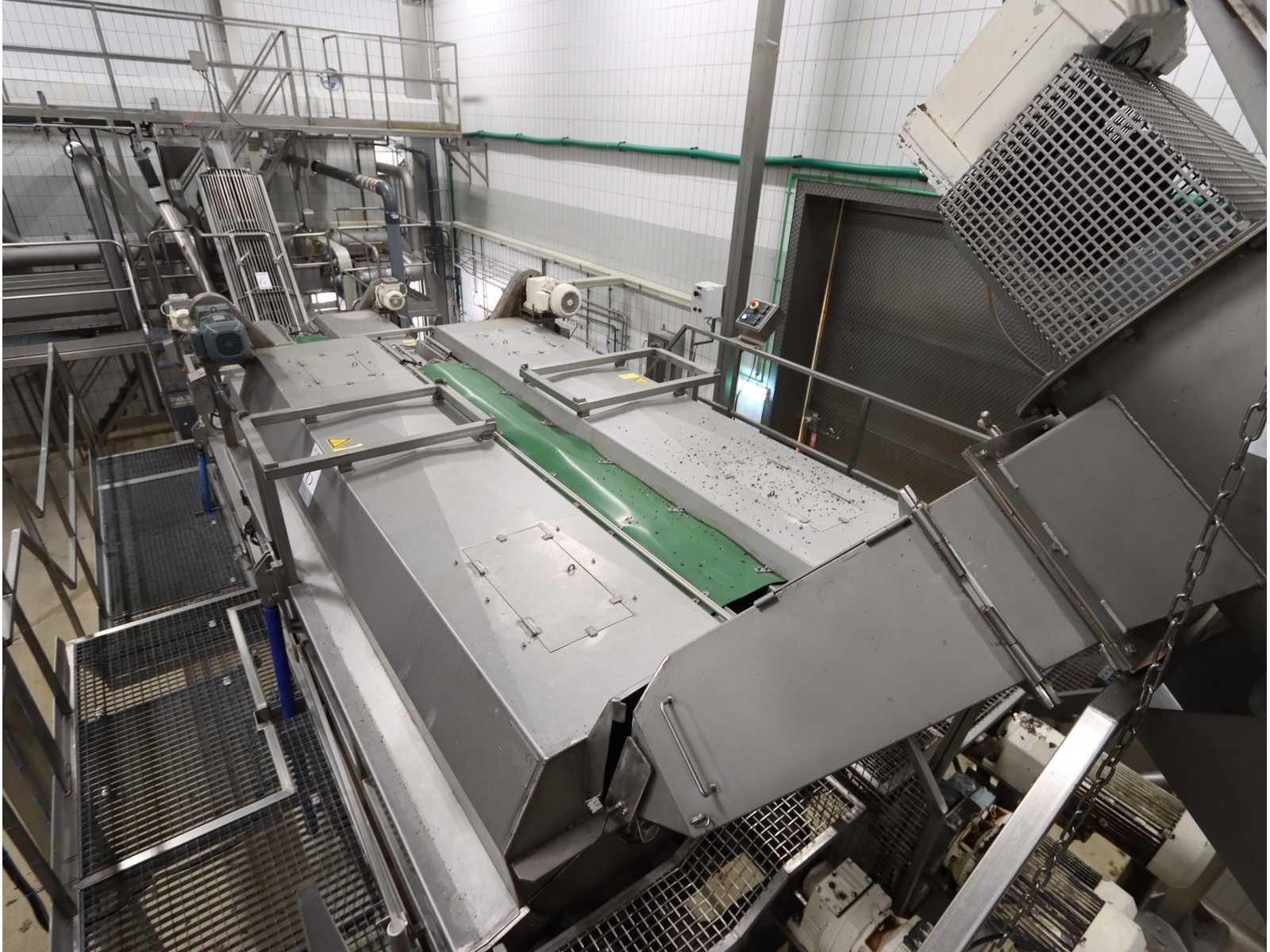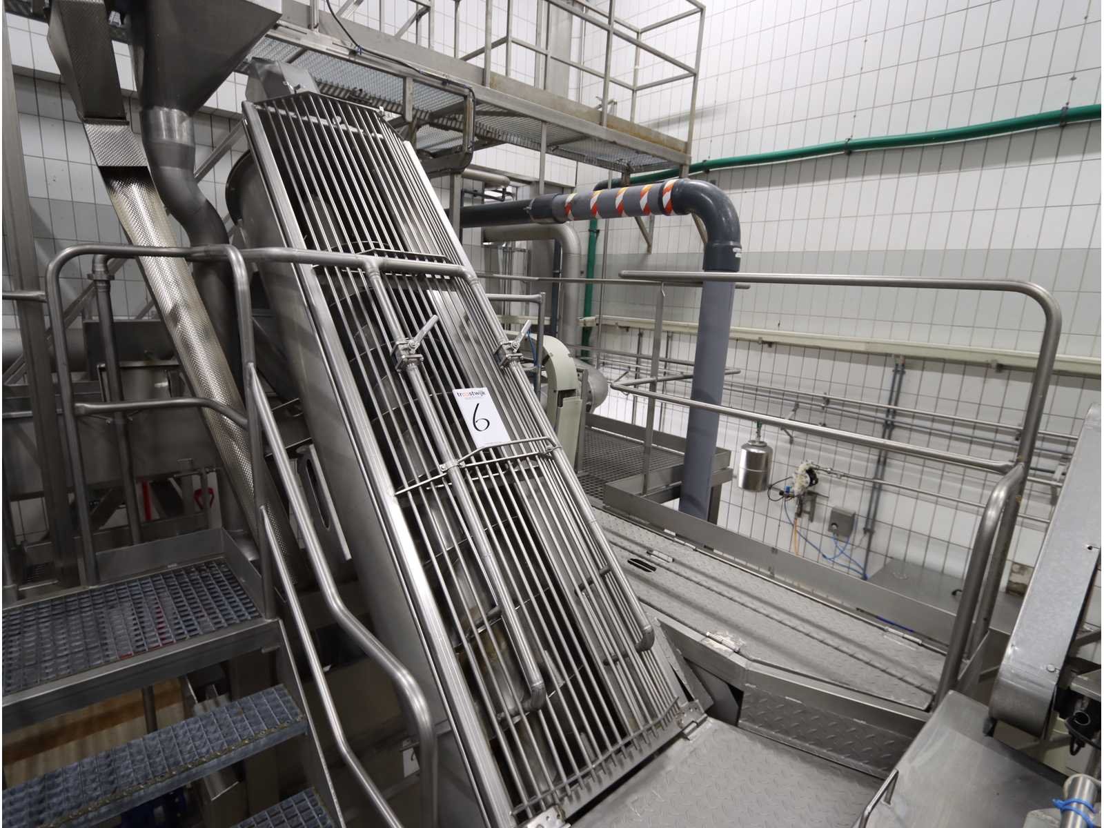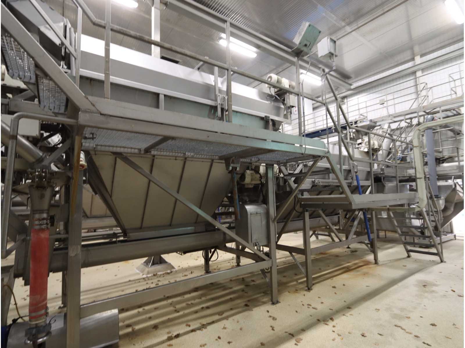 Bestaande uit: “Kiremko” stoomschiller voorzien van invoerbunker (afmeting circa 2400x3000x6000 mm), en onderlopende opvoer schroeftransporteur (lengte circa 6000 mm), “Agrico” 2-voudige ontveller en 2-voudige borstelmachine type AT-OBC-2500, werklengte 2500 mm, beide voorzien van schroeftransporteur, uitvoer schroeftransporteur (lengte 2500 mm) en opvang/filter bak met pomp (afmeting circa 1550x1070x1160 mm)(bordessen niet inbegrepen)