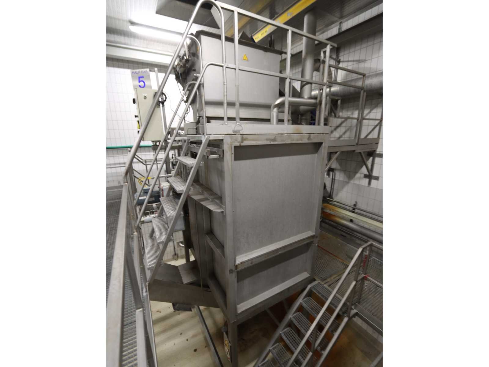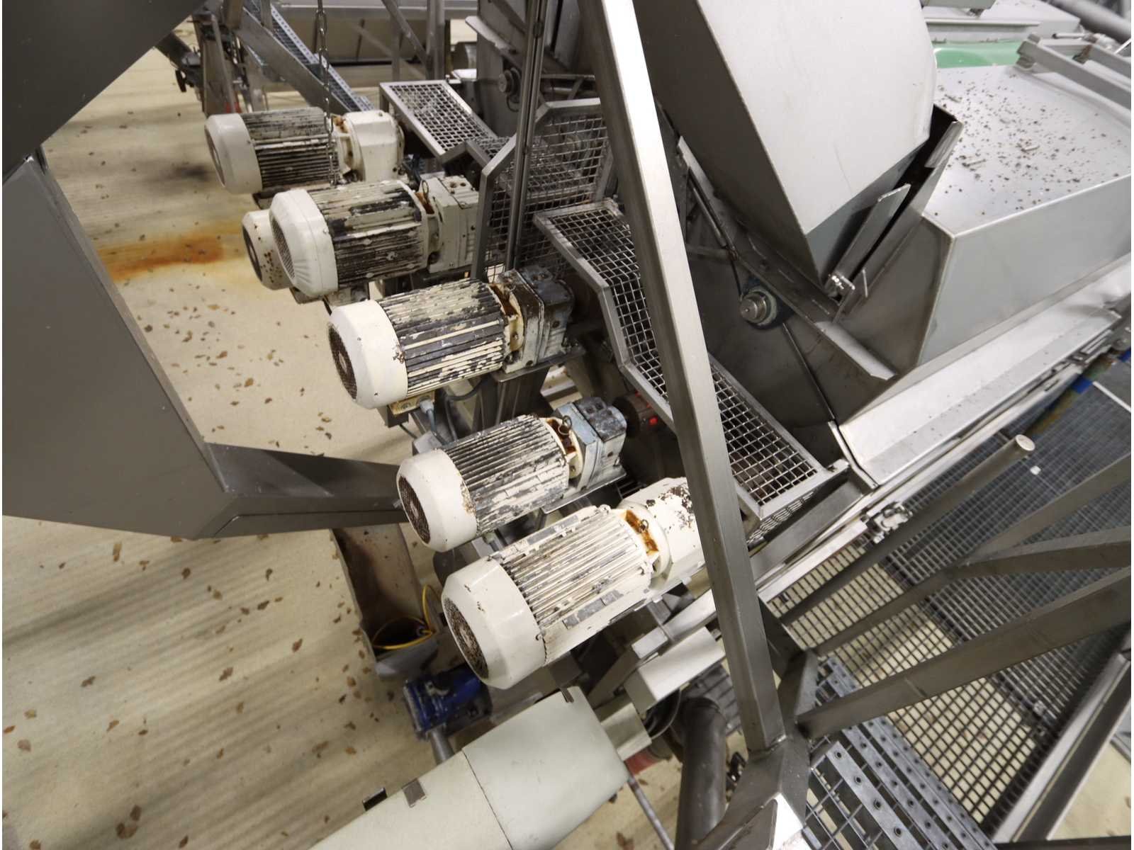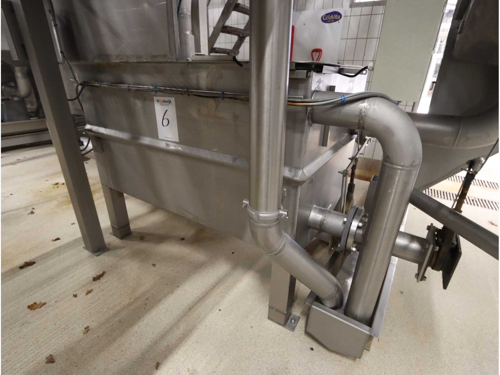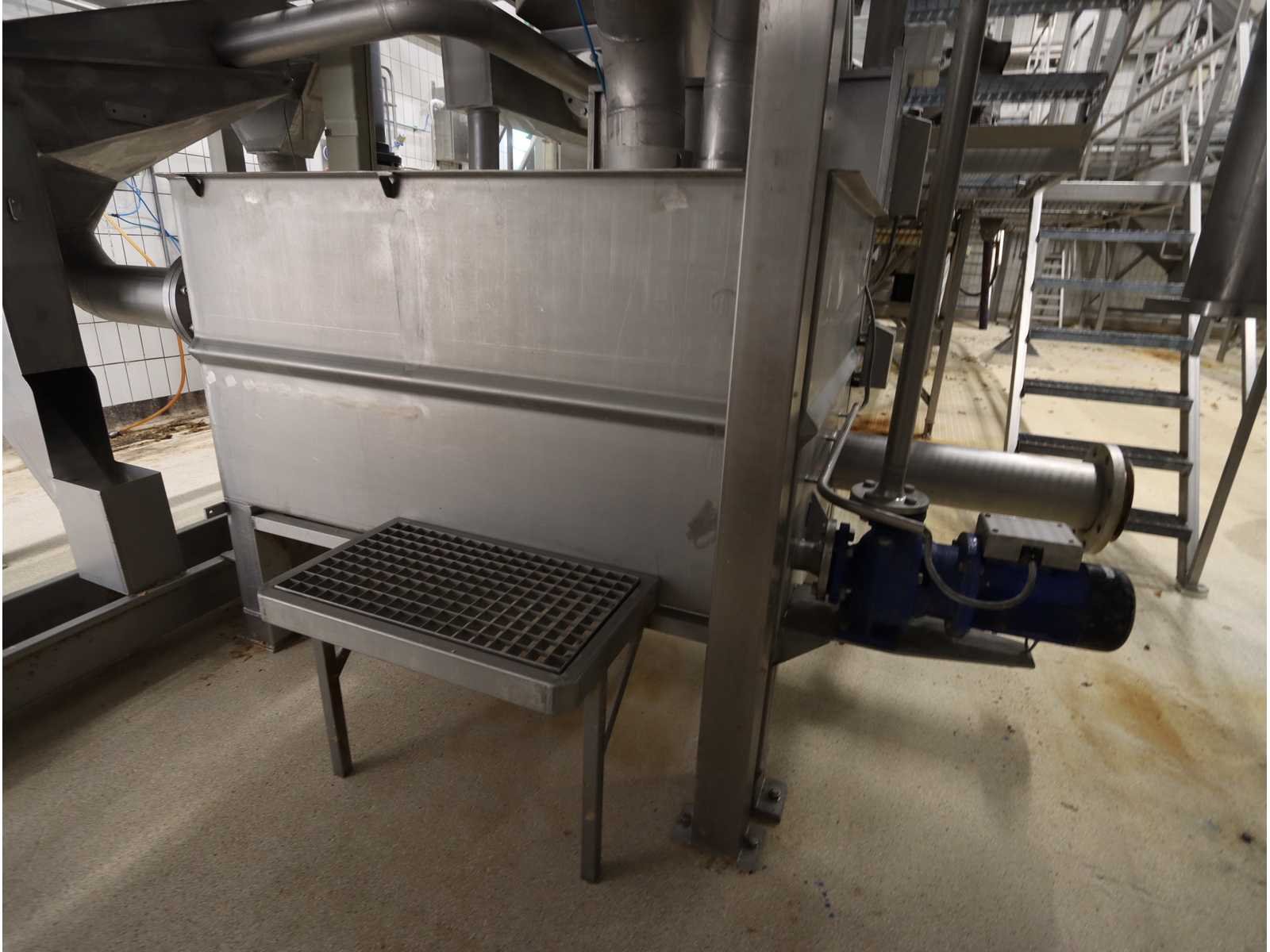 Bestaande uit: “Kiremko” stoomschiller voorzien van invoerbunker (afmeting circa 2400x3000x6000 mm), en onderlopende opvoer schroeftransporteur (lengte circa 6000 mm), “Agrico” 2-voudige ontveller en 2-voudige borstelmachine type AT-OBC-2500, werklengte 2500 mm, beide voorzien van schroeftransporteur, uitvoer schroeftransporteur (lengte 2500 mm) en opvang/filter bak met pomp (afmeting circa 1550x1070x1160 mm)(bordessen niet inbegrepen)