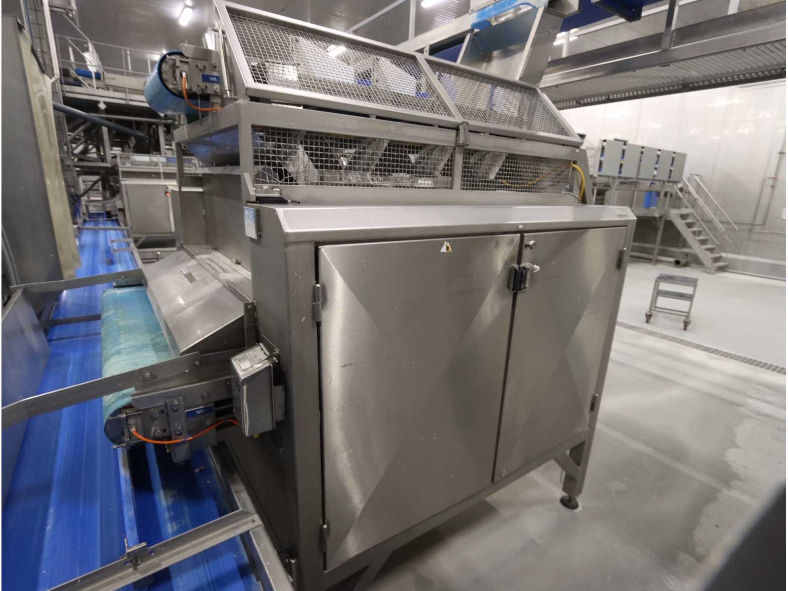 Werkbreedte 1200 mm, voorzien van opgebouwde invoer transportband, onderlopende uitvoer transportband, en besturingskast met regelbare snijrollen snelheid Merk: Finis Type: F.R.P.S.10 Bouwjaar: 2002 Aansluiting: 400V Totale afmeting L: 2900mm Totale afmeting Breedte: 1950mm Totale afmeting Hoogte: 2500mm