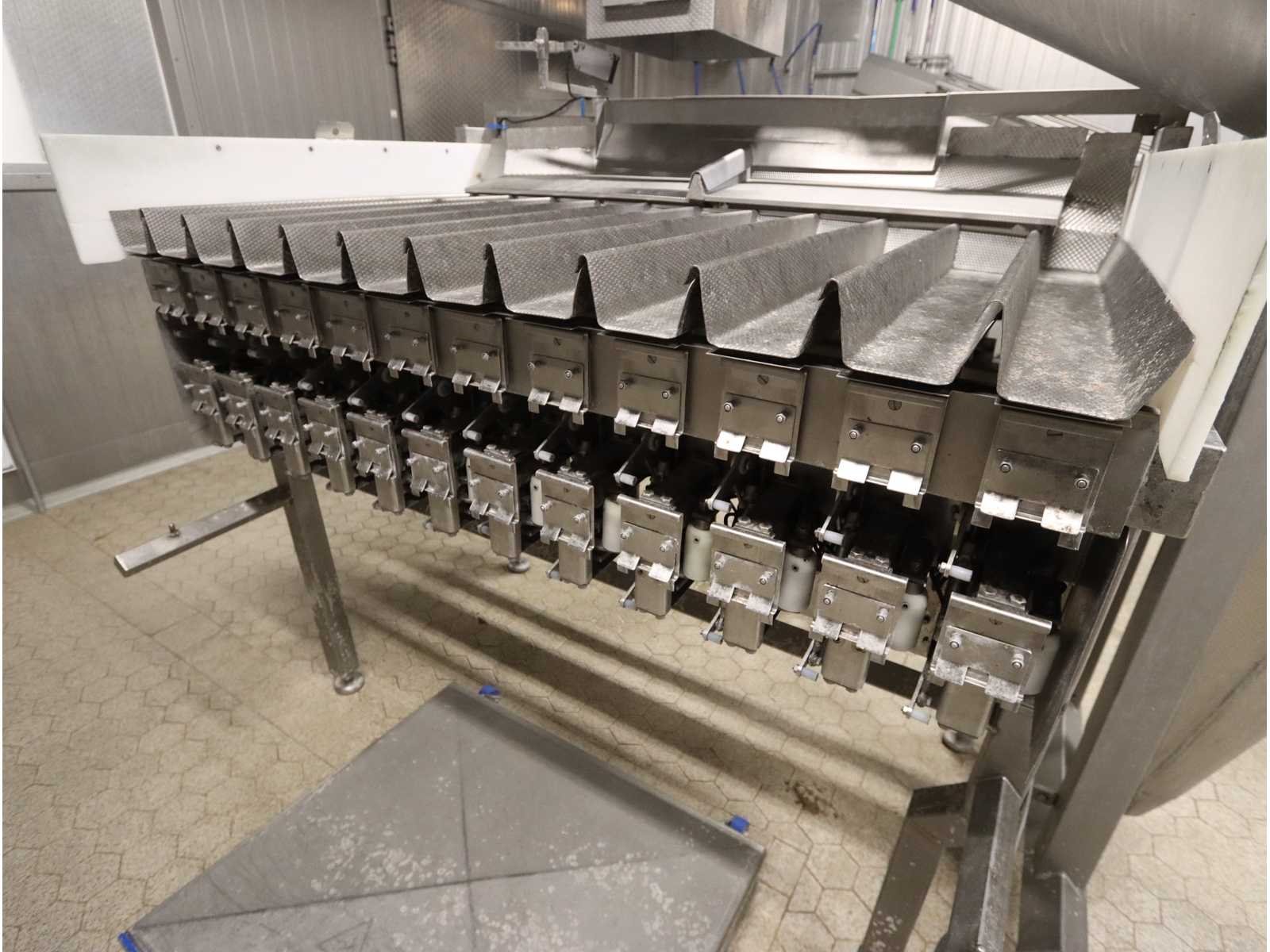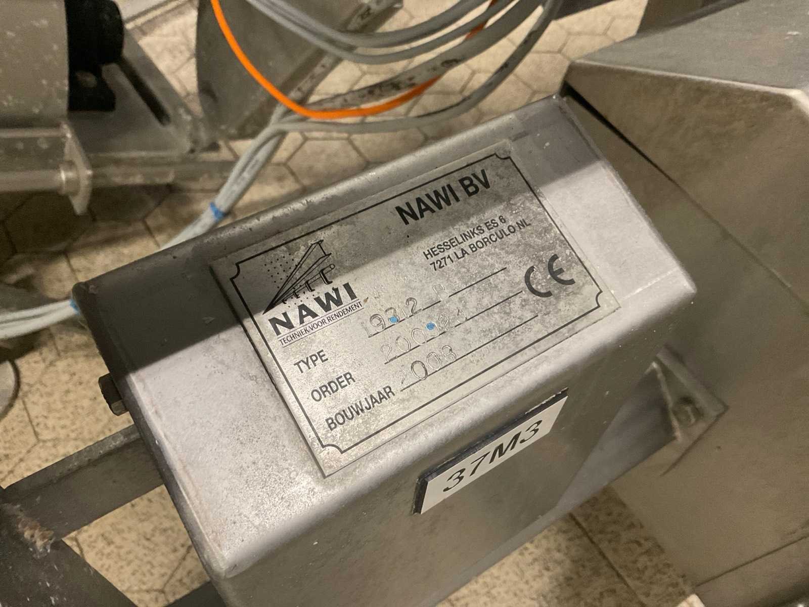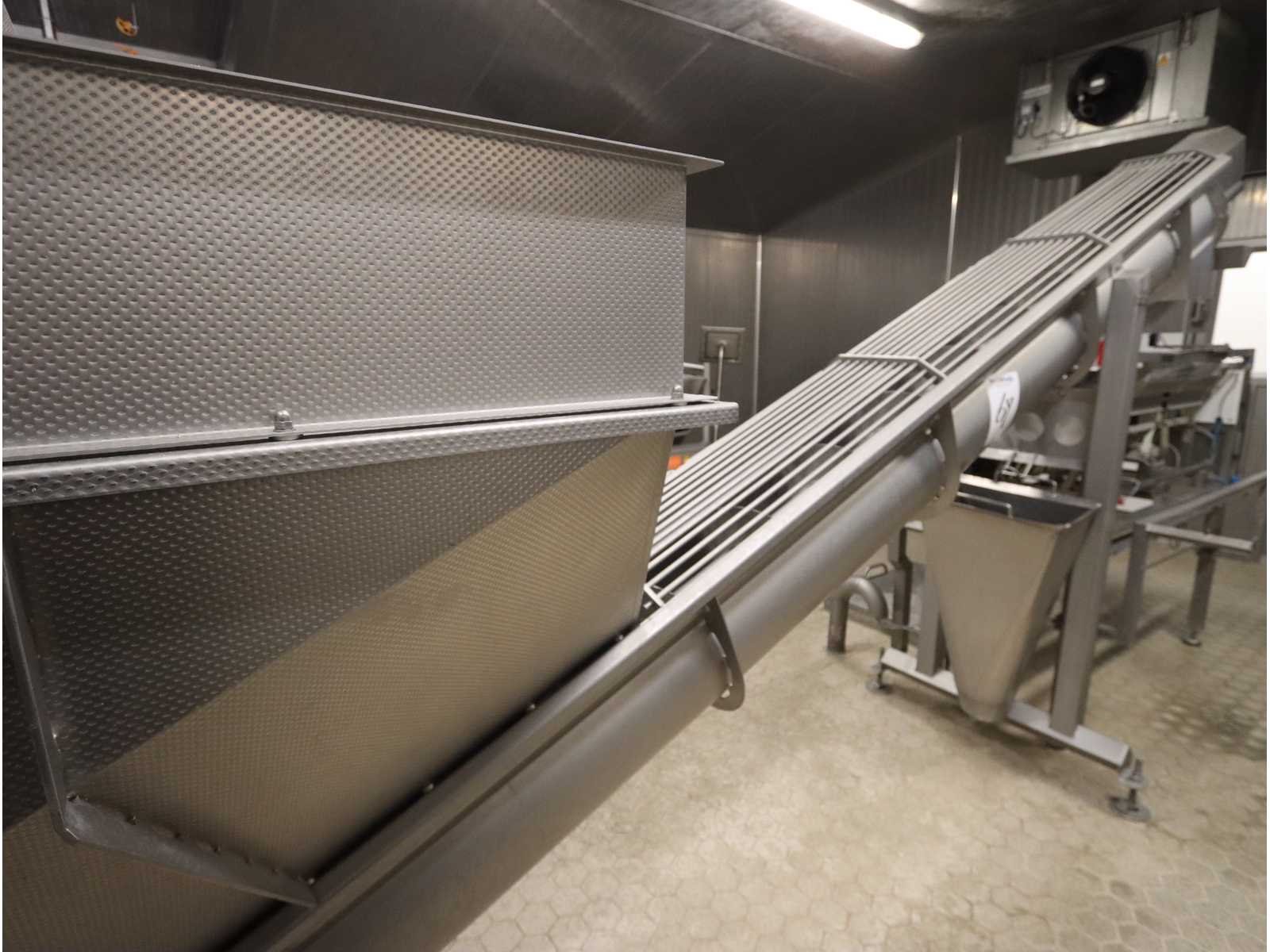 Bestaande uit: bakken kantelaar met invoer ketting transportbaan, spoorbreedte 850 mm, lengte 2000 mm, inclusief opvoer transportschroef met stortbunker, schroef Ø 400 mm, schroef lengte 4500 mm, uitvoer hoogte 1500 mm, invoer opening bunker circa 1100x1300 mm, “Newtec” weger, type 2012, 12 lijns, maximaal weegbereik 2000 gram, vloer doorvoer niet inbegrepen Merk: Nawi/Newtec