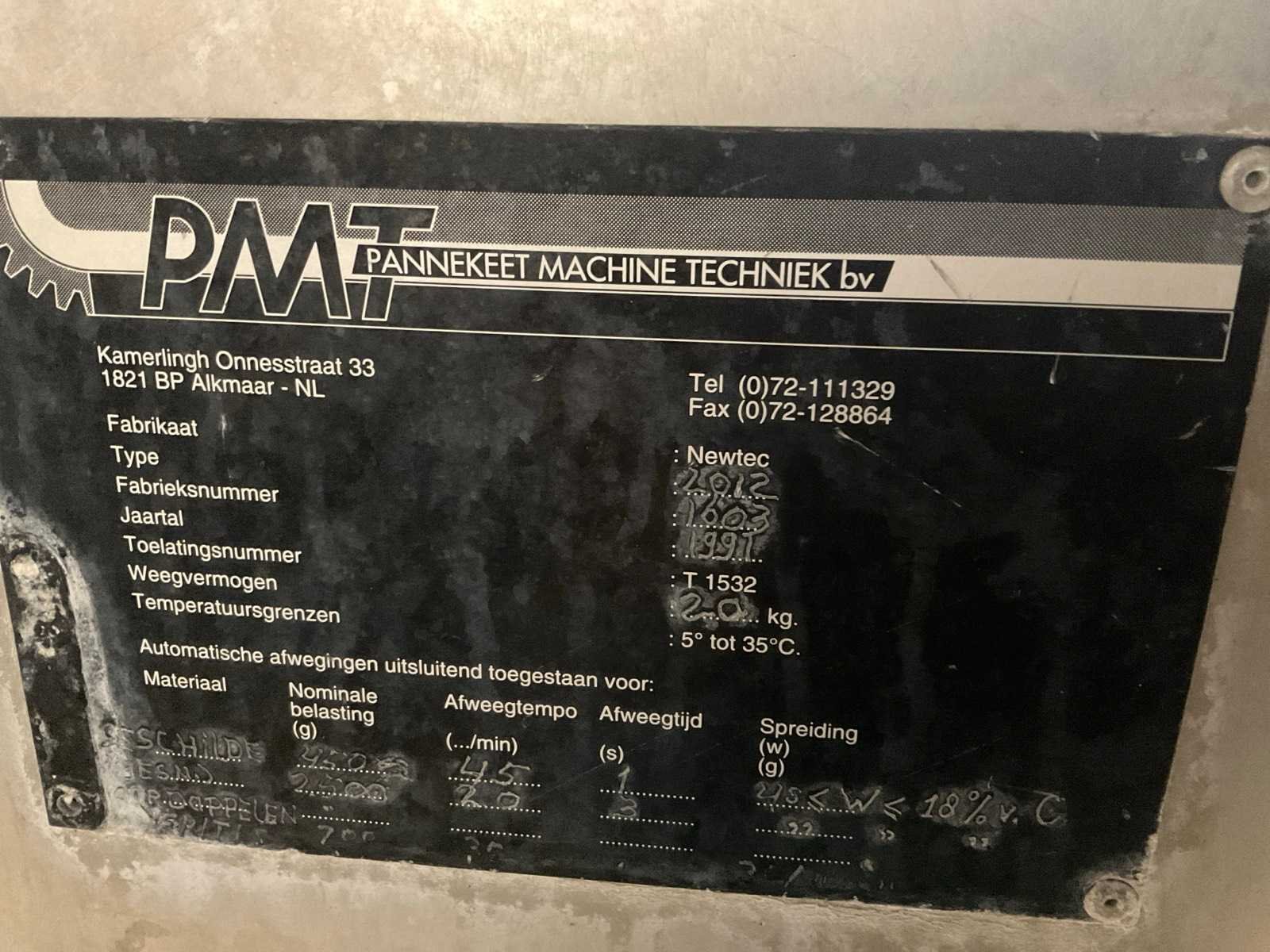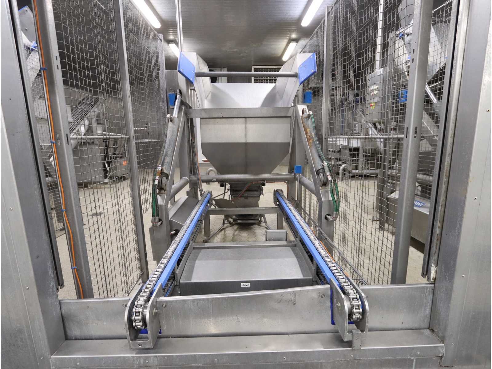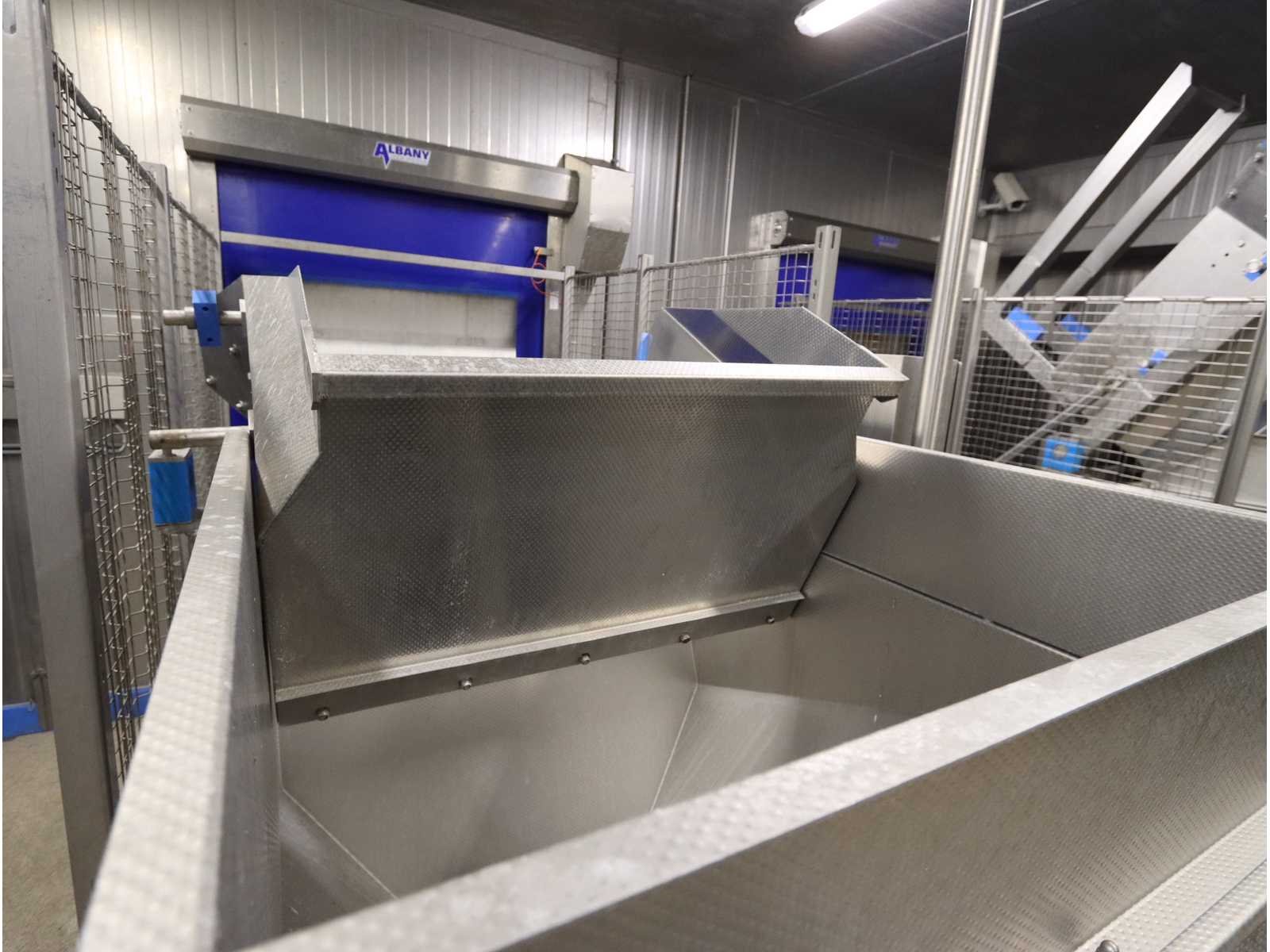 Bestaande uit: bakken kantelaar met invoer ketting transportbaan, spoorbreedte 850 mm, lengte 2000 mm, inclusief opvoer transportschroef met stortbunker, schroef Ø 400 mm, schroef lengte 4500 mm, uitvoer hoogte 1500 mm, invoer opening bunker circa 1100x1300 mm, “Newtec” weger, type 2012, 12 lijns, maximaal weegbereik 2000 gram, vloer doorvoer niet inbegrepen Merk: Nawi/Newtec