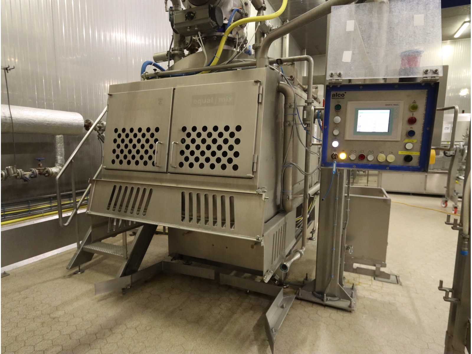 Mengkuip afmeting 1700x1050x900 mm, voorzien van top invoer met pneumatische klep, onder uitvoer met pneumatische stortkleppen, digitale uitlezing, normwagen lift met weeg unit, Merk: Alco Type: Equal mix Aansluiting: 400V Totale afmeting L: 3500mm Totale afmeting Breedte: 1550mm Totale afmeting Hoogte: 3000mm