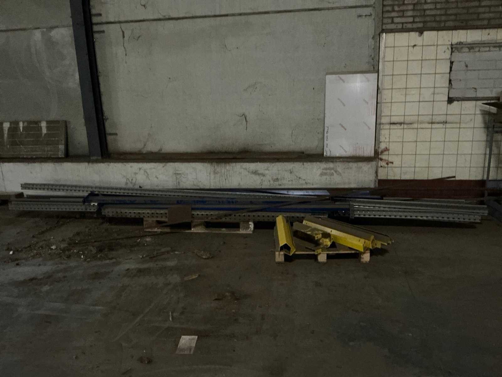 Waaronder 6 staanders hoogte 4100 mm, breedte 850 mm, 20 liggers 3300, liggers en staanders in diverse lengtes en breedtes, aanrijbeveileging,op 3 plekken