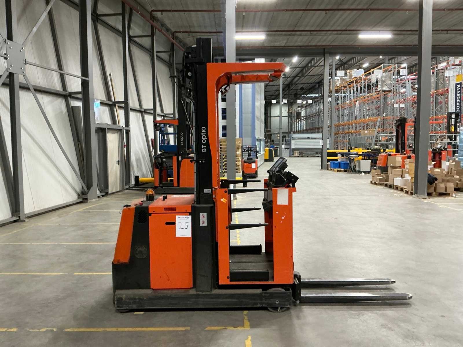 Voorzien van: Honeywell barcode scanner, display met hoogtemeter. Inclusief extra accu welke niet is gecontroleerd op werking. Merk: Toyota Type: BT Optio OME100M Bouwjaar: 2021 Serienummer: 6848500 Accu lader: true Hefvermogen: 850kg Hefhoogte: 4750mm Minimale doorrijhoogte: 2650mm Totale afmeting L: 3000mm Totale afmeting Breedte: 1000mm Totale afmeting Hoogte: 2650mm