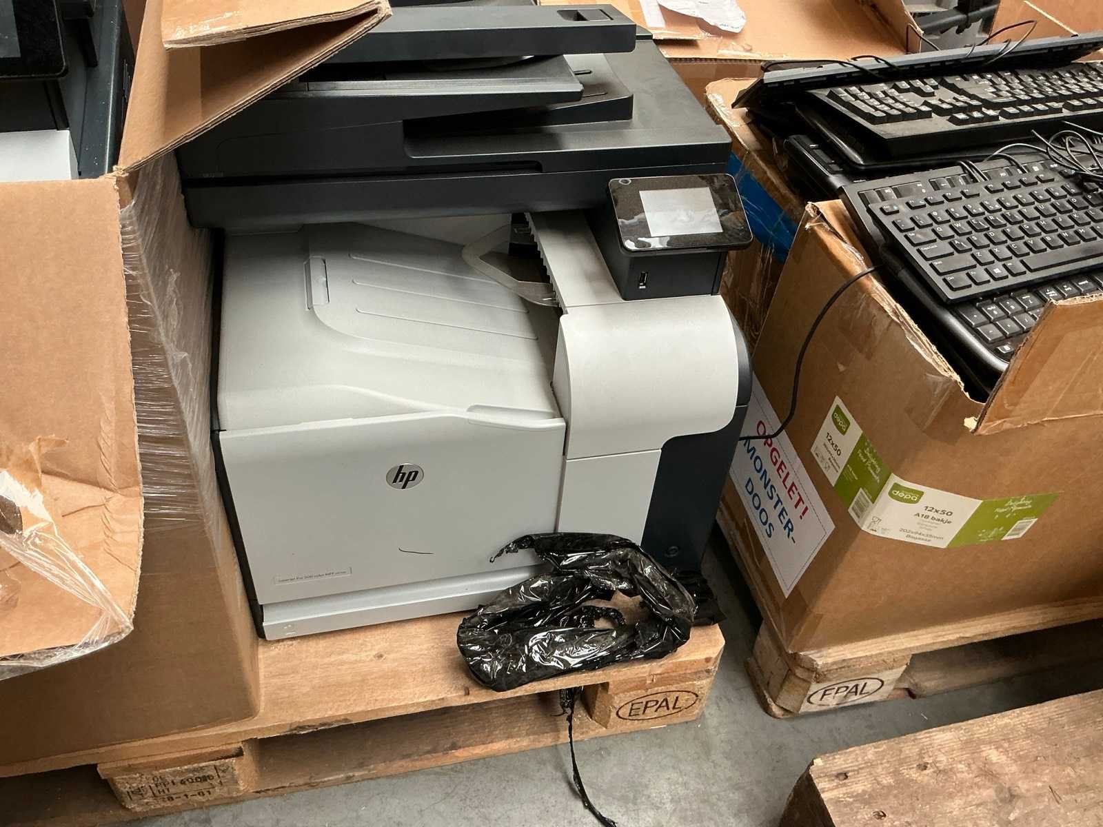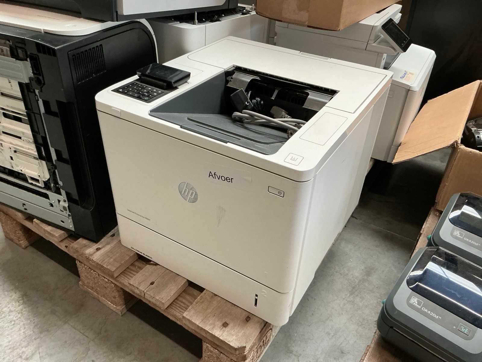 Waaronder: HP LaserJet Pro 500 color, M402dne, Enterprise M607. Diverse papierlades. In en op 3 pallets.