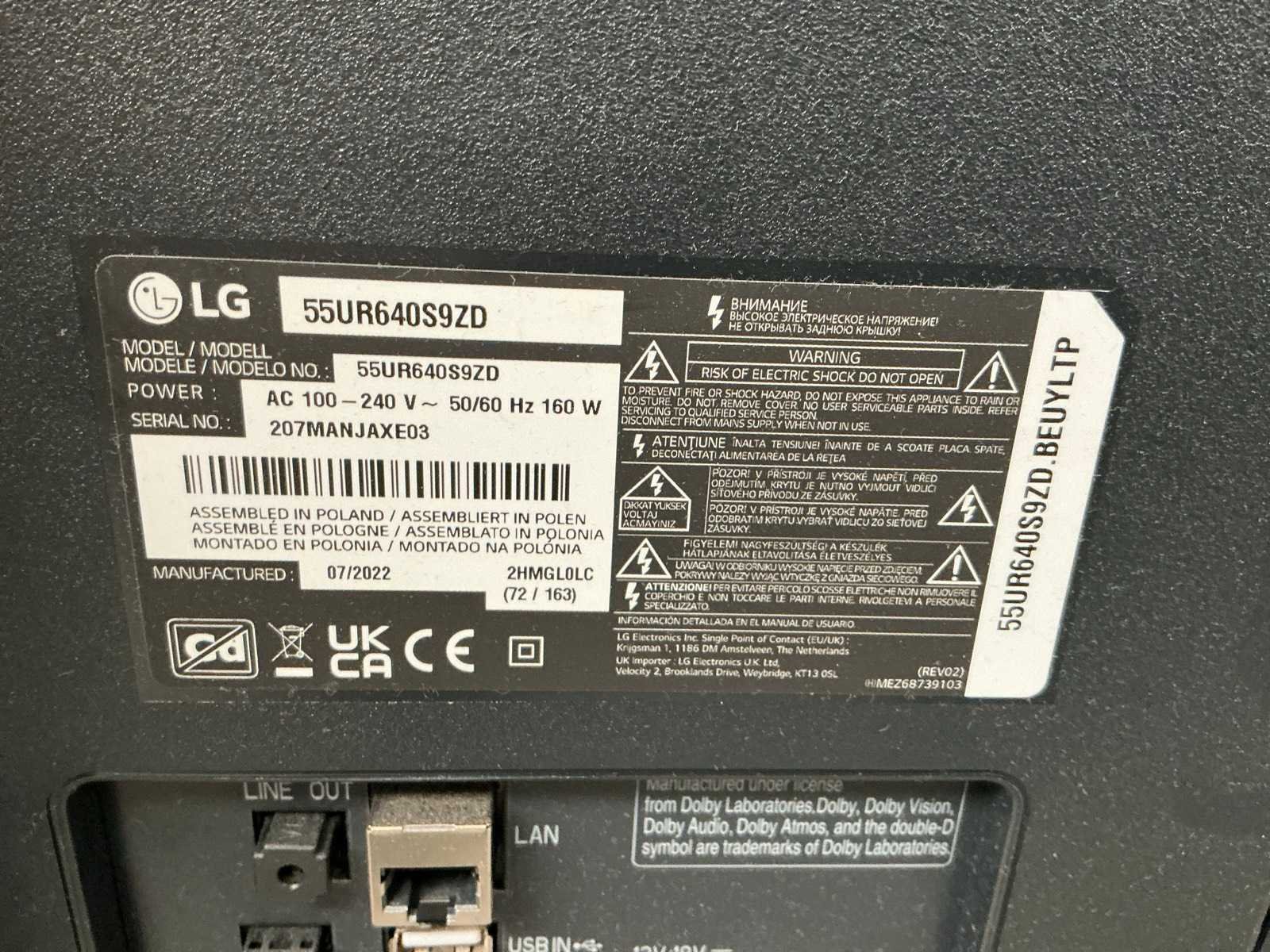 Zonder afstandsbediening en voedingskabel. Merk: LG Model: 55UR640S9ZD Beelddiagonaal: 55''
