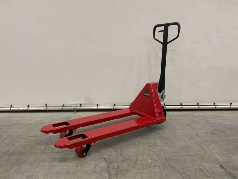 Ongebruikt in verpakking; met enkele voorwielen; 3595; Hefvermogen: 2500kg Hefhoogte: 200mm Lepellengte: 1150mm Totale afmeting L: 1500mm Totale afmeting Breedte: 540mm Totale afmeting Hoogte: 1250mm