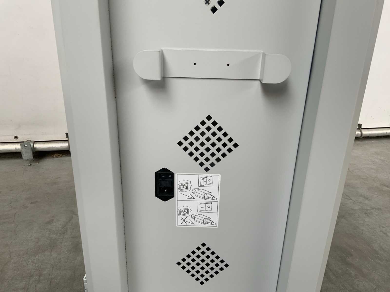 Opberg/oplaadstation voor tablets en laptops, Voorzien van zwenkwielen, 230v aansluiting, 32 vakken, betreft een ongebruikt product
