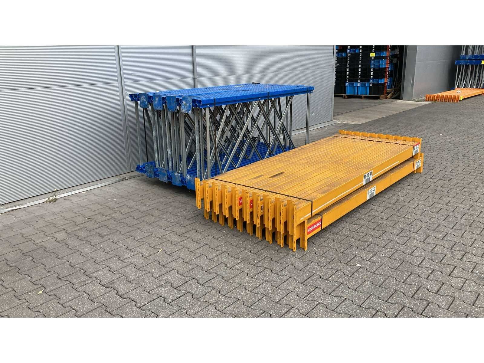 LET OP; MOGELIJK ZONDER VOETJES; 17x staander 2000x900mm; 32x ligger 2700x125x45mm; gebruikt; gebundeld; 14 secties aan een gesloten; 7757*17 / 7430*32 Merk: Jungheinrich Aantal secties: 16 Sectie afm. b: 2700mm Sectie diepte: 900mm Sectie afm. h: 2000mm