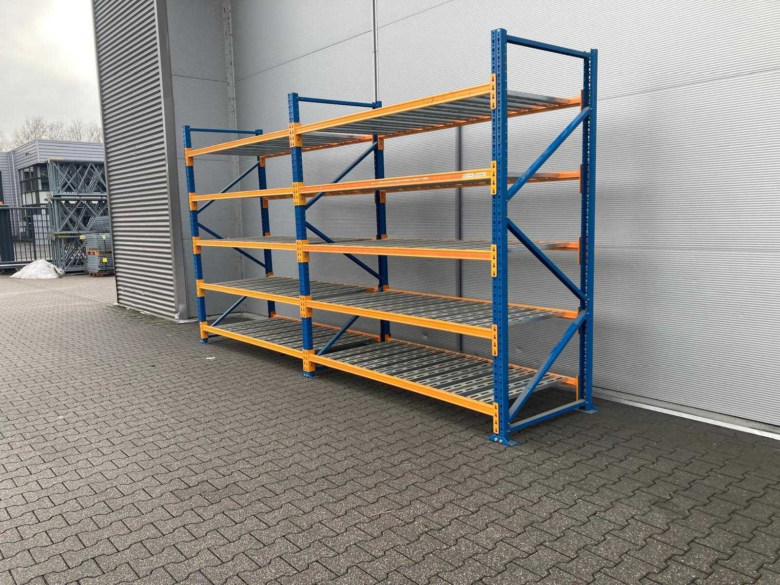 Light duty stelling; 3x staander 2500x980x800mm; 20x ligger 2200x600x35mm; gebundeld; gebruikt; 8013*3 / 8014*20 / 8185*10 Merk: Nedcon Aantal secties: 2 Sectie afm. b: 2200mm Sectie diepte: 980mm Sectie afm. h: 2500mm Aantal staanders: 3 Aantal liggers: 20