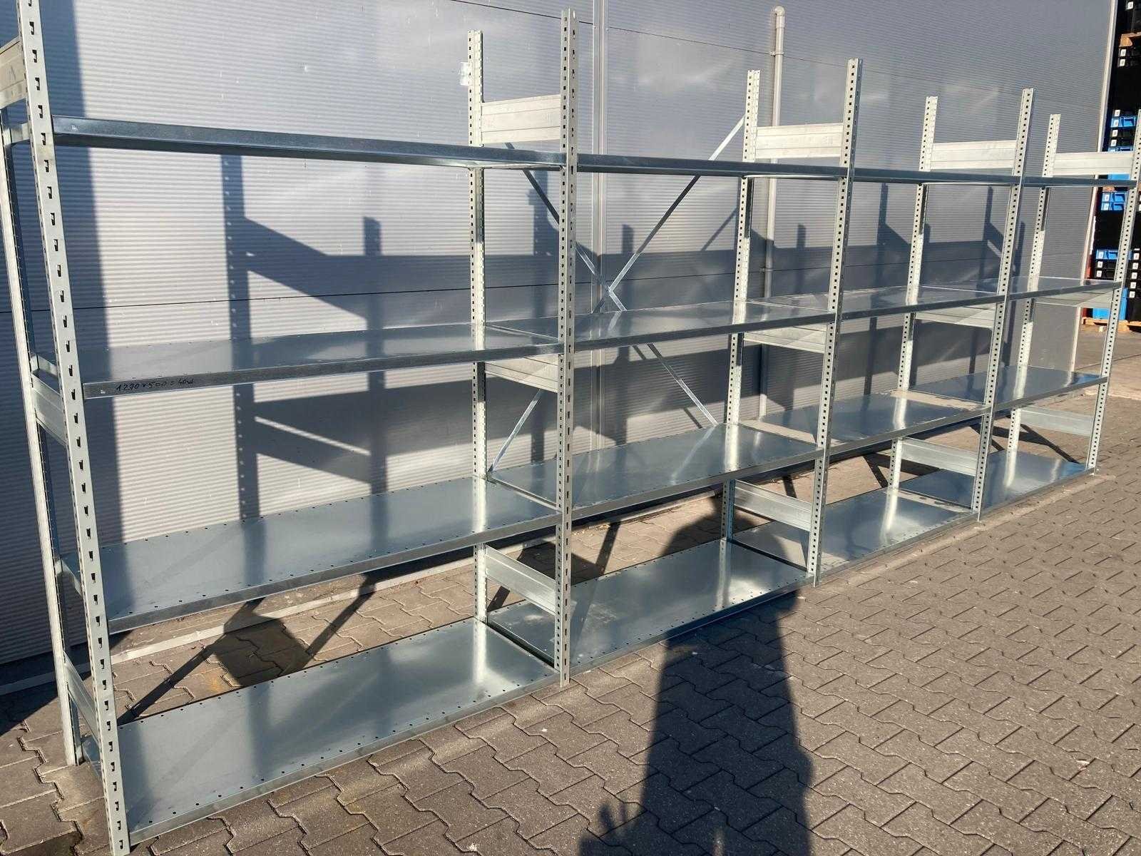 Ongebruikte Stow legbordstelling; wordt netjes gebundeld en transport klaar geleverd; zonder schoorset; Merk: Stow Type: ongebruikt Aantal secties: 4 Sectie afm. b: 965mm Sectie diepte: 500mm Sectie afm. h: 2250mm Aantal staanders: 5 Aantal legborden: 25