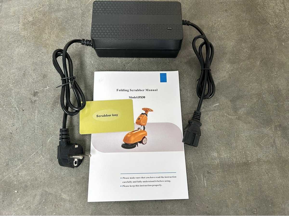 Disk brush 350mm; squeegee width 450mm; clear watertank 20L; Recovery 25L; work capacity 1350m/h; Voltage 24V; Power 900W; brush disk motor 400W; suction motor 500W; batterij monitor; Charger; manual; key-card; Merk: RTE Type: FS30 Bouwjaar: 2025 Werkbreedte: 350mm Elektrisch: true Aansluiting: 230V Accu lader: true Oplaadbaar: true Eigen gewicht: 70kg Totale afmeting L: 740mm Totale afmeting Breedte: 400mm Totale afmeting Hoogte: 1040mm