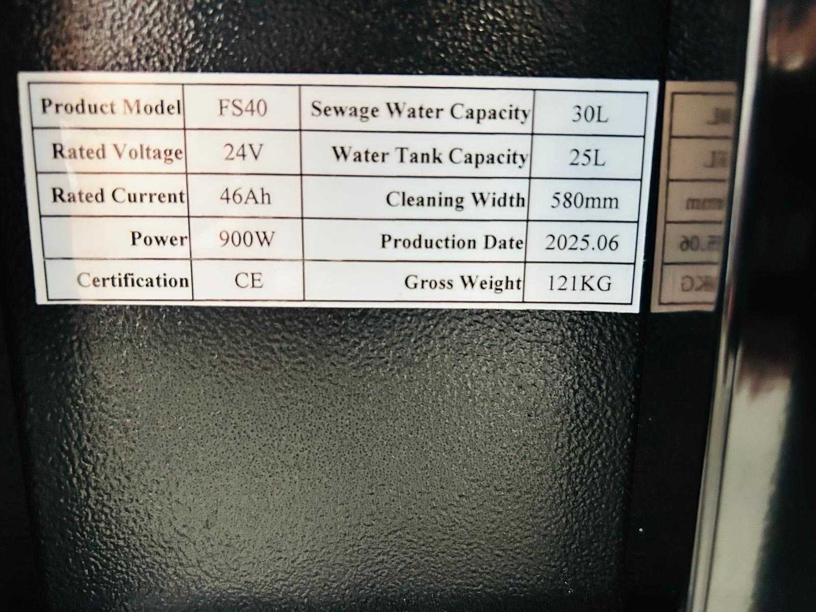Disk brush 400mm; squeegee width 580mm; clear watertank 25L; Recovery 30L; work capacity 1500m/h; Voltage 12V; Battery 40Ah*2*12V; Power 900W; brush disk motor 400W; suction motor 500W; 2000RPM; batterij monitor; build-in Charger; manual; Merk: RTE Type: FS40 Bouwjaar: 2025 Werkbreedte: 400mm Elektrisch: true Aansluiting: 230V Accu lader: true Oplaadbaar: true Eigen gewicht: 75kg Totale afmeting L: 910mm Totale afmeting Breedte: 510mm Totale afmeting Hoogte: 800mm