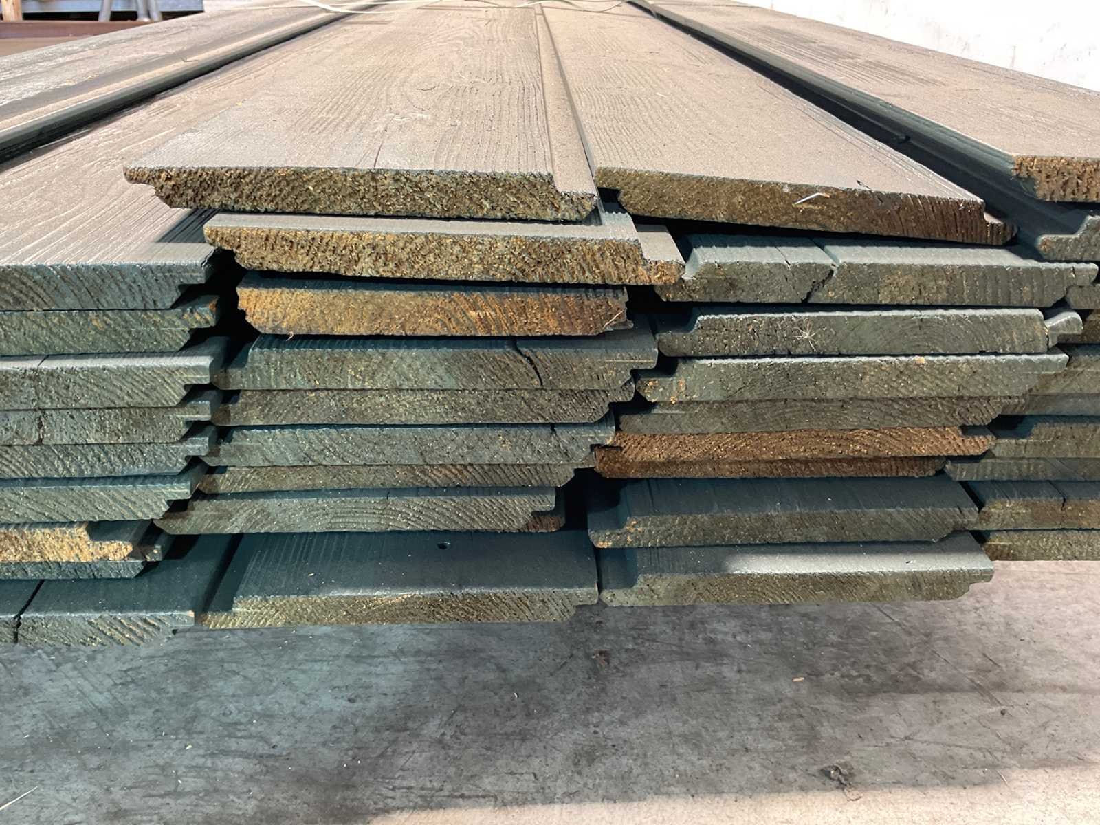 Naaldhout Thermo rabat halfhouts – geborsteld, RAL 6012 – totaal 63 stuks 48 stuks: 540 x 18,5 x 1,9 cm. 15 stuks: 360 x 18,5 x 1,9 cm. Kleur: RAL 6012 (groen). Afwerking: geborsteld. Profiel: halfhouts rabat Houtsoort: thermisch gemodificeerd naaldhout Duurzaam en vormvast gevel- of wandhout met een luxe geborstelde uitstraling. Geschikt voor gevelbekleding, schuttingen of buitenprojecten. Model: rabat halfhout Kleur: Groen Lengte: 360-540cm Breedte: 18.5cm Hoogte: 1.9cm Materiaal: Naaldhout Thermo